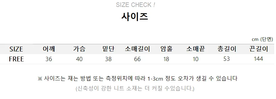 | Size | 肩幅 | 身幅 | 袖丈 | 着丈 | アームホール | 裾幅 |