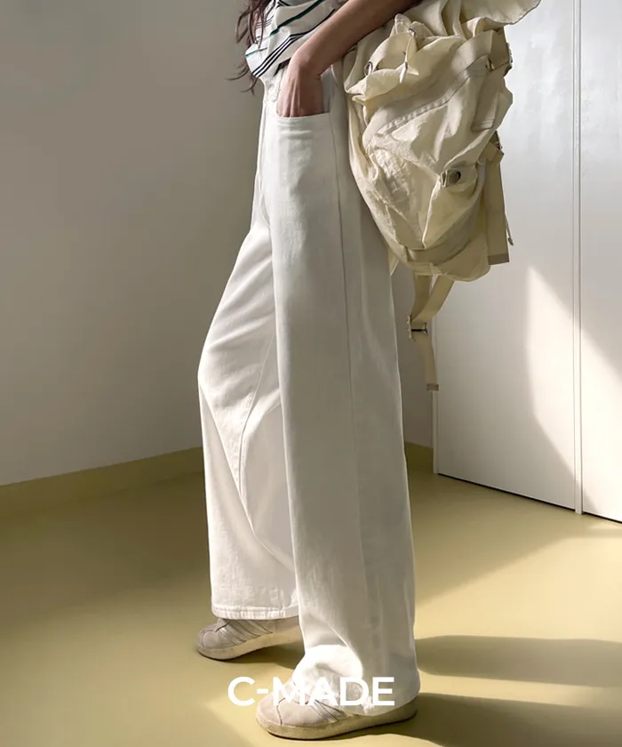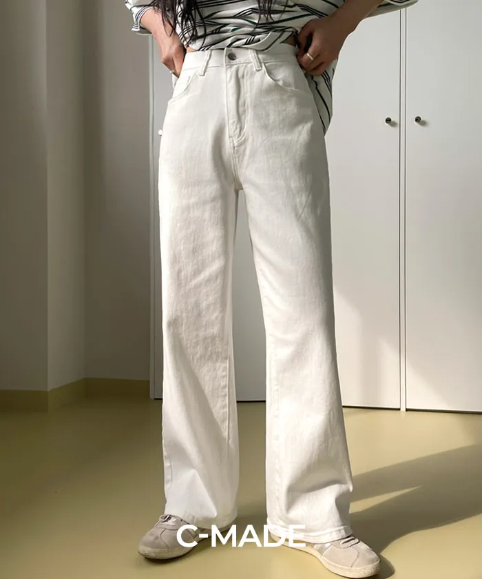 ノンフェードノンウォッシュデニムコットンバックルポケットロングストレートリベットワイドループバックポケットヒドゥンバンディングディープブルーデニムパンツ