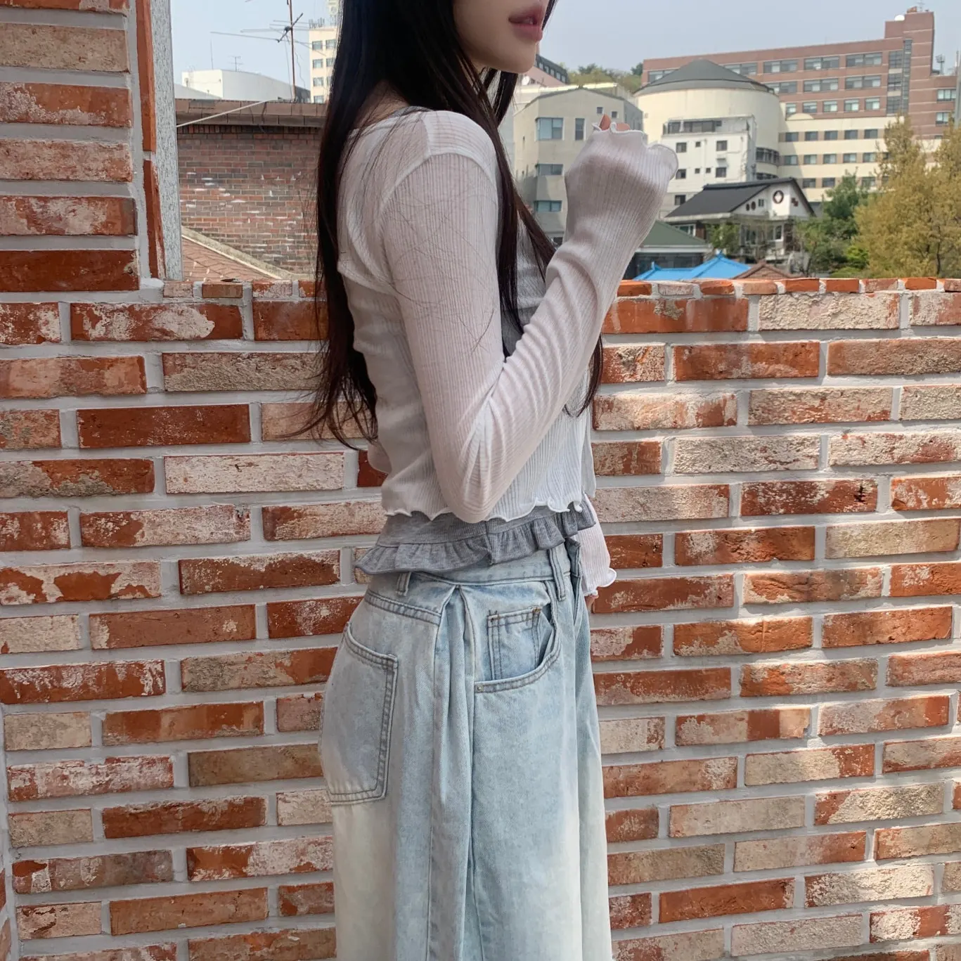 着用 : アイボリー / FREE,ブラック / FREE,オリーブ / FREE,スカイブルー / FREE,ライトカーキ / FREE