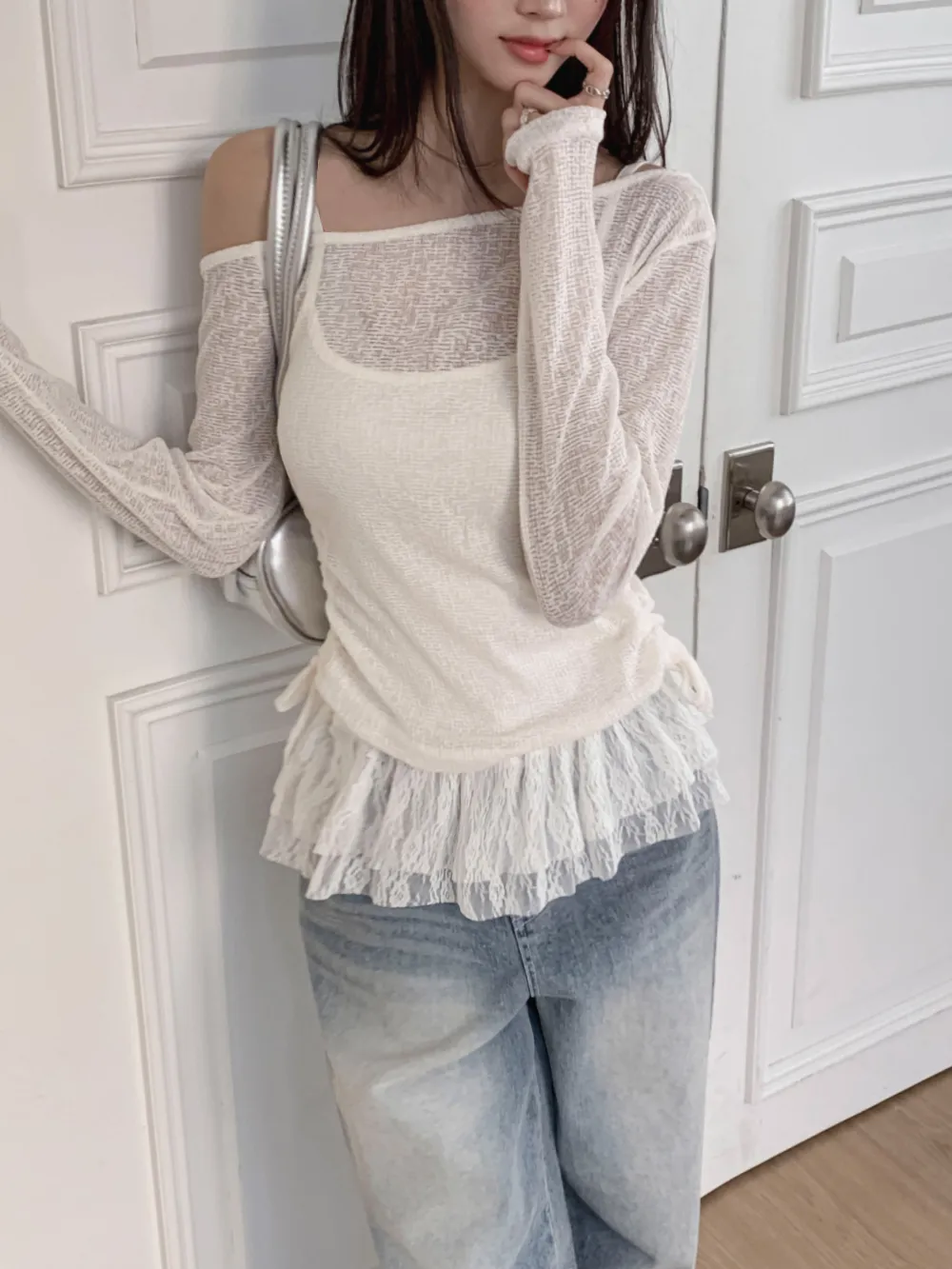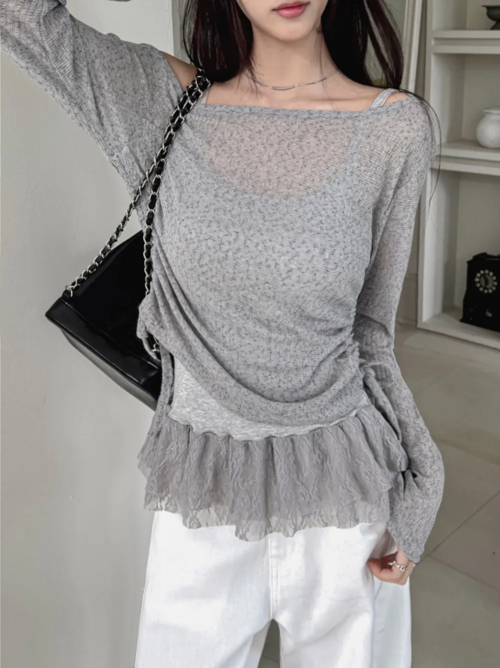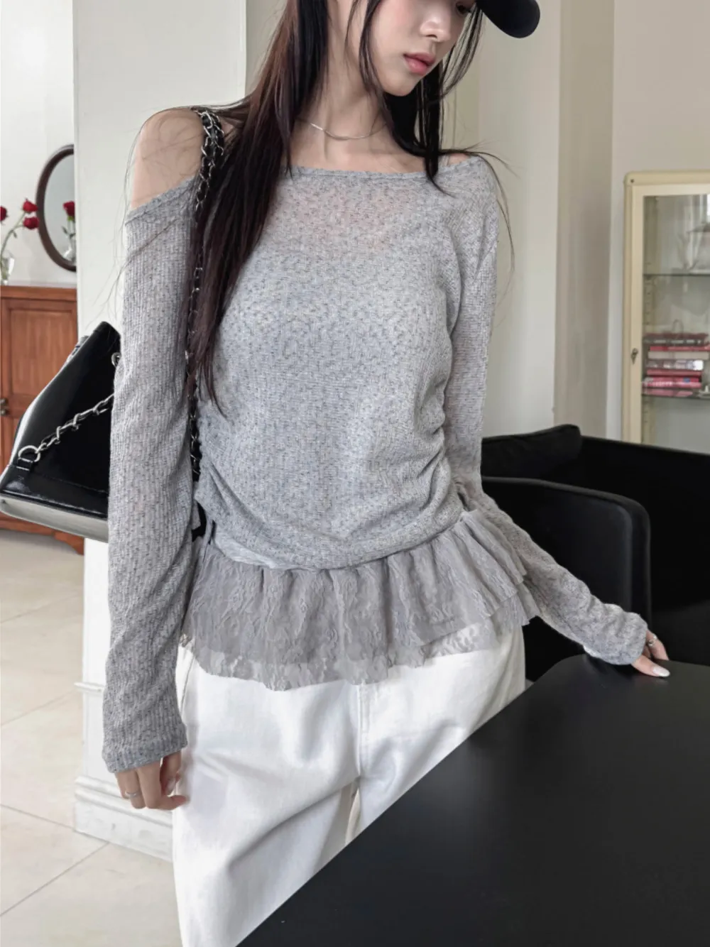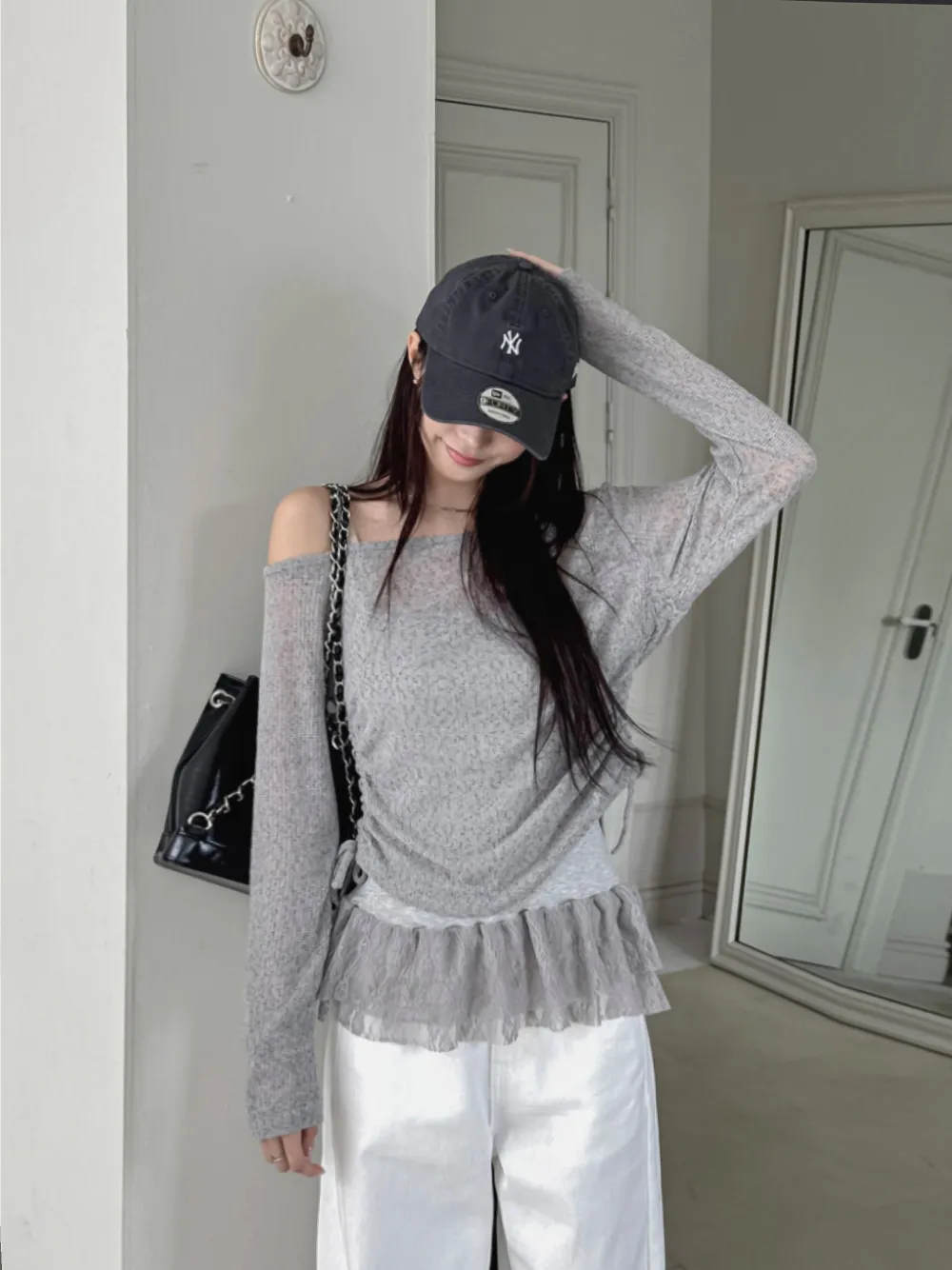 着用 : アイボリー / FREE,グレー / FREE