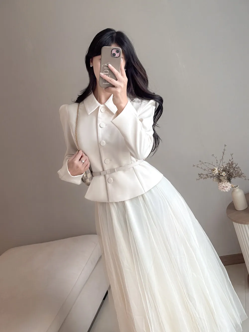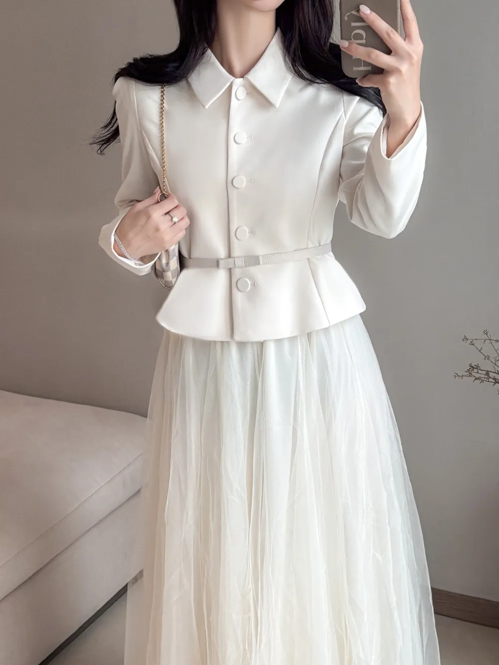 着用 : ブラック(基本ベルト) / S,クリーム(リボンベルト) / S