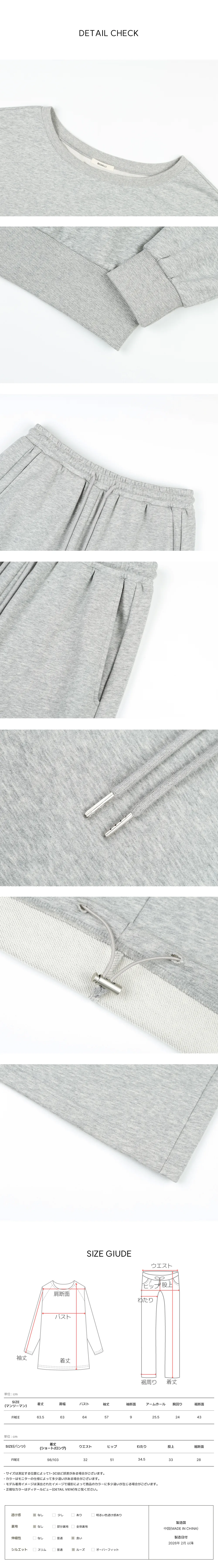 | FREE | 32(ゴム) | 51 | 28 | 34.5 | 33 | 98/103(ショート/ロング) |