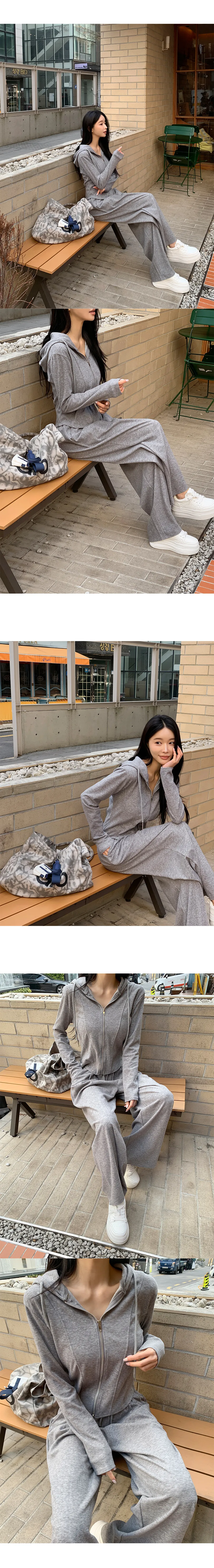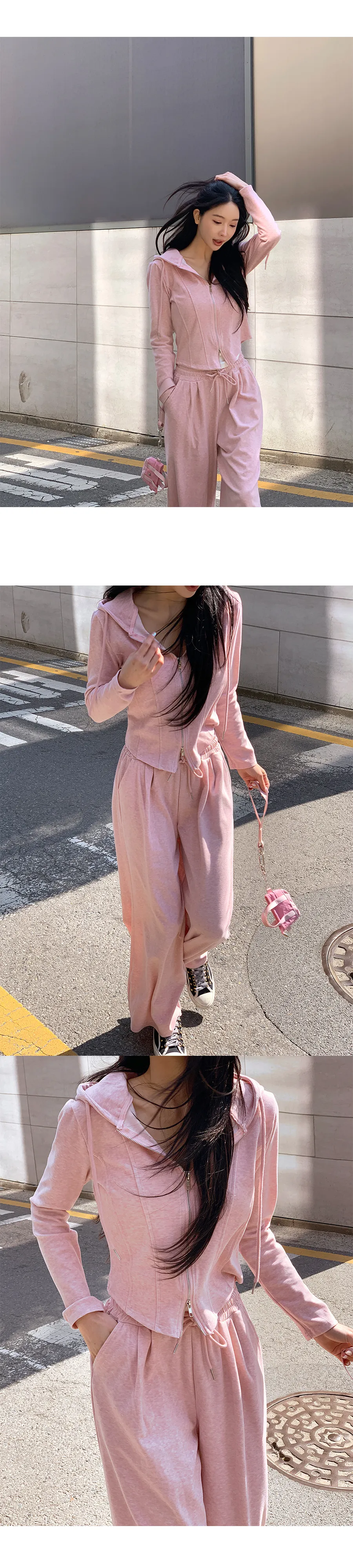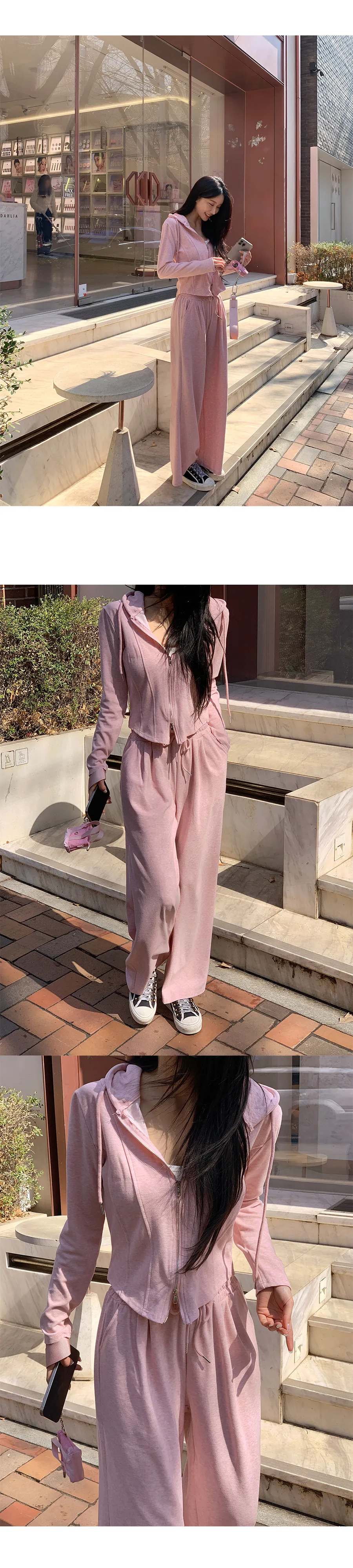 グリッターワッフルフード長袖ウエストゴムドローストリングジップアップセミクロップドドロップショルダーワイドドローコードセットアップジップパーカーパンツ2WAY