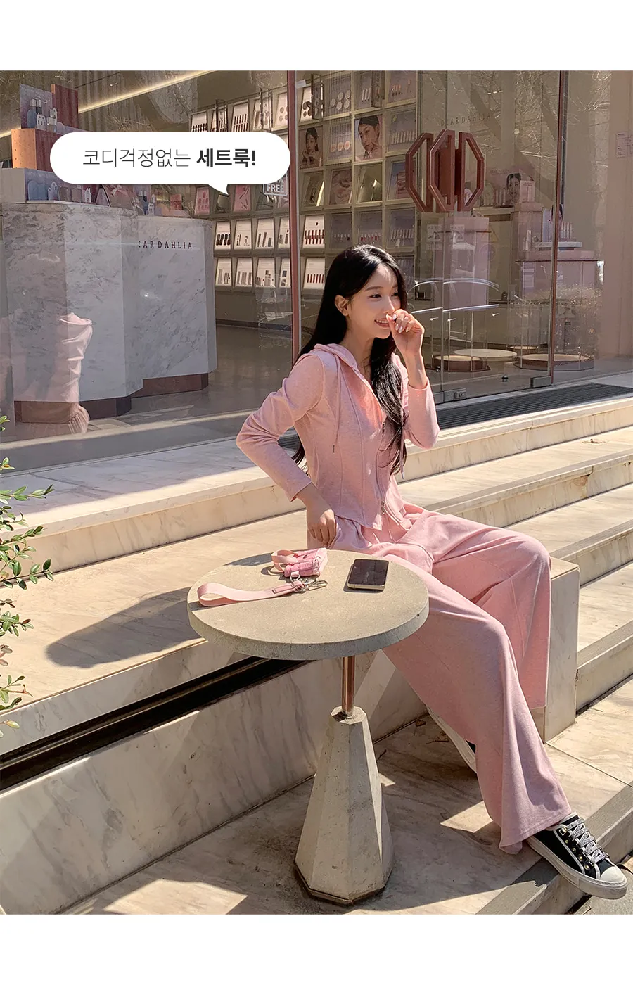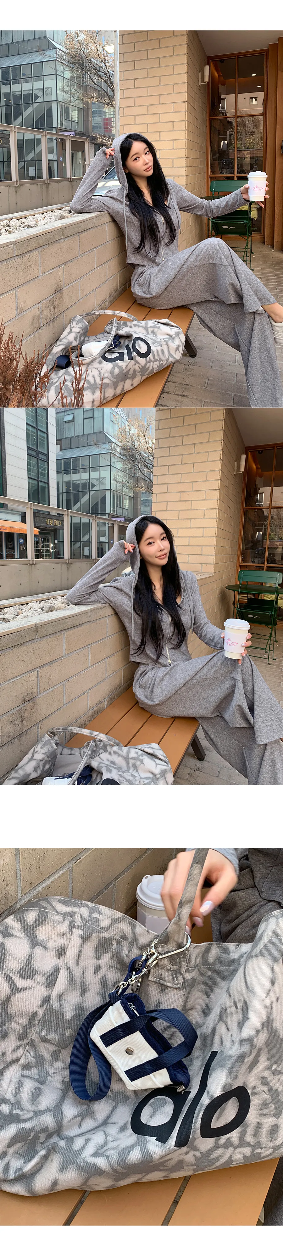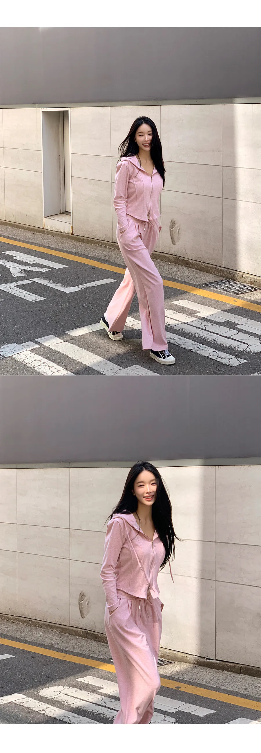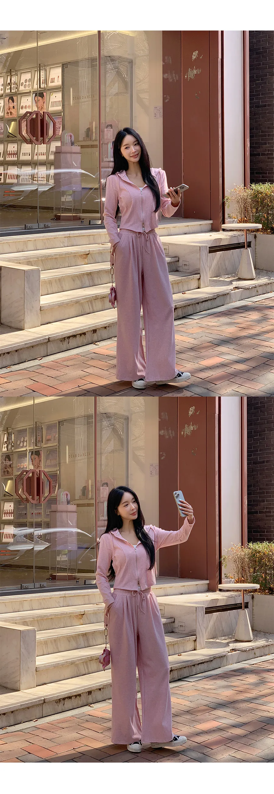 グリッターワッフルフード長袖ウエストゴムドローストリングジップアップセミクロップドドロップショルダーワイドドローコードセットアップジップパーカーパンツ2WAY