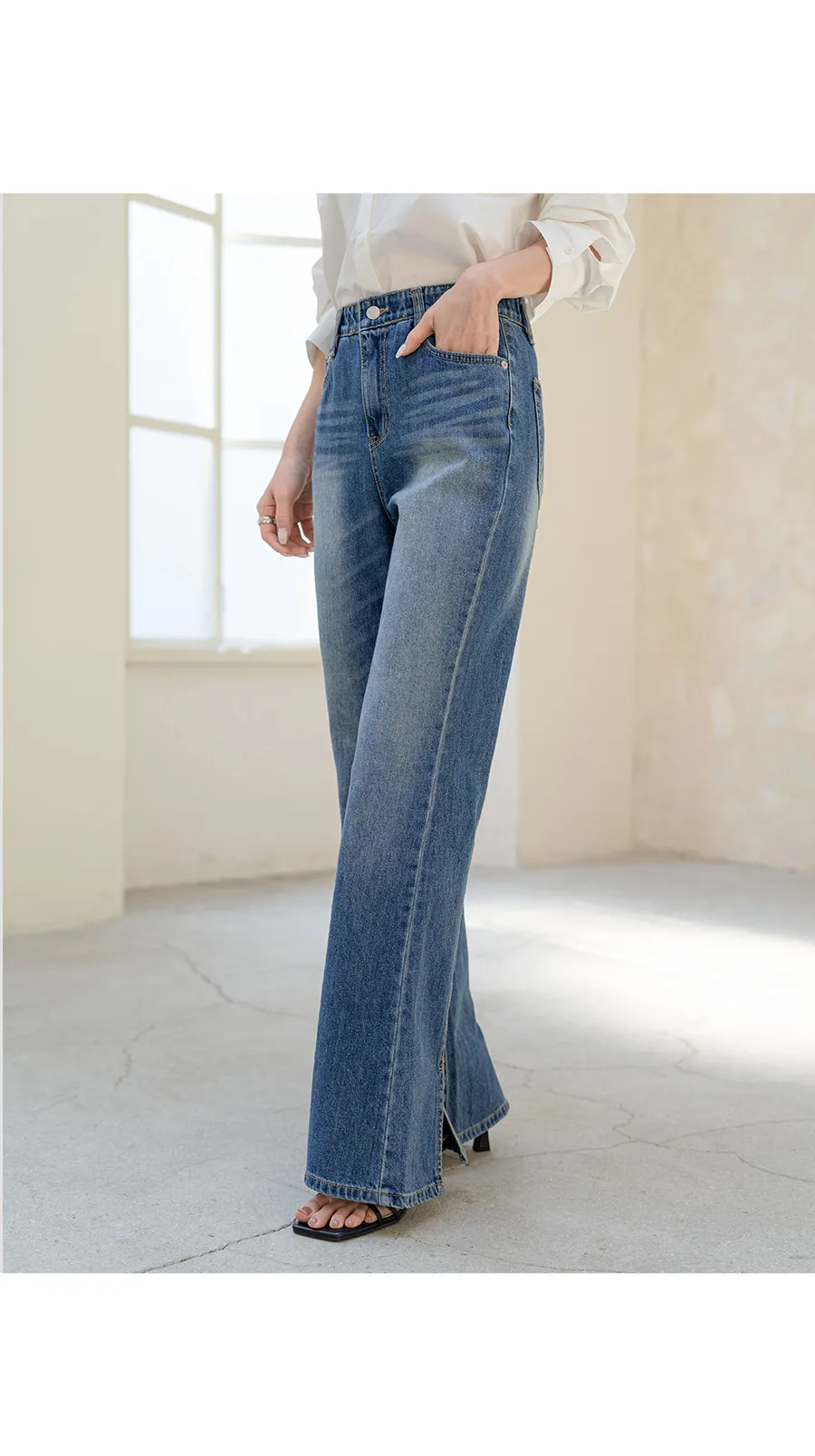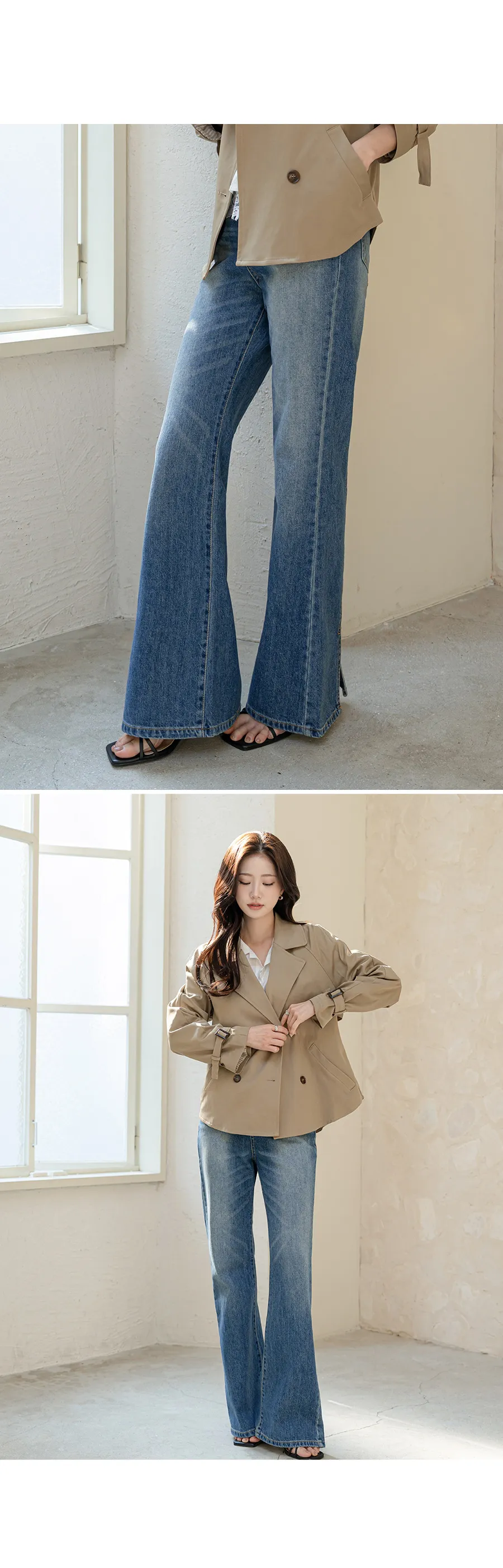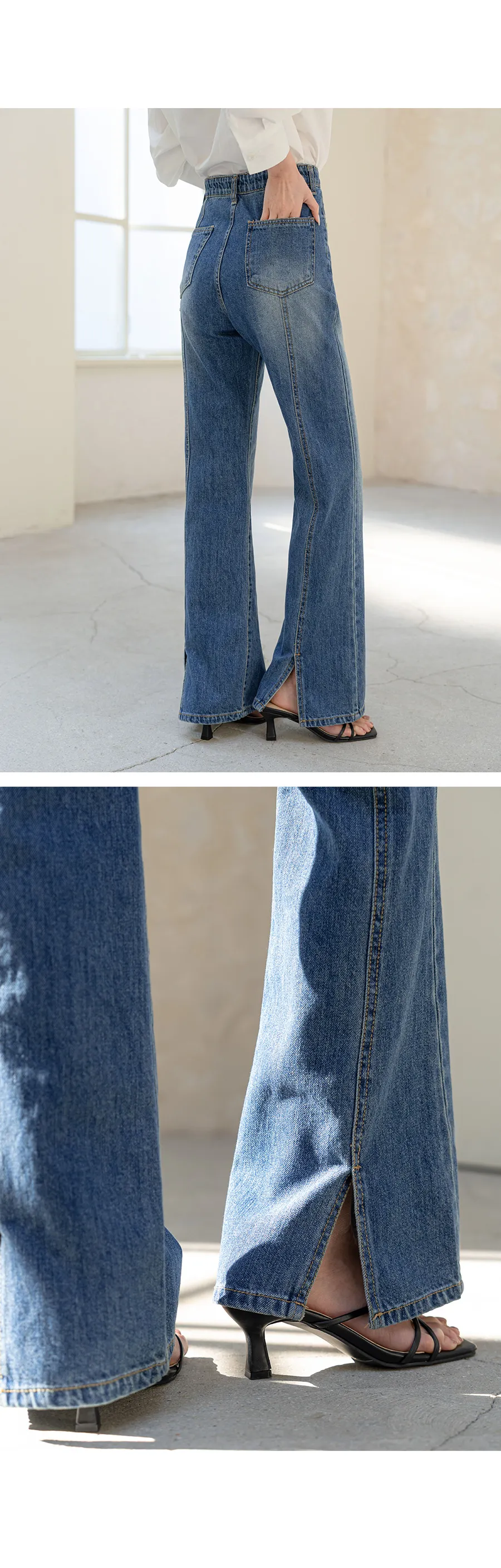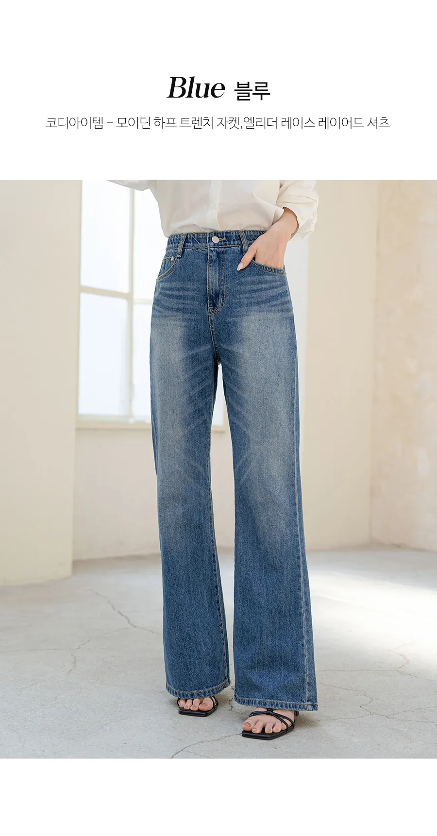 ストレッチデニムジップアップバックルウォッシングポケット骨盤パッドスリムロングフラップポケットリベットループバックポケットブーツカットライトブルーデニムパンツ