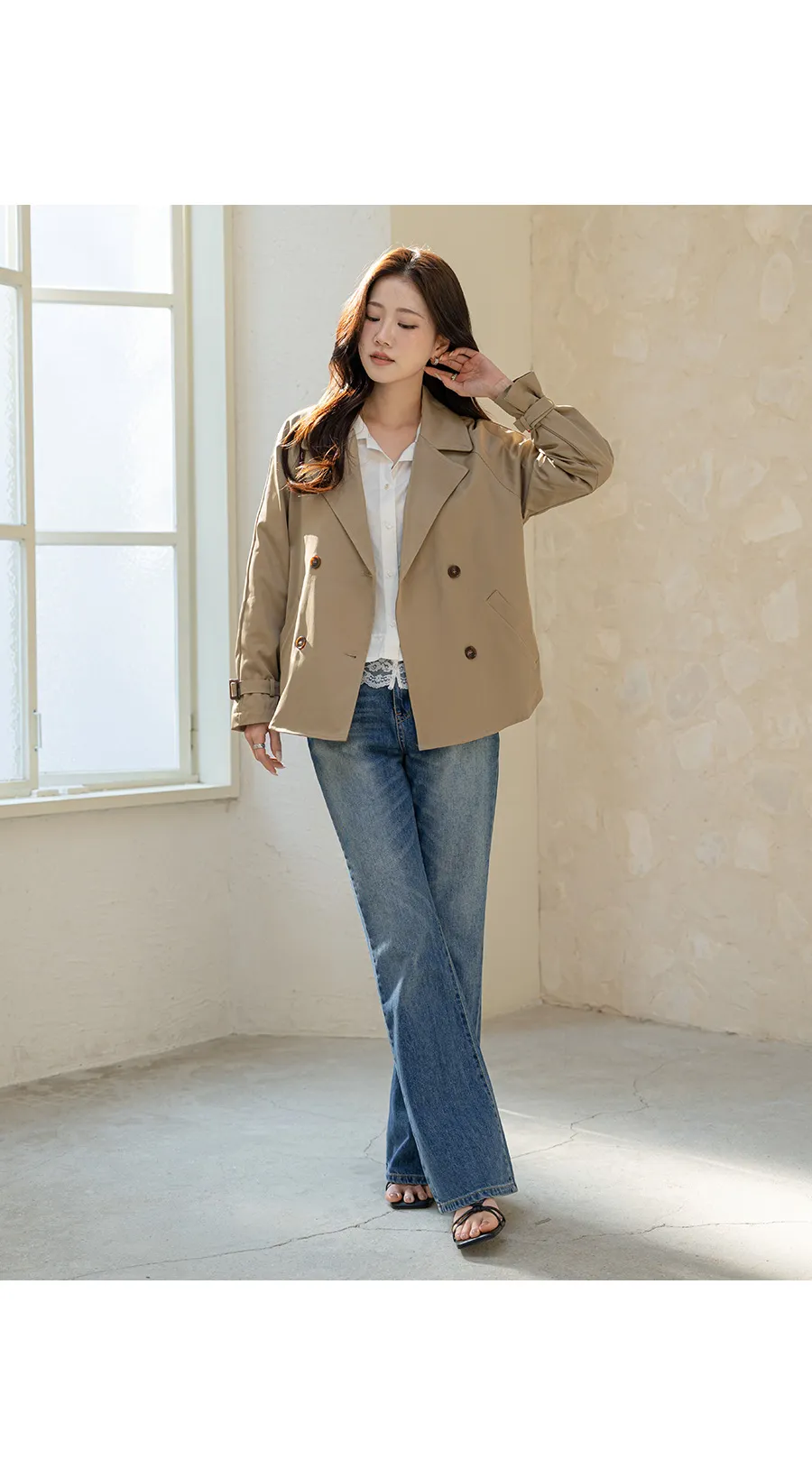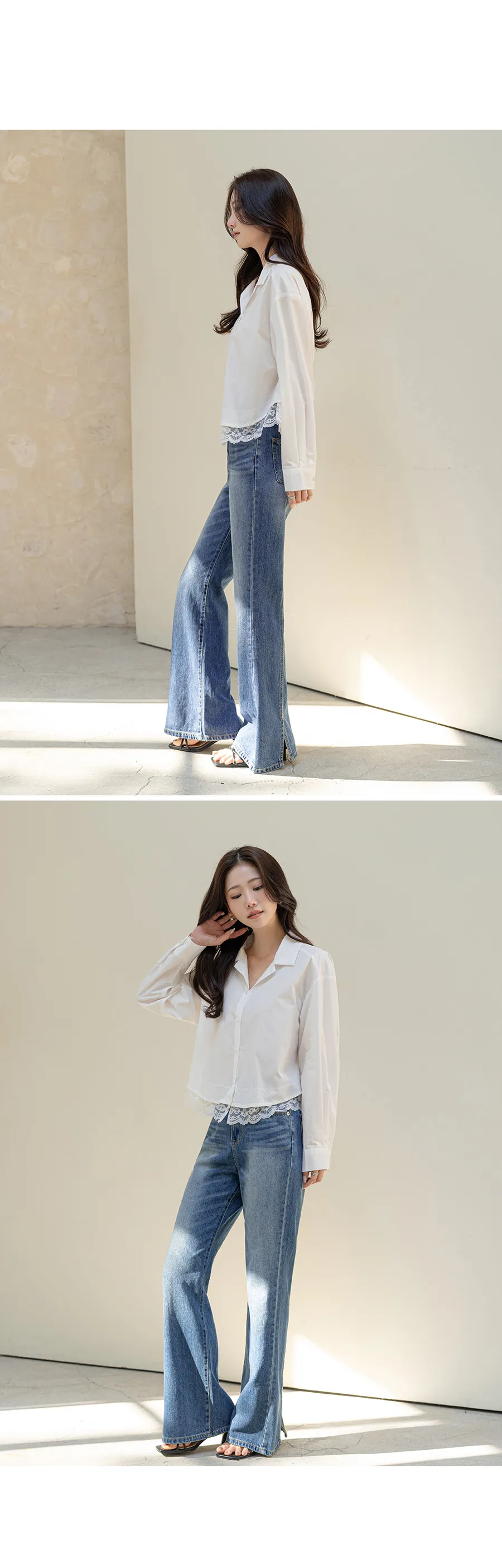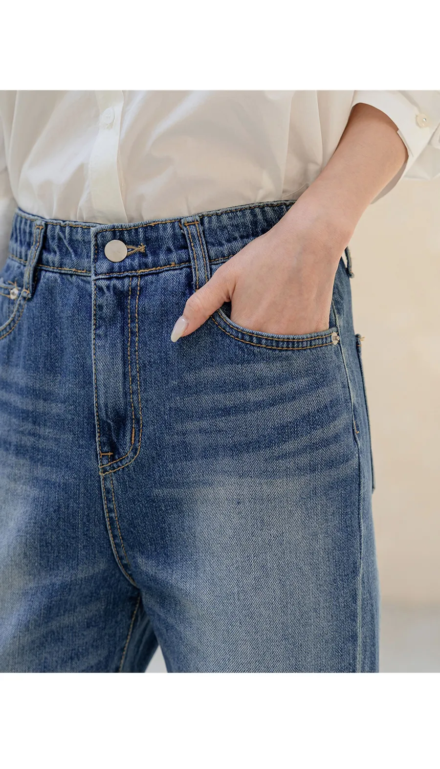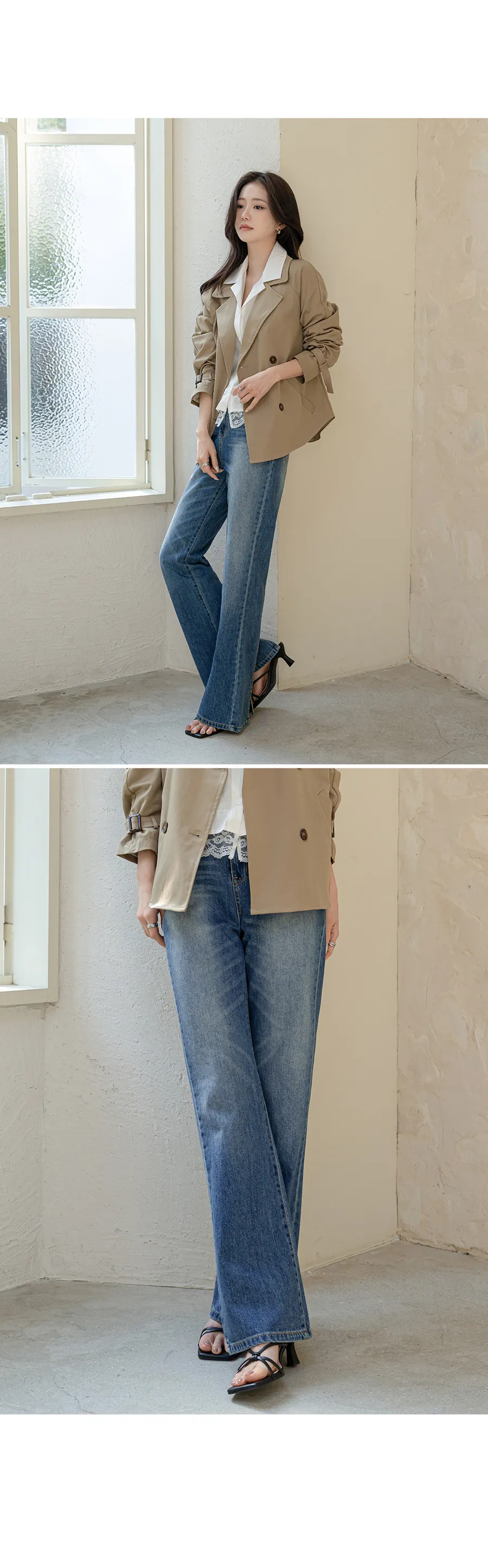 ストレッチデニムジップアップバックルウォッシングポケット骨盤パッドスリムロングフラップポケットリベットループバックポケットブーツカットライトブルーデニムパンツ