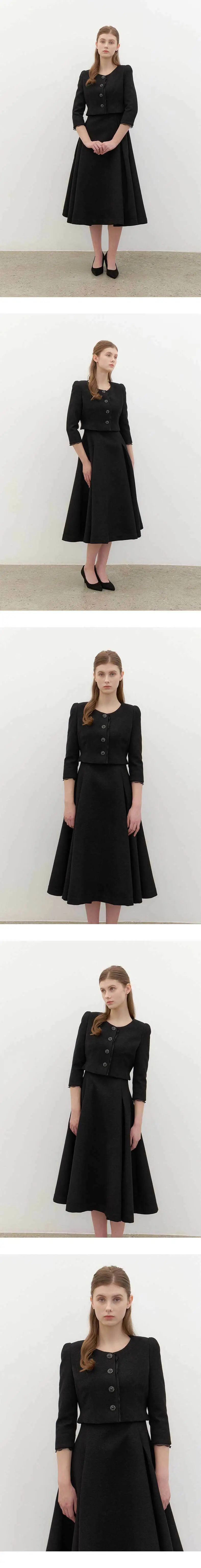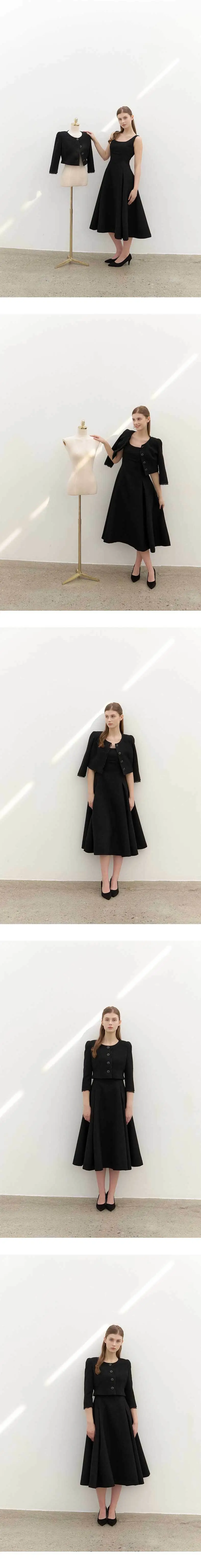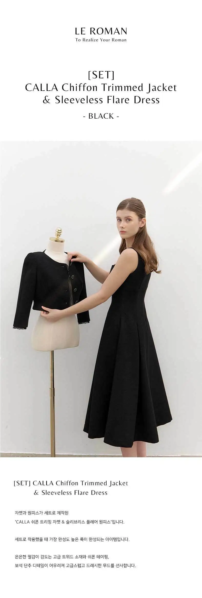 [SET] CALLA Chiffon Trimmed Jacket & Sleeveless Flare Dress