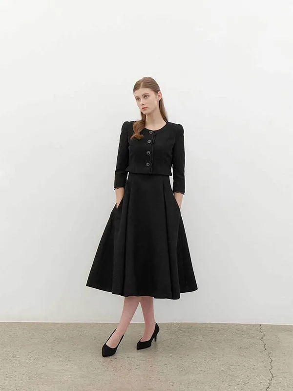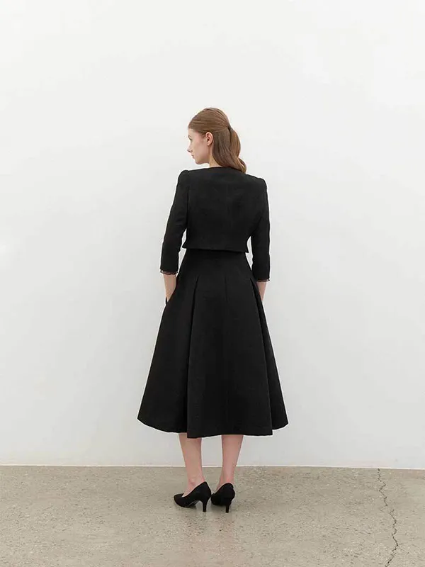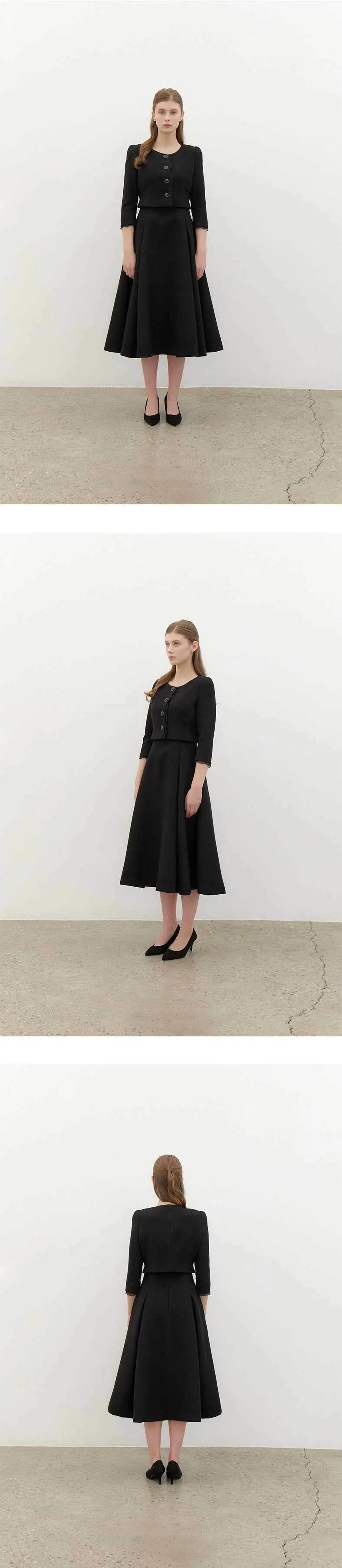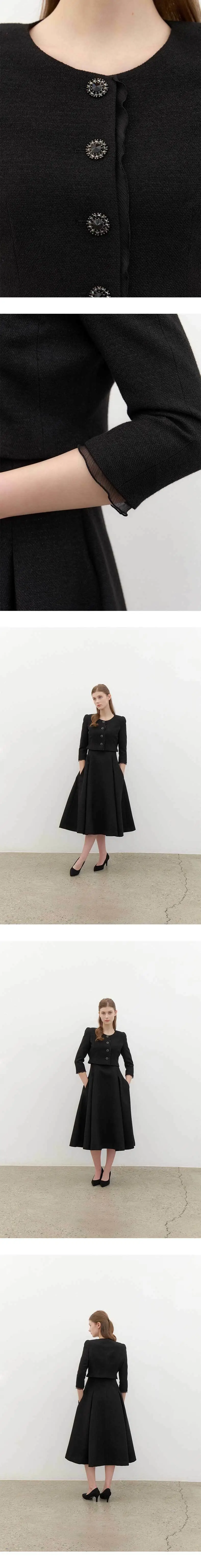 [SET] CALLA Chiffon Trimmed Jacket & Sleeveless Flare Dress