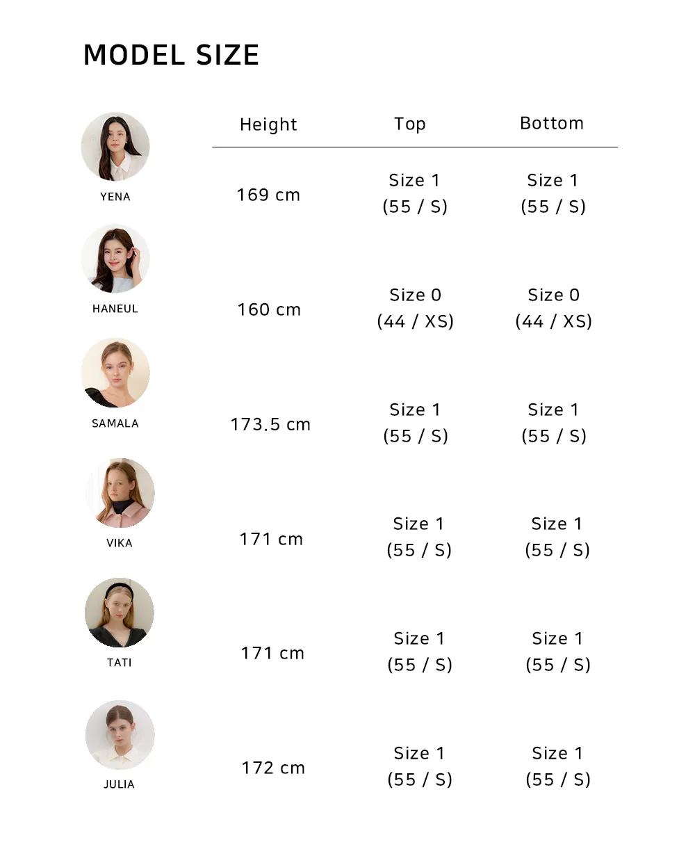 | Size | 肩幅 | 身幅 | 袖丈 | 着丈 | ウエスト | 裾幅 |