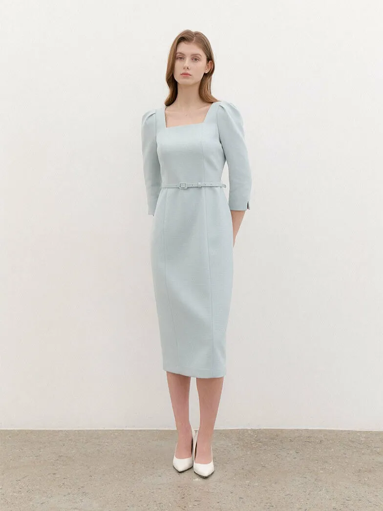 Tweed Square-neck Slim Dress