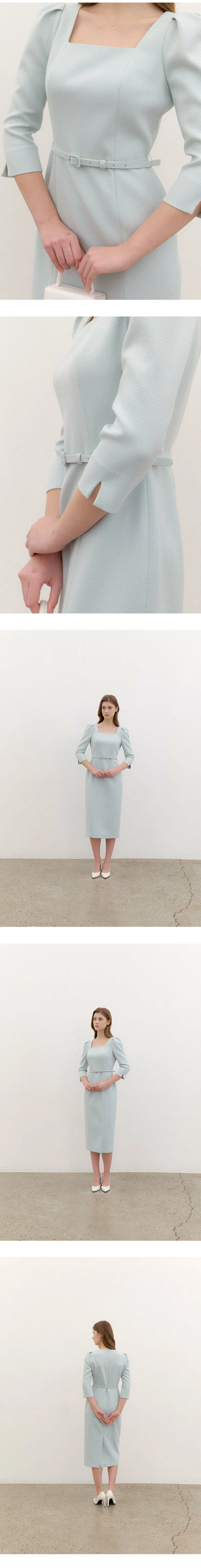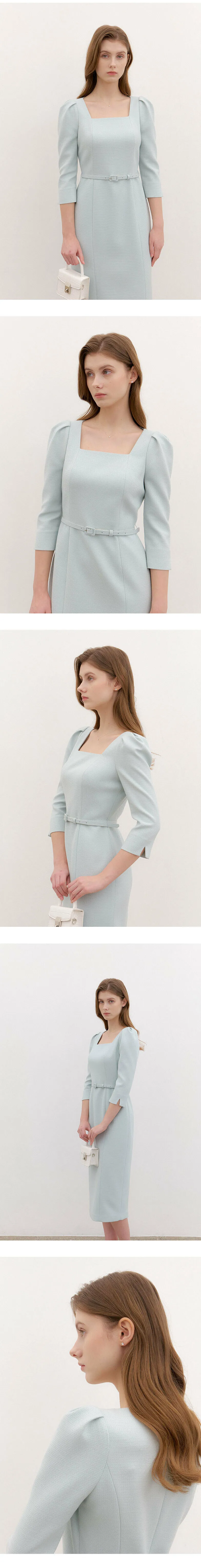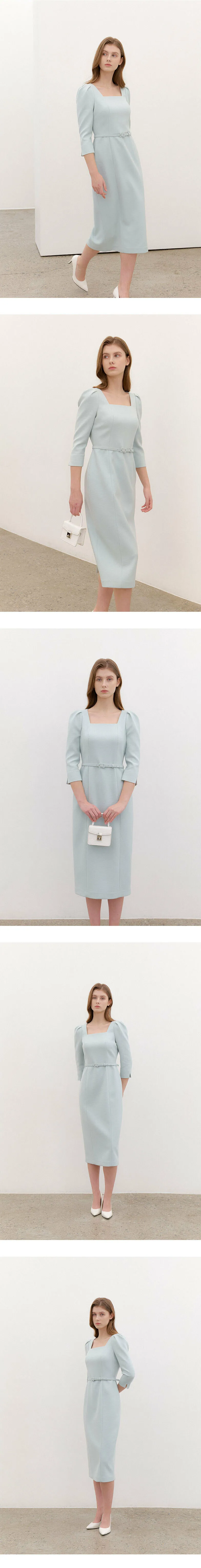 ブランドのシグネチャーであるスクエアネックシルエットのワンピース。
