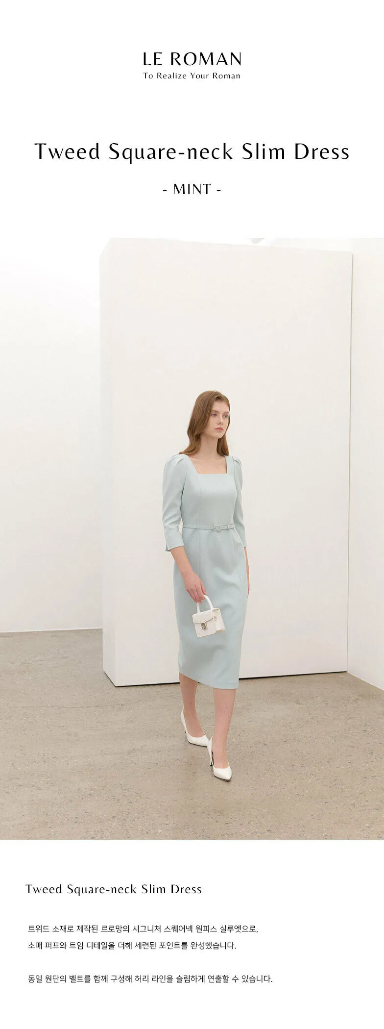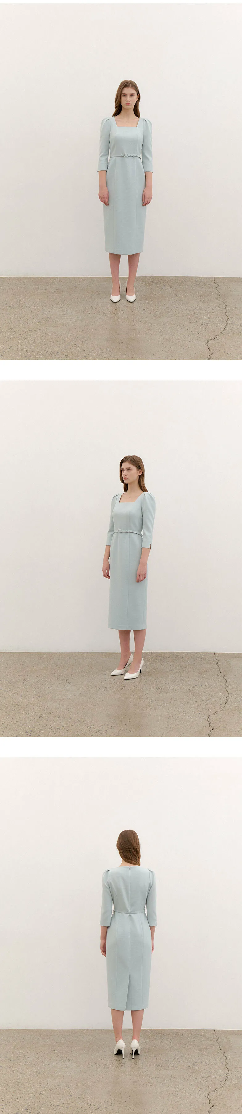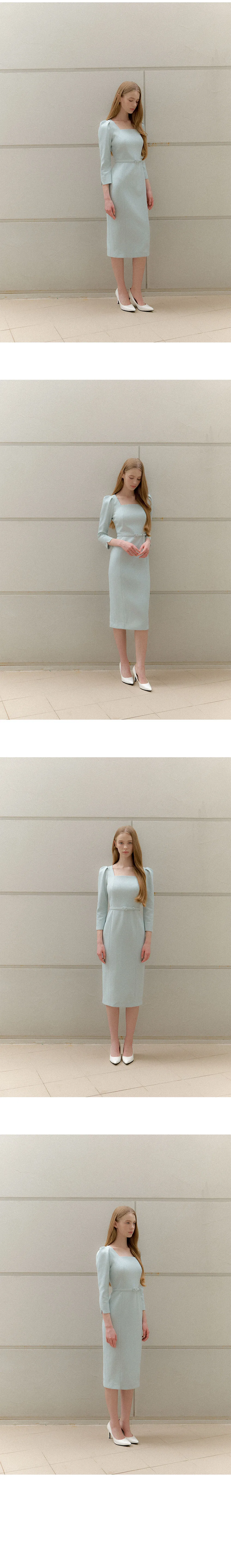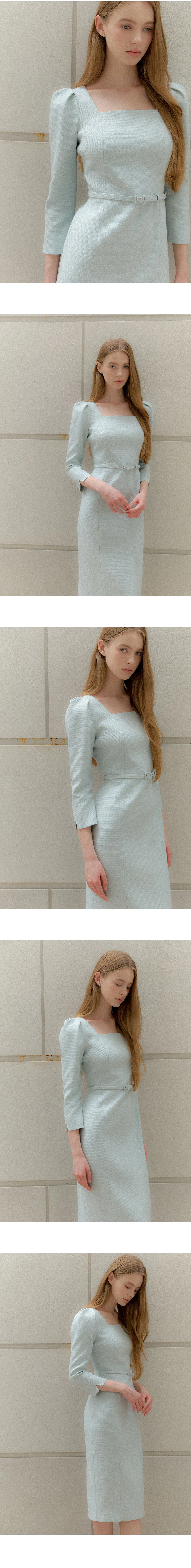 ブランドのシグネチャーであるスクエアネックシルエットのワンピース。