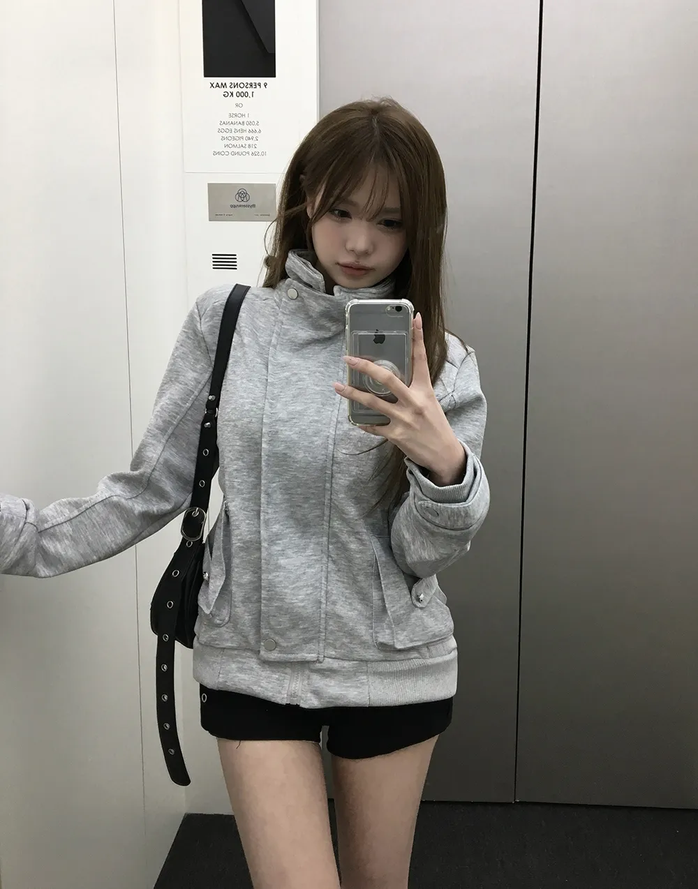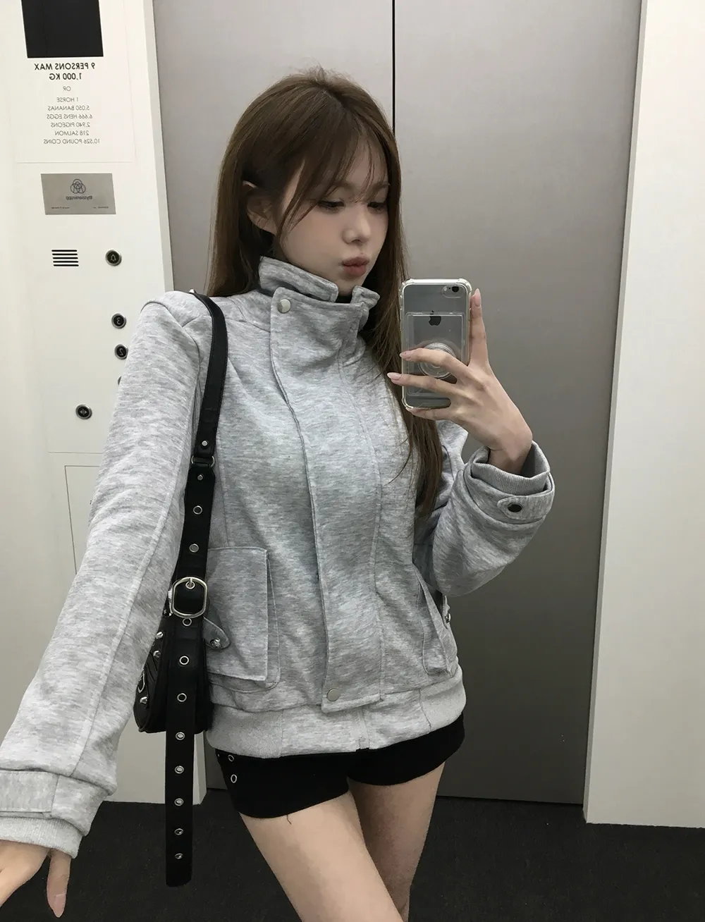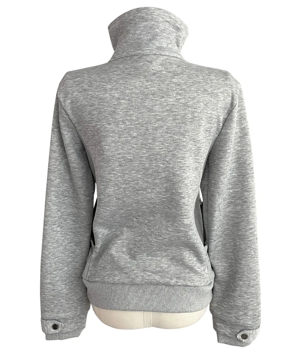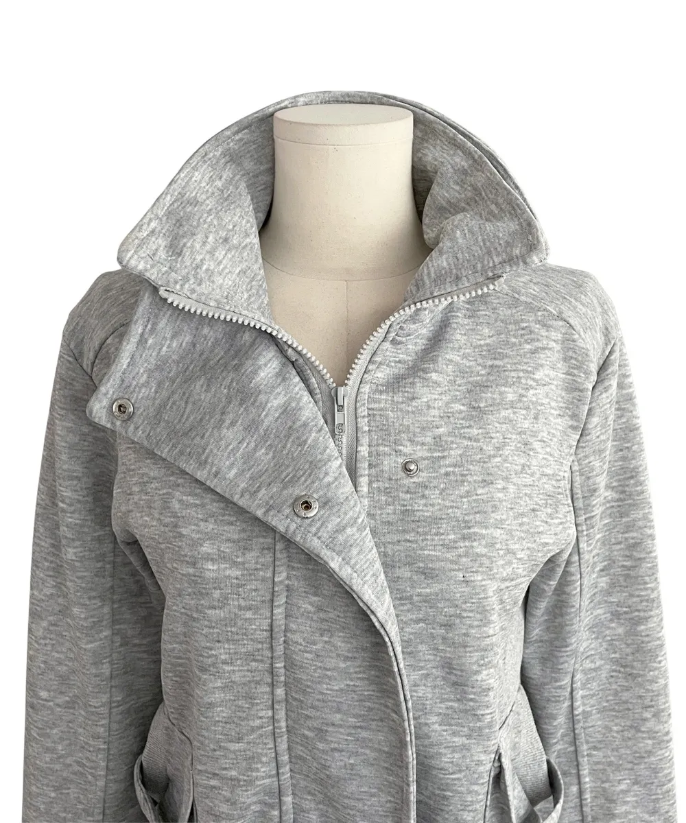 コットンジップアップハイネックゴムポケットオーバーサイズ長袖フラップポケットボタンスリーブスタッズスナップボタンハーフドロップショルダー無地ジャンパー
