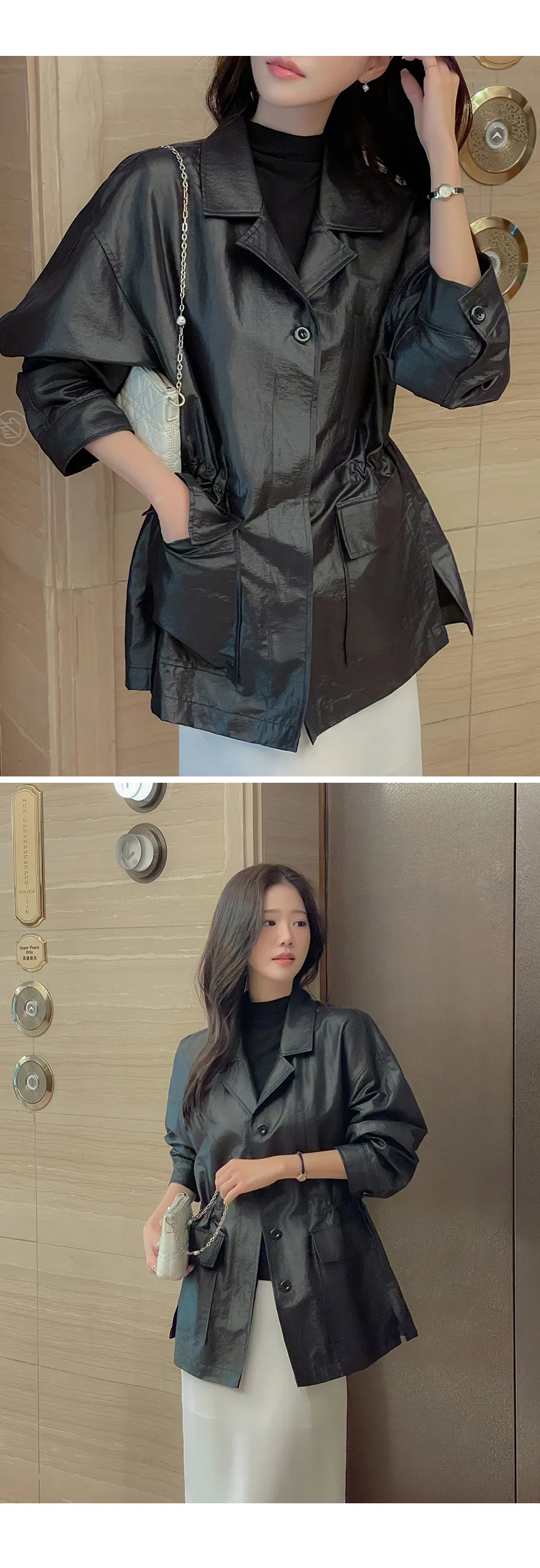 | Size | 肩幅 | 身幅 | 袖丈 | 着丈 | 袖幅 | アームホール | ウエスト | 裾幅 | スリット長さ |