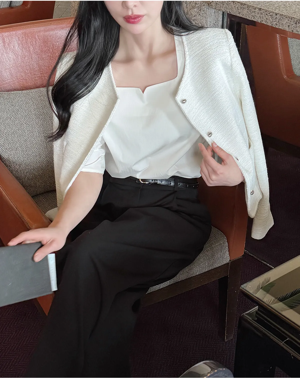 着用 : クリーム / S,ブラック / S