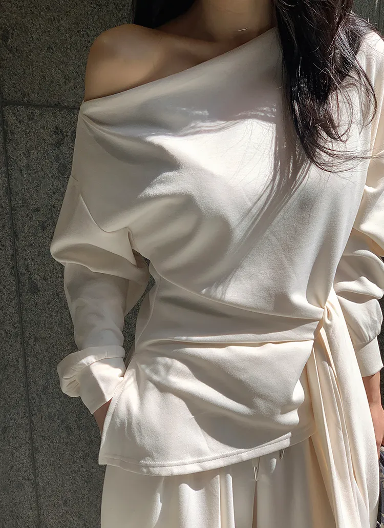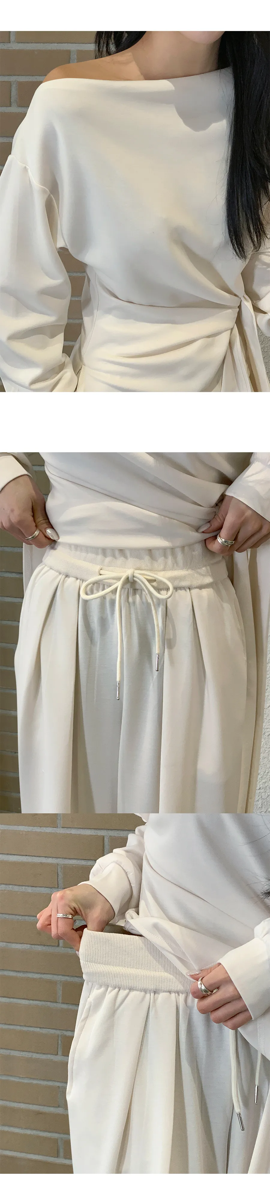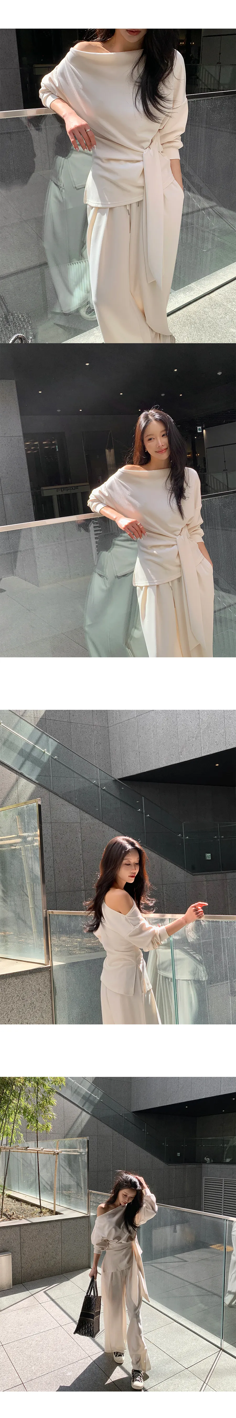 ストラップVネックリンクルスリットウエストゴムラグランスリム長袖ギャザーフレアAラインミニくるみボタン無地ツーピース(トップス、ボトムス)ブラウスショートパンツ[選べる丈]