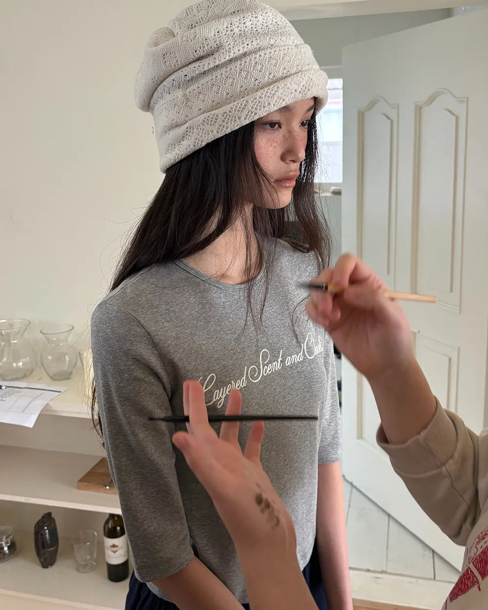 着用 : ホワイト / FREE,グレー / FREE