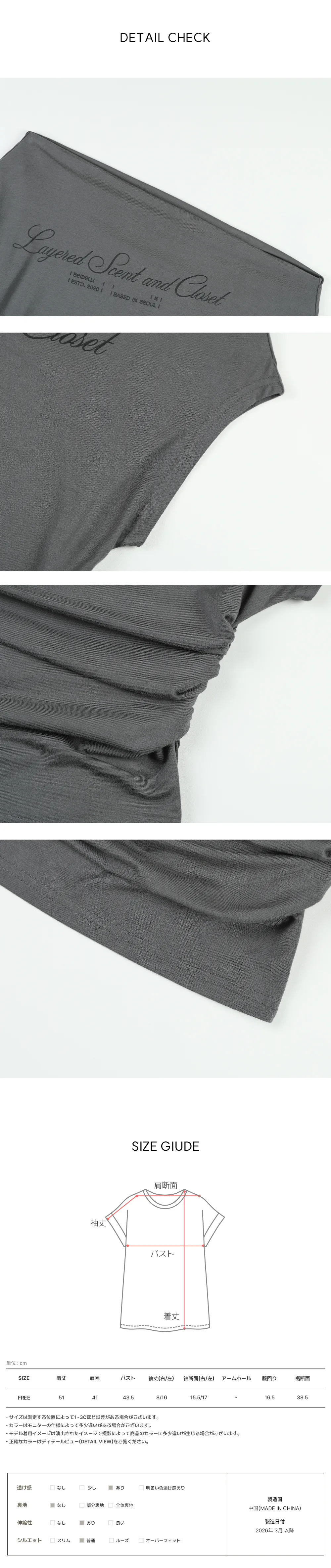 着用 : チャコール / FREE