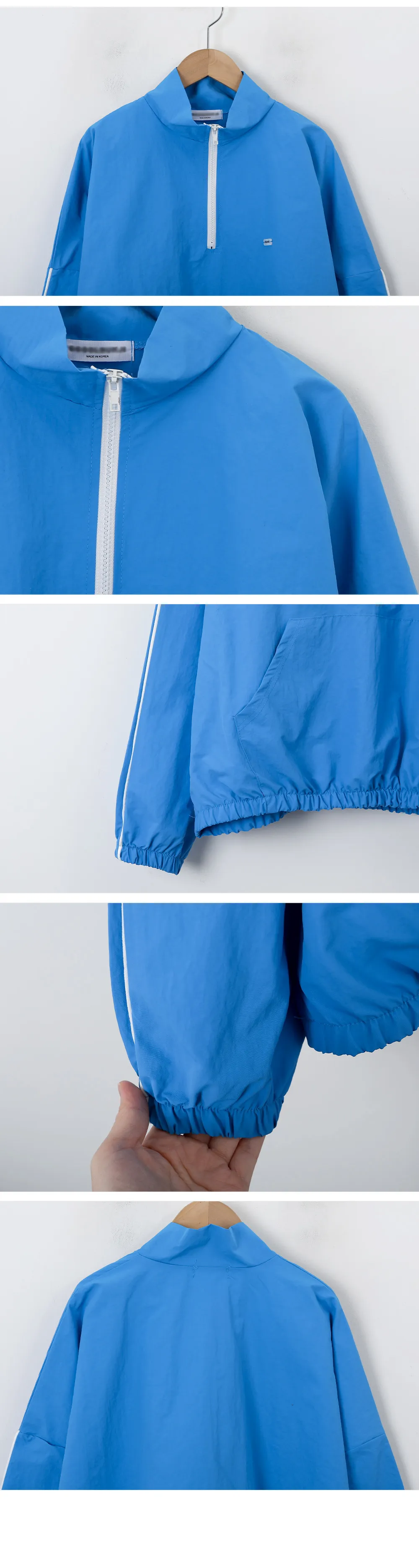 コットンジップアップハイネックゴムポケットオーバーサイズ長袖フラップポケットボタンスリーブスタッズスナップボタンハーフドロップショルダー無地ジャンパー