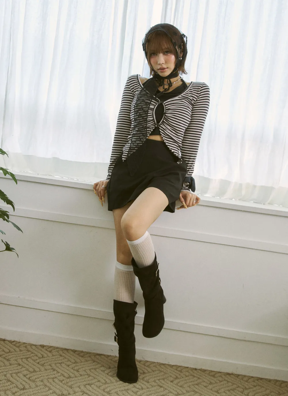 -レイヤード部分はクロップド丈のため、ハイウエストボトムとのコーデがおすすめです