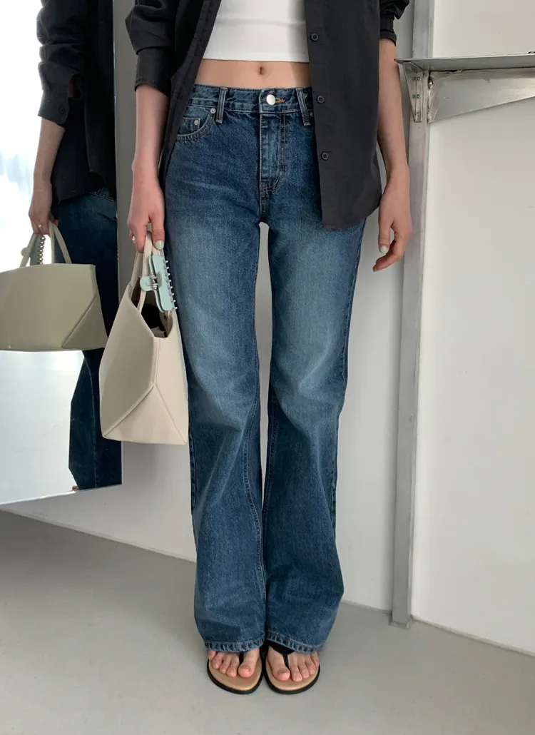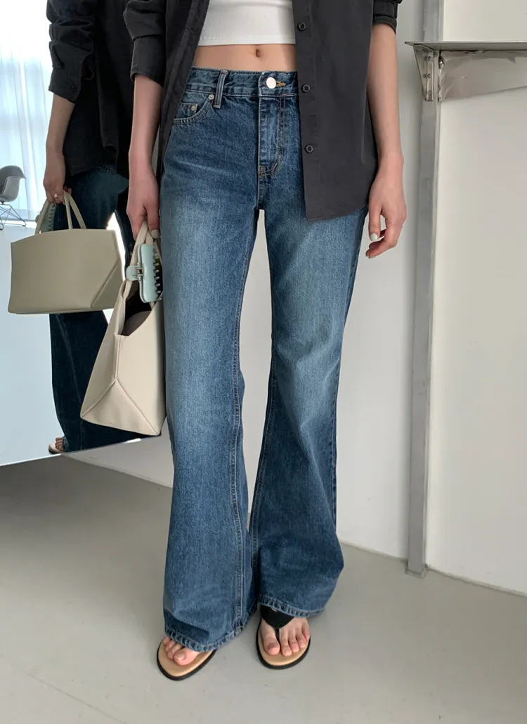 ストレッチデニムジップアップバックルウォッシングポケット骨盤パッドスリムロングフラップポケットリベットループバックポケットブーツカットライトブルーデニムパンツ