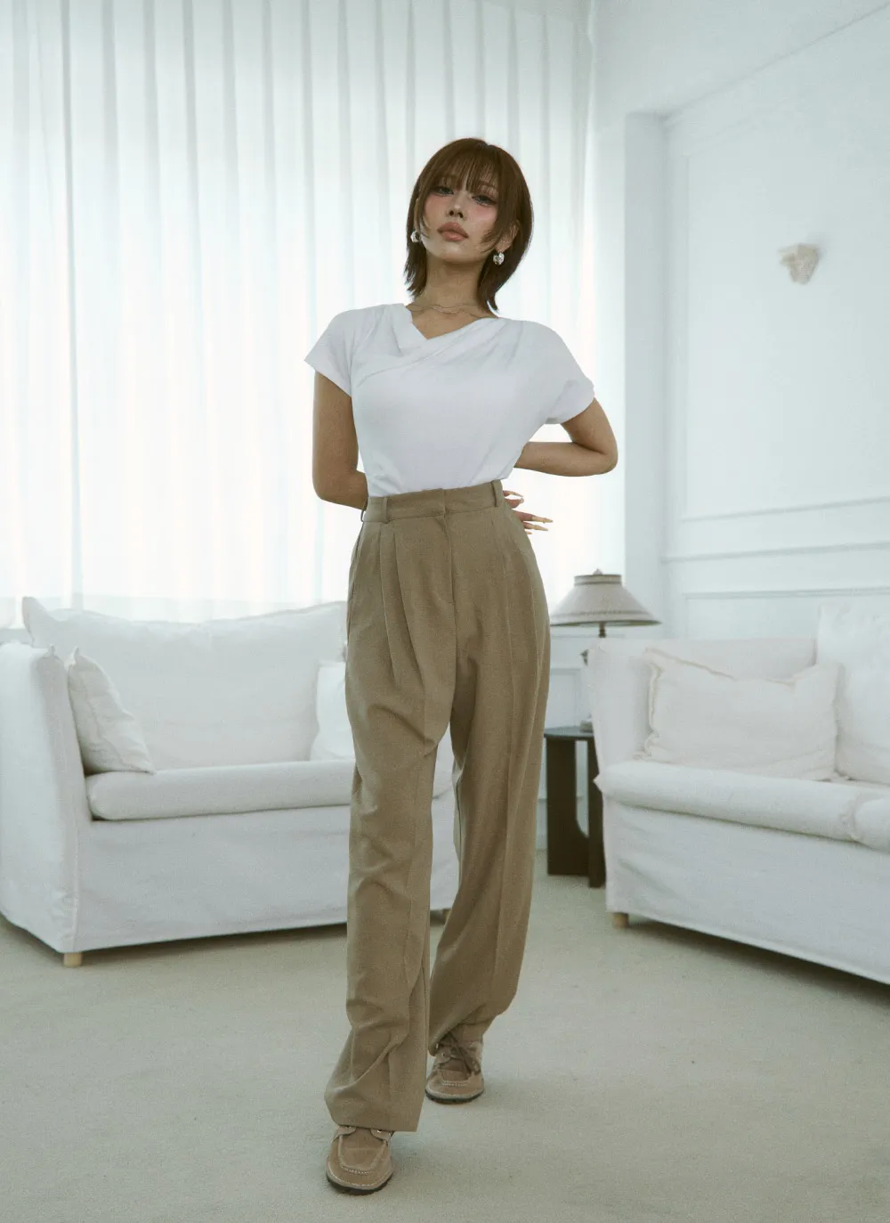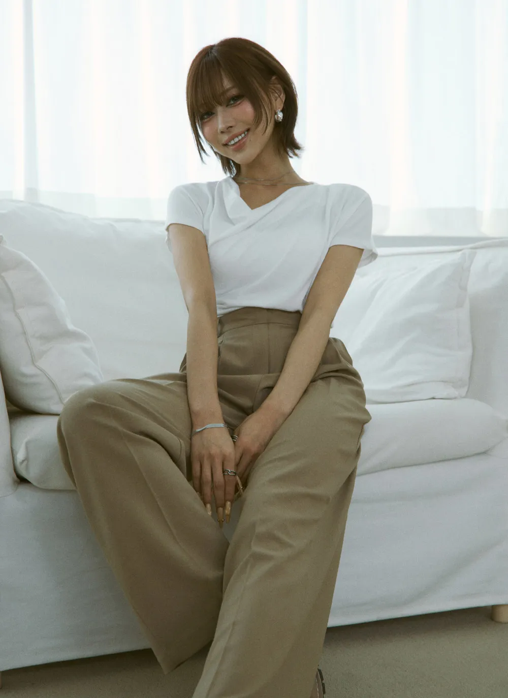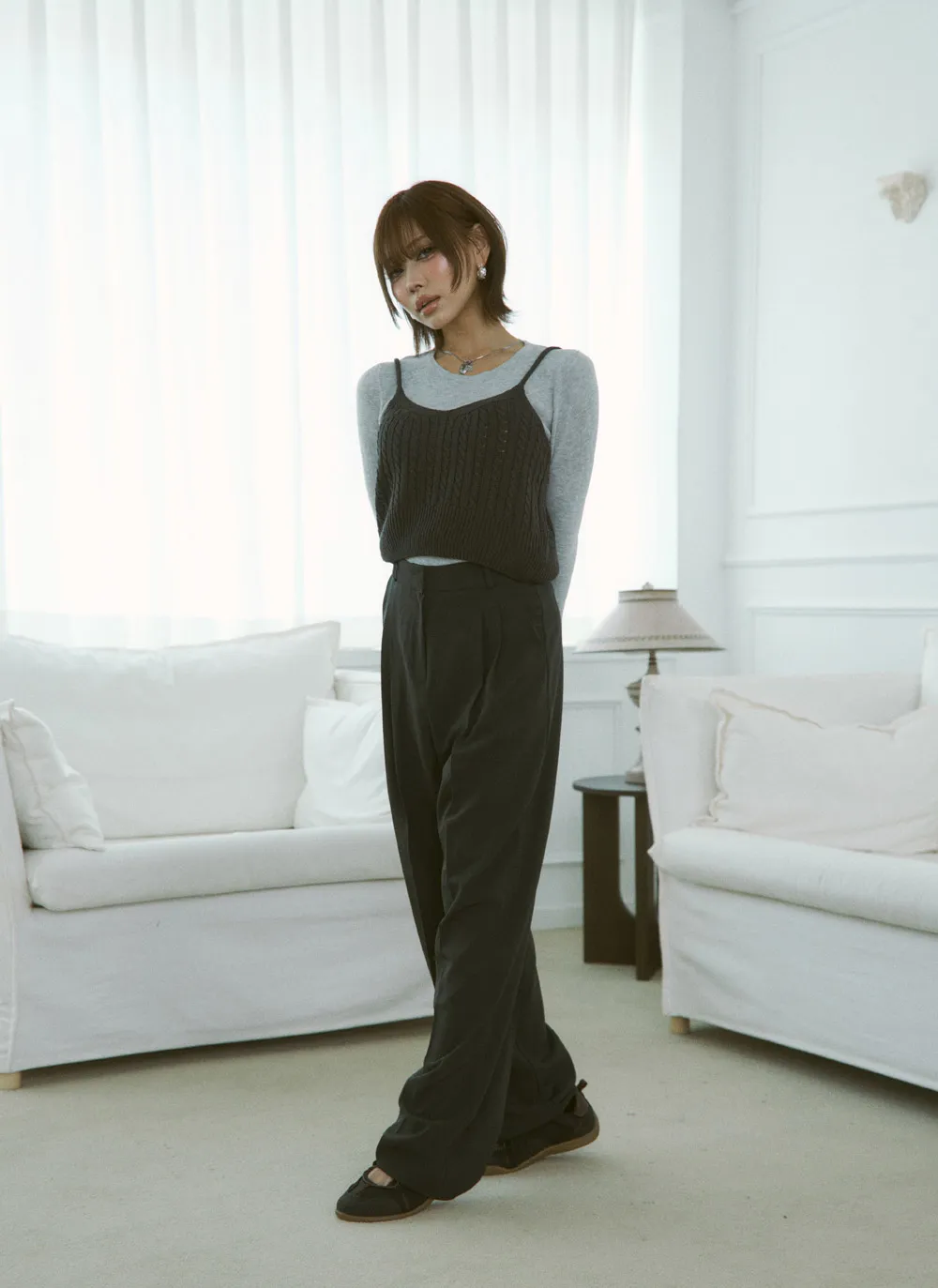 フェミニンなムードで使い勝手の良いスラックス。
