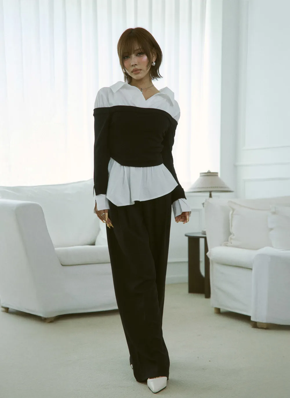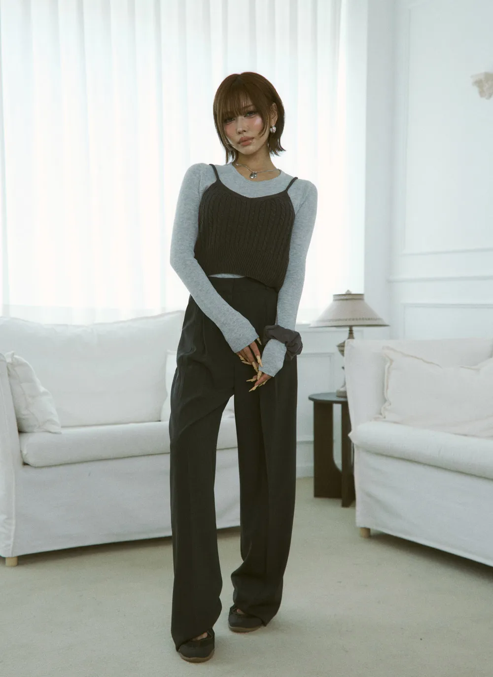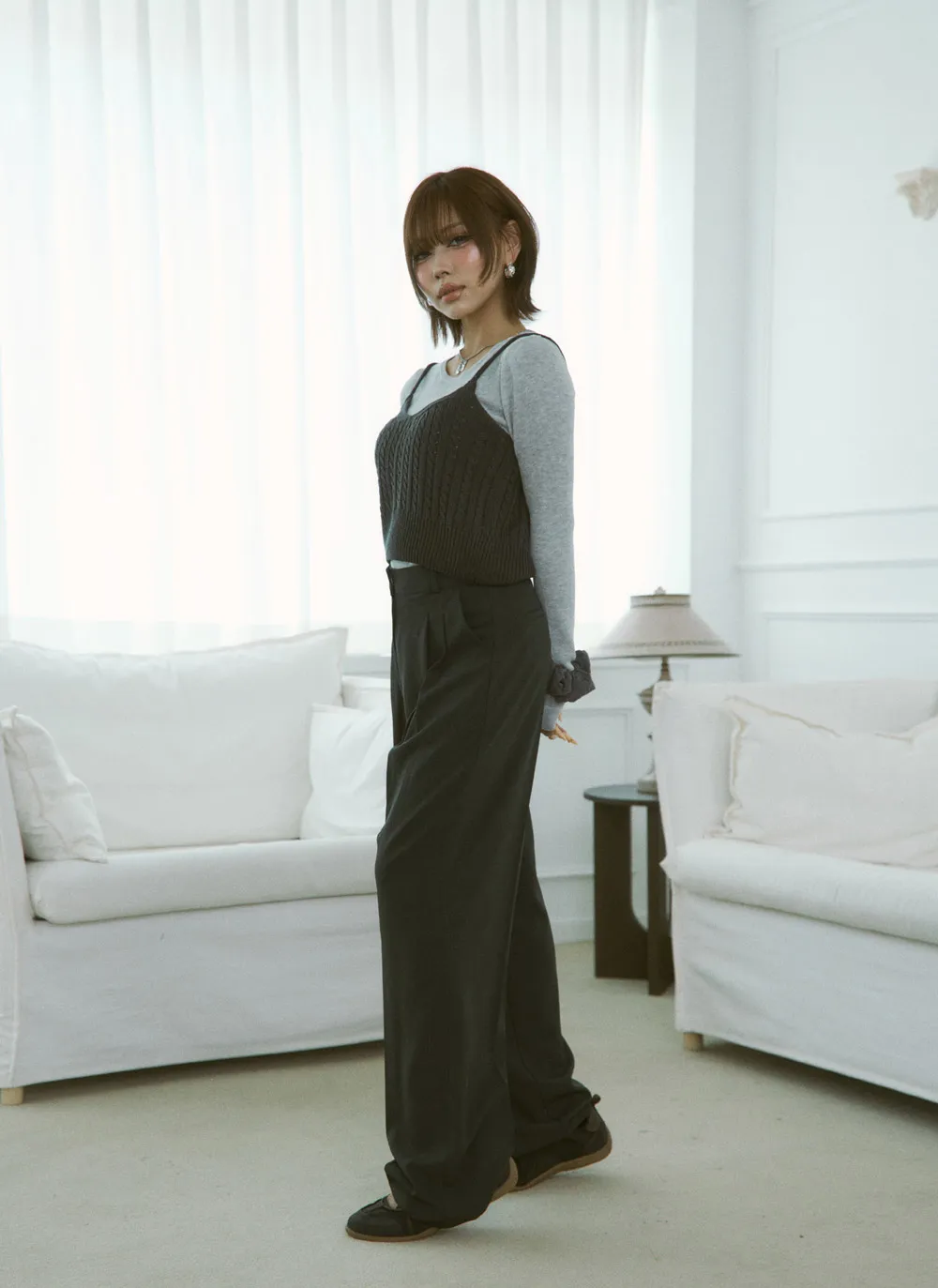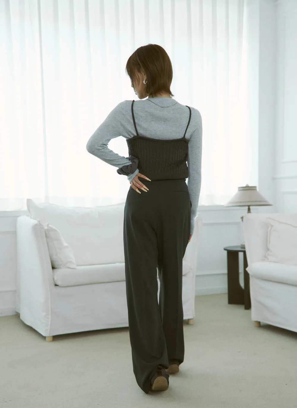 - ワイドシルエットでスタイルアップ効果