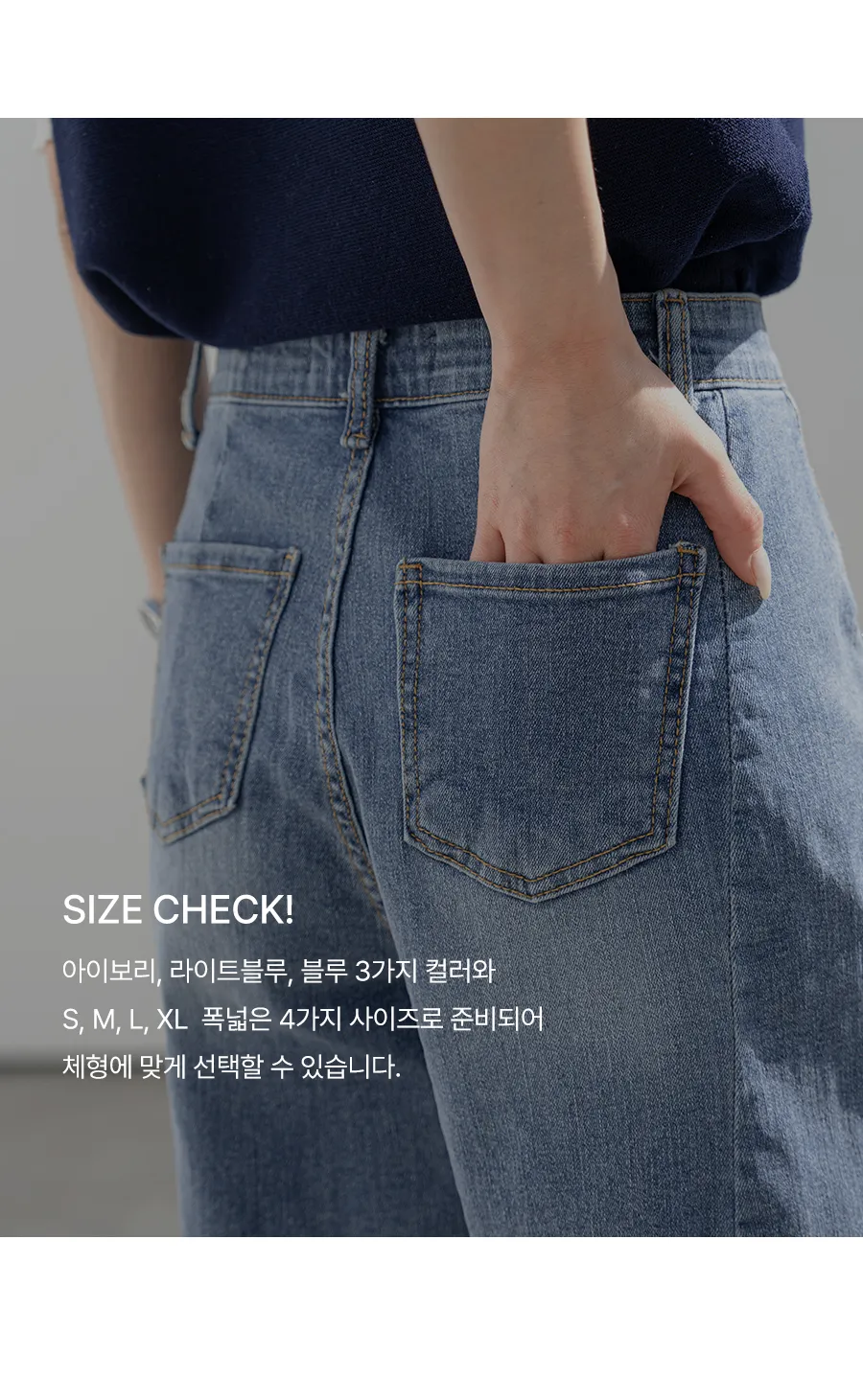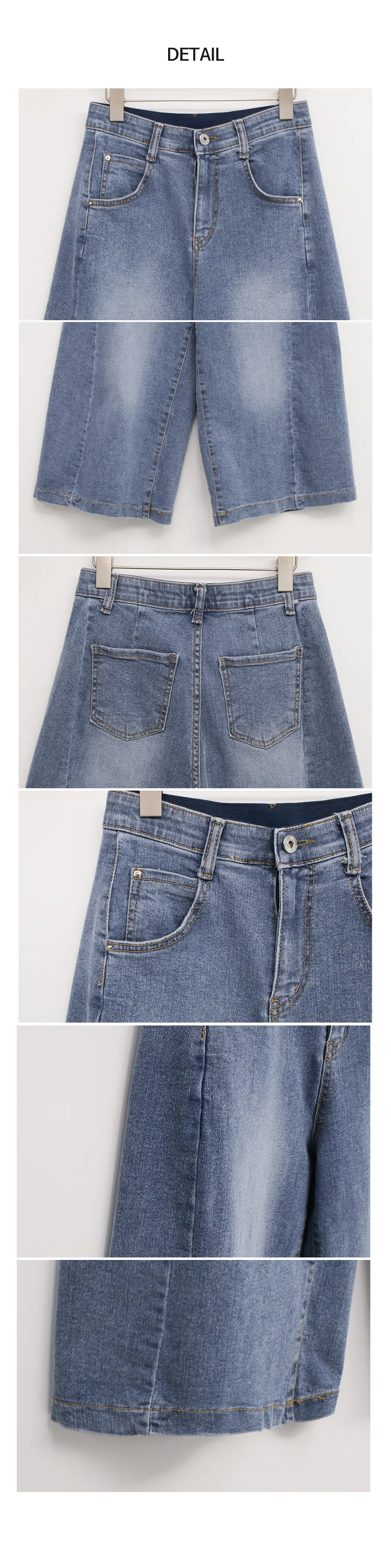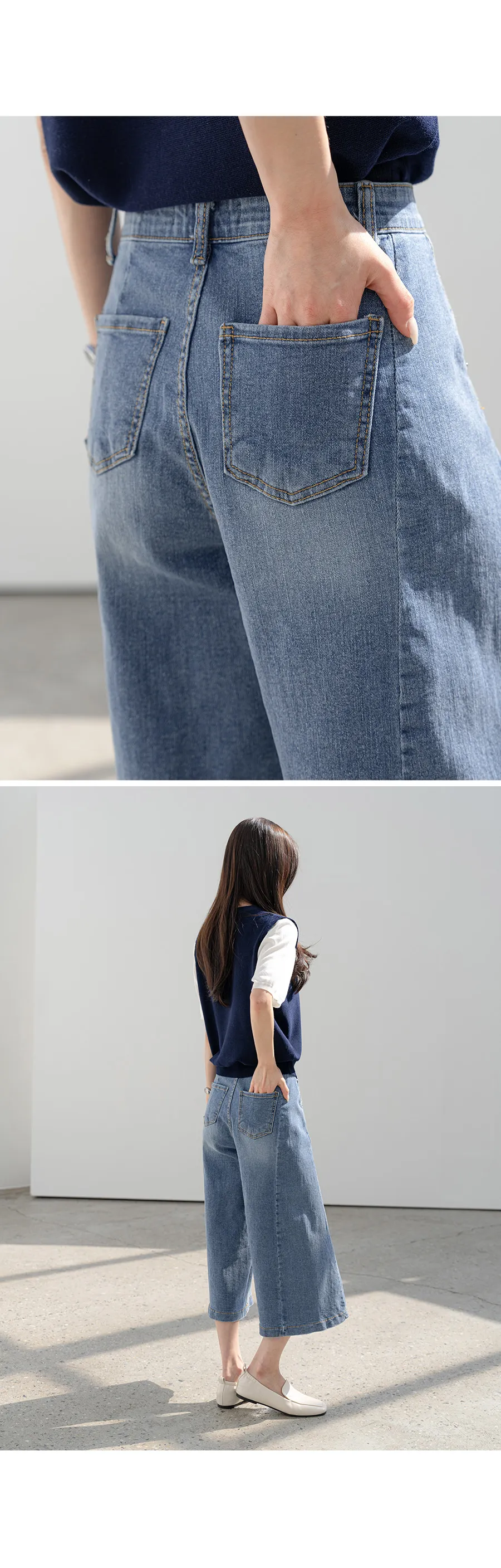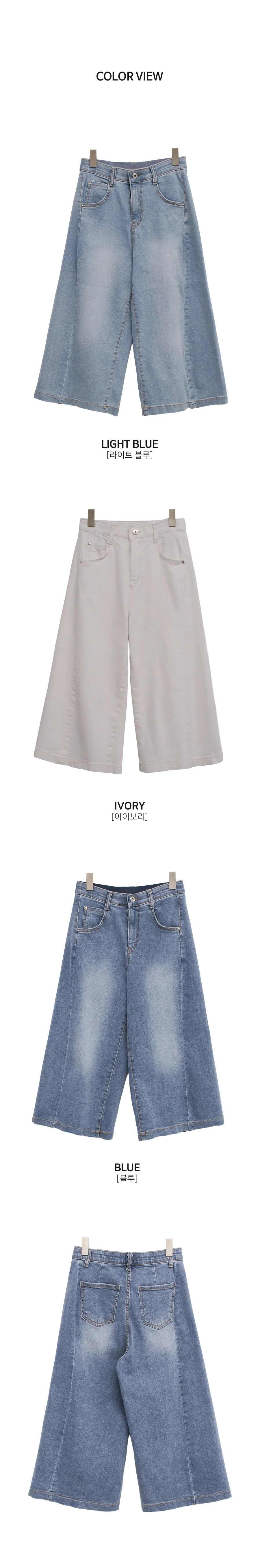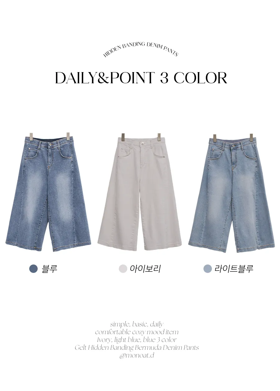 デニムコットンウォッシングポケットリベットバックポケットストレートワイドジップアップバックルループヒドゥンバンディングライトブルーディープブルーデニムパンツ[選べる丈]