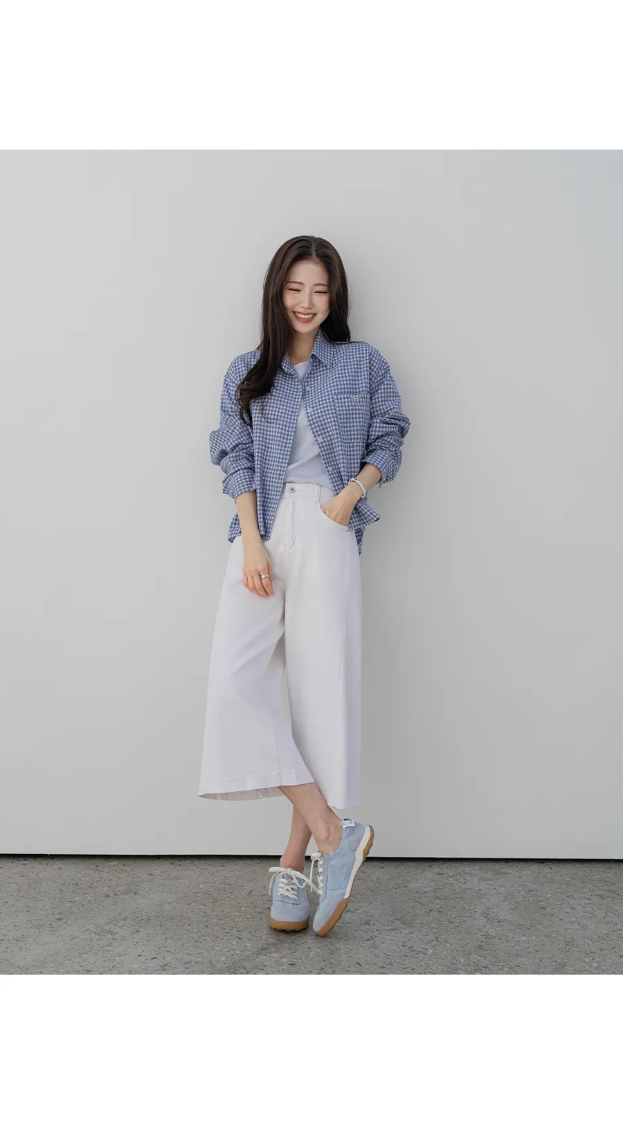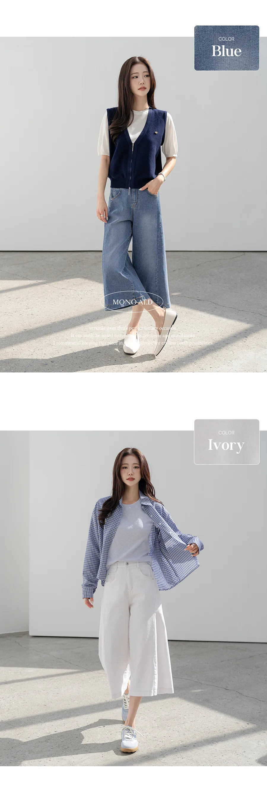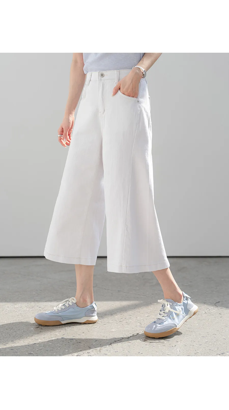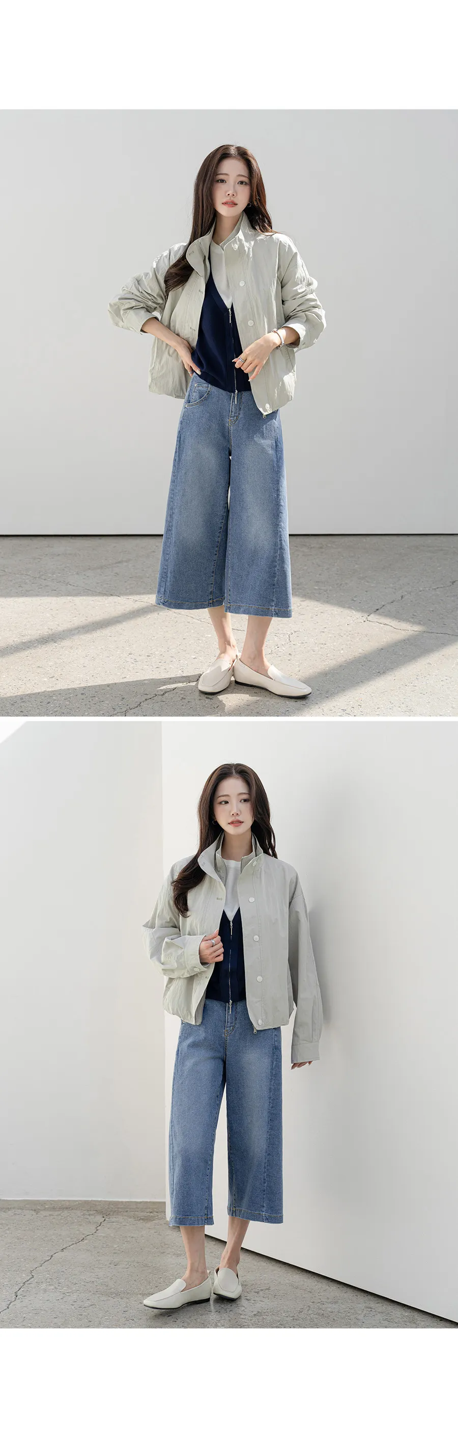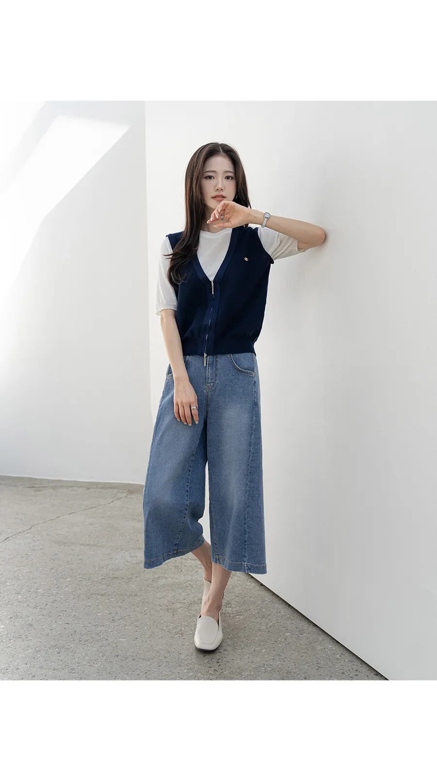 デニムコットンウォッシングポケットリベットバックポケットストレートワイドジップアップバックルループヒドゥンバンディングライトブルーディープブルーデニムパンツ[選べる丈]