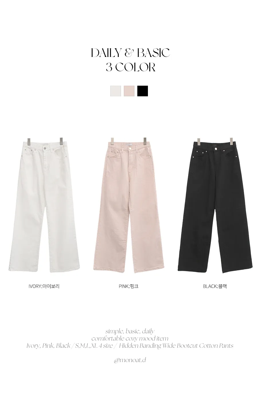 | Size | ウエスト | ヒップ | 裾幅 | わたり | 股上 | 着丈 |