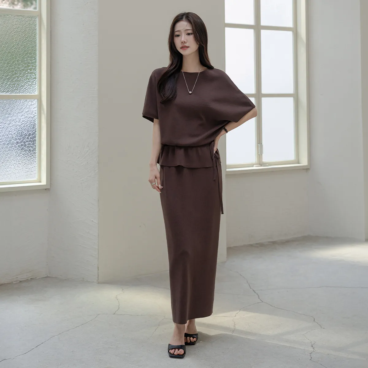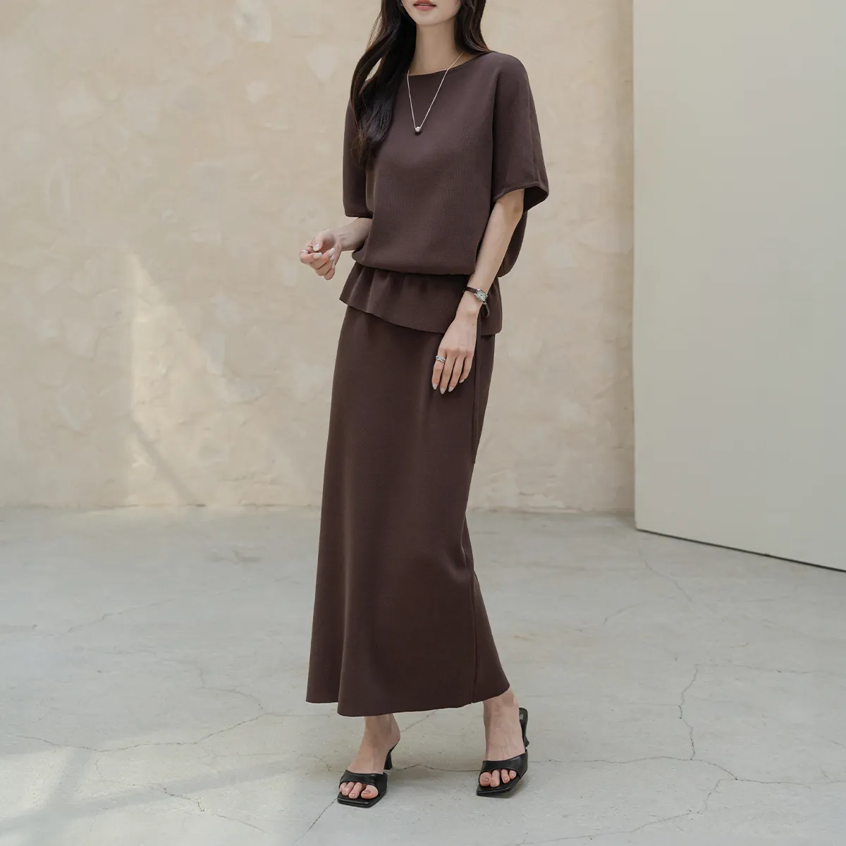 ボタンスクエアネックシャーリングパフスリーブラグランクロップドスリム長袖フレアAラインワイドネックミニヒドゥンジッパーチェックツーピース(トップス、ボトムス)スカートブラウス