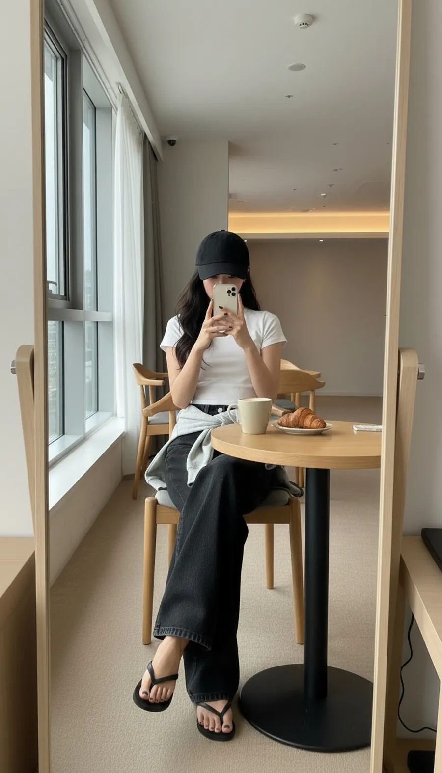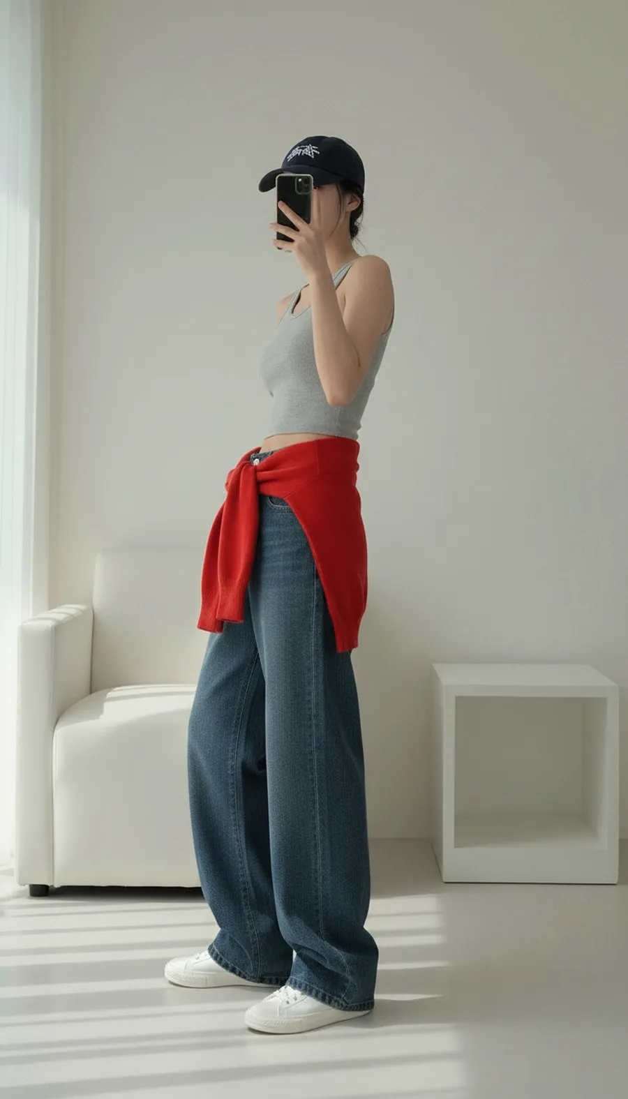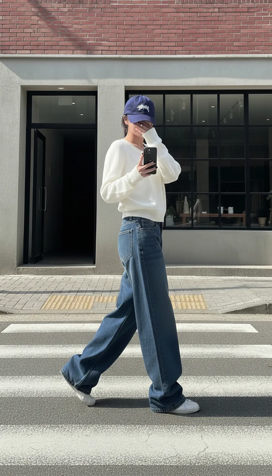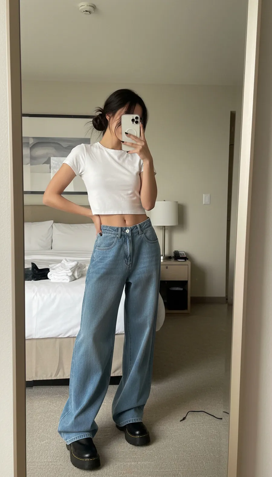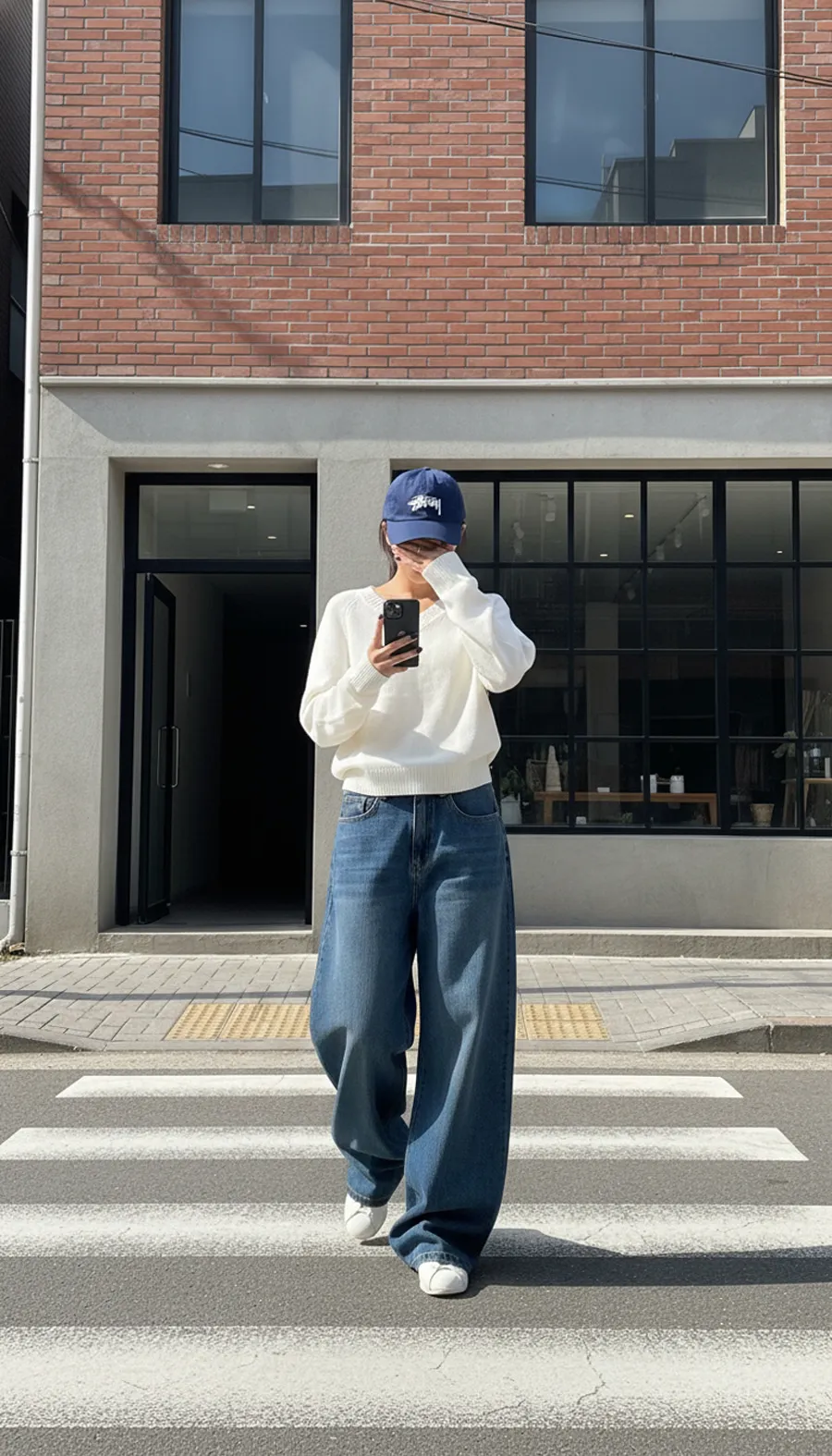 デニムコットンウォッシングポケットリベットバックポケットストレートワイドジップアップバックルループヒドゥンバンディングライトブルーディープブルーデニムパンツ[選べる丈]