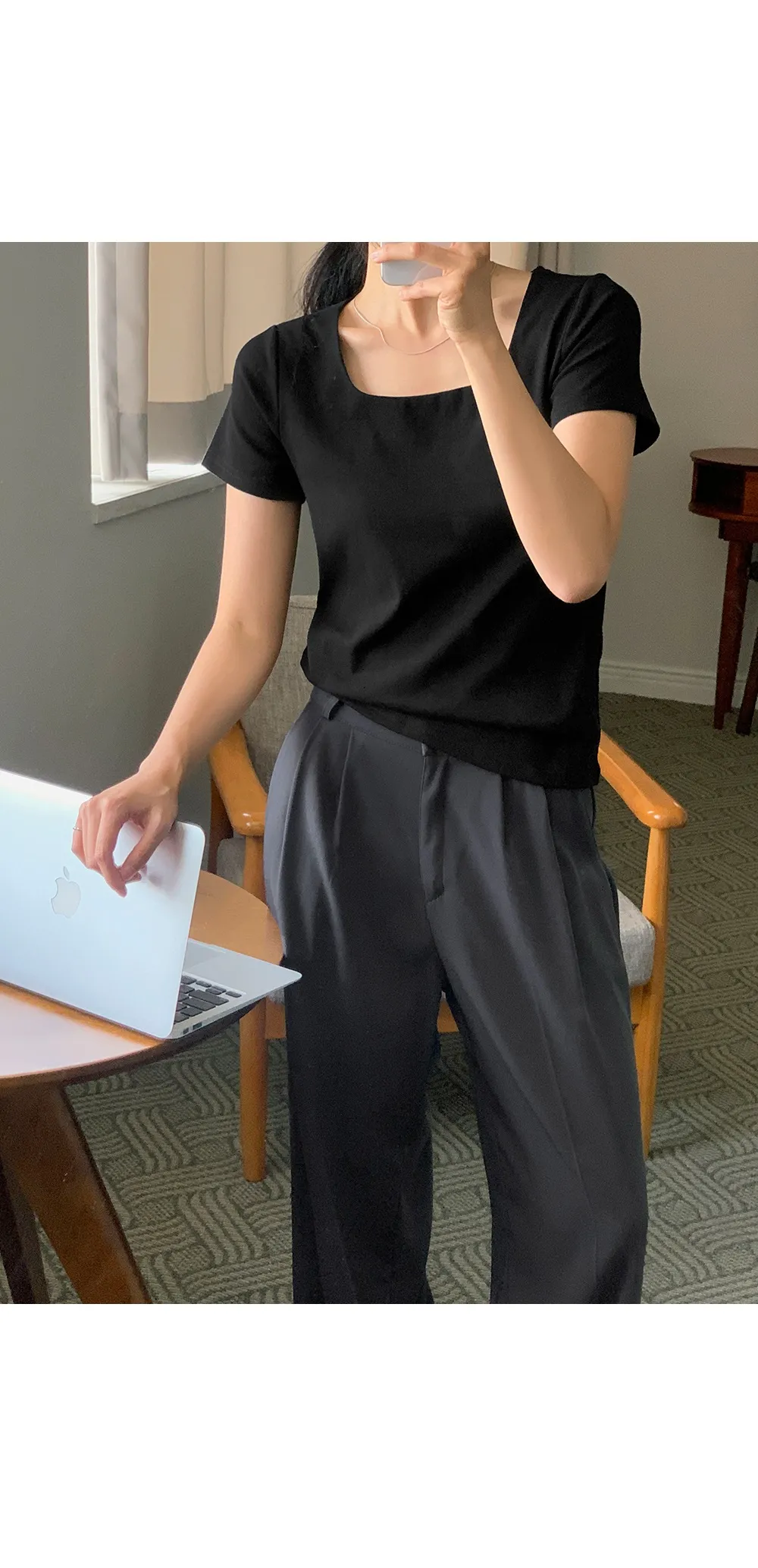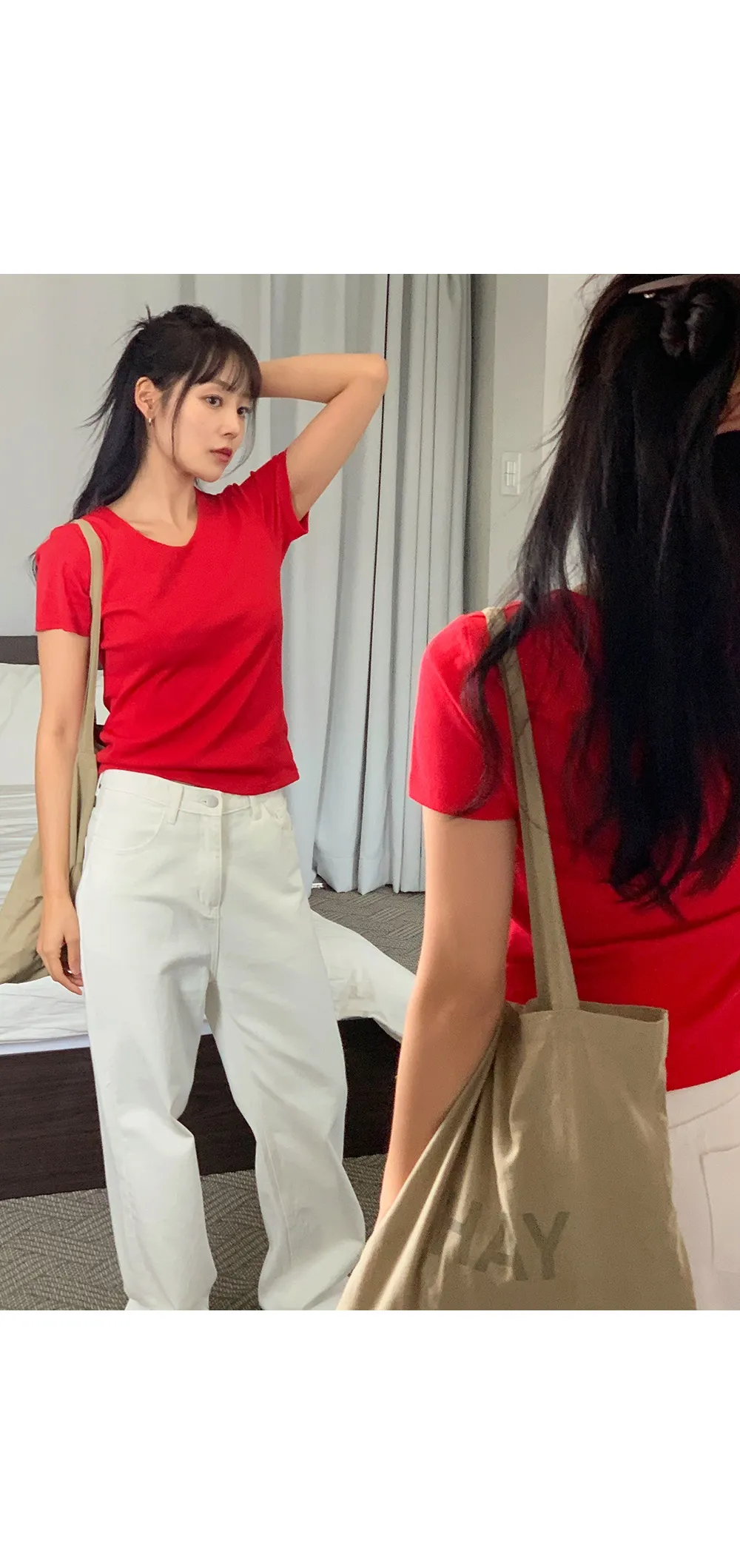 着用 : スクエア_ブラック(black) / 1,Uネック_レッド(red) / 1