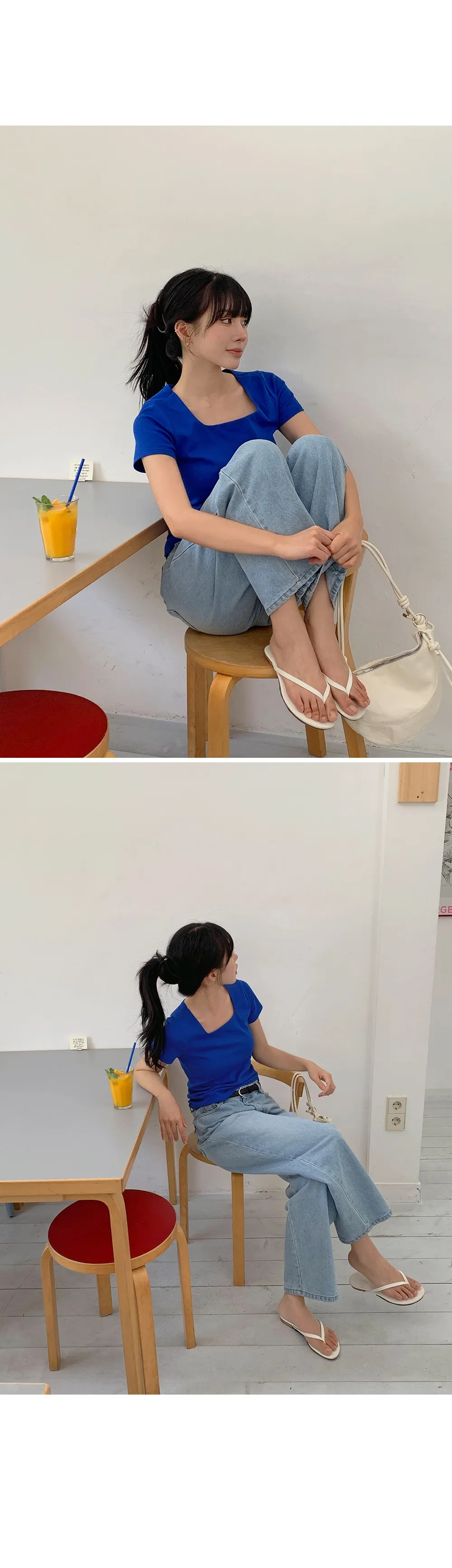 着用 : スクエア_ブルー(blue) / 1,Uネック_ホワイト(white) / 1