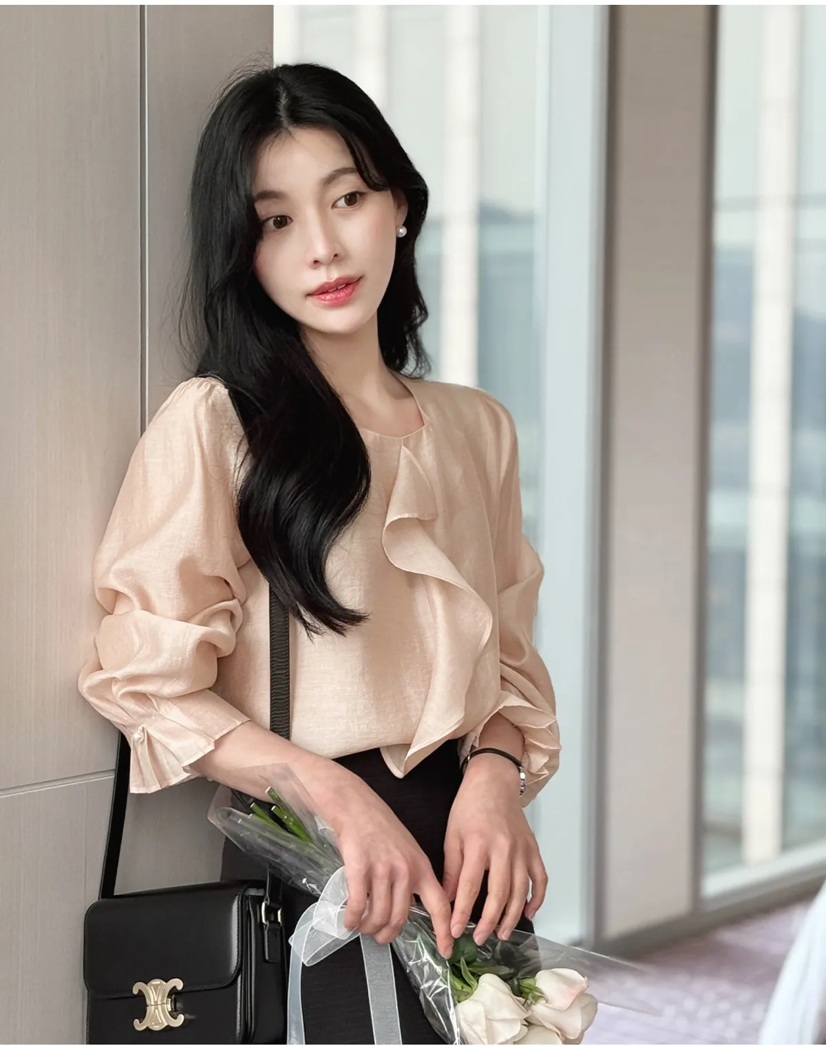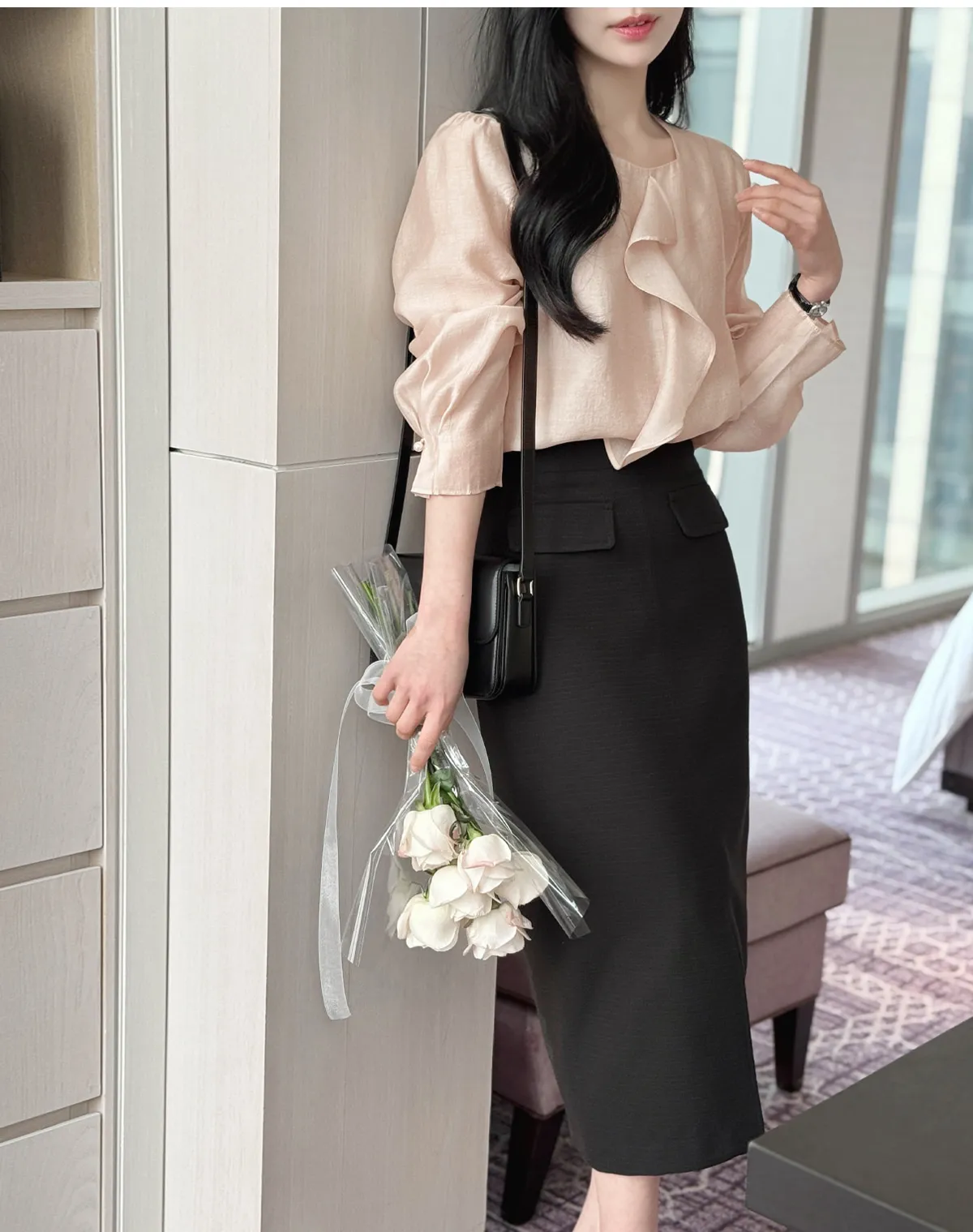 ボタンスクエアネックシャーリングパフスリーブラグランクロップドスリム長袖フレアAラインワイドネックミニヒドゥンジッパーチェックツーピース(トップス、ボトムス)スカートブラウス