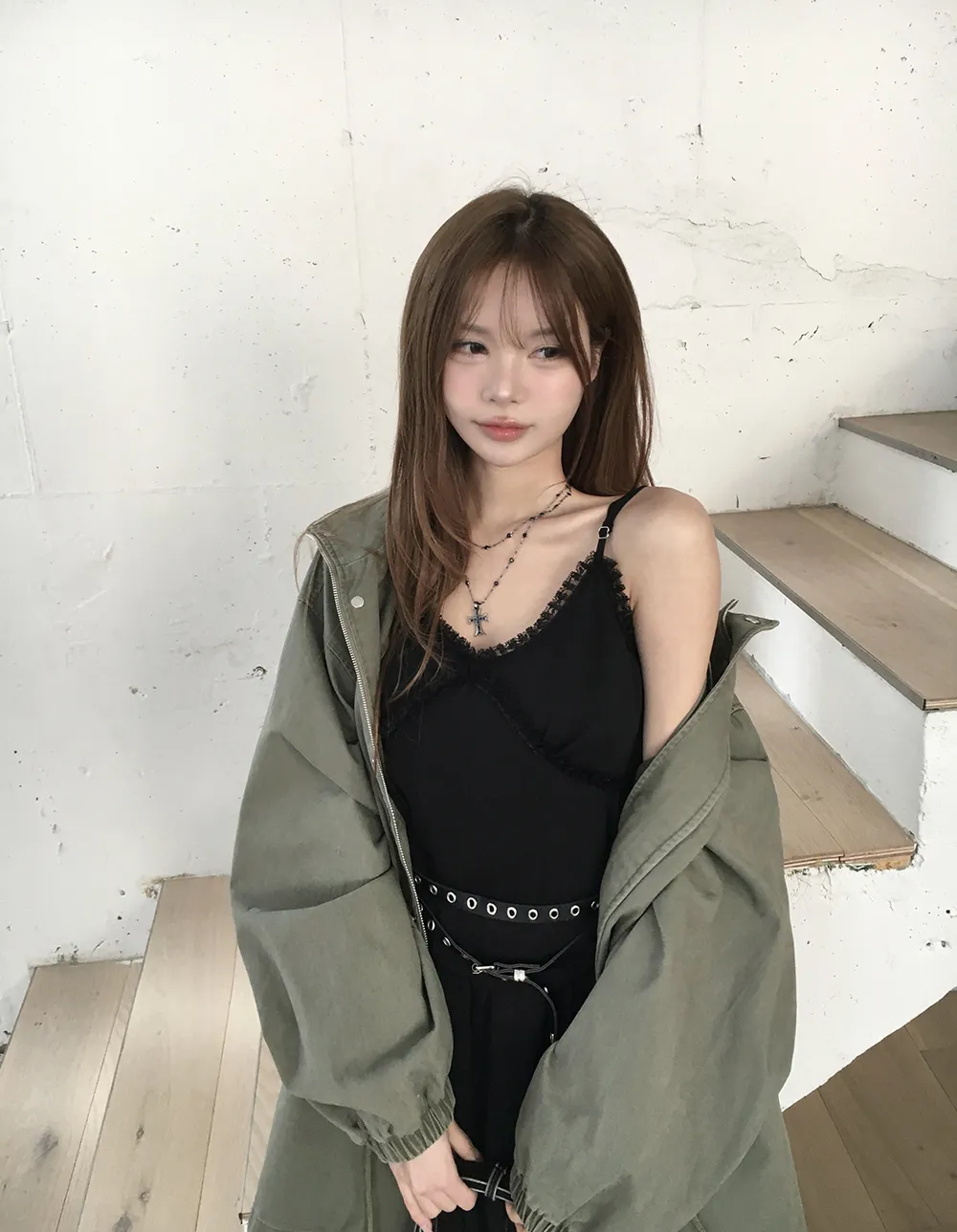 着用 : カーキ / FREE