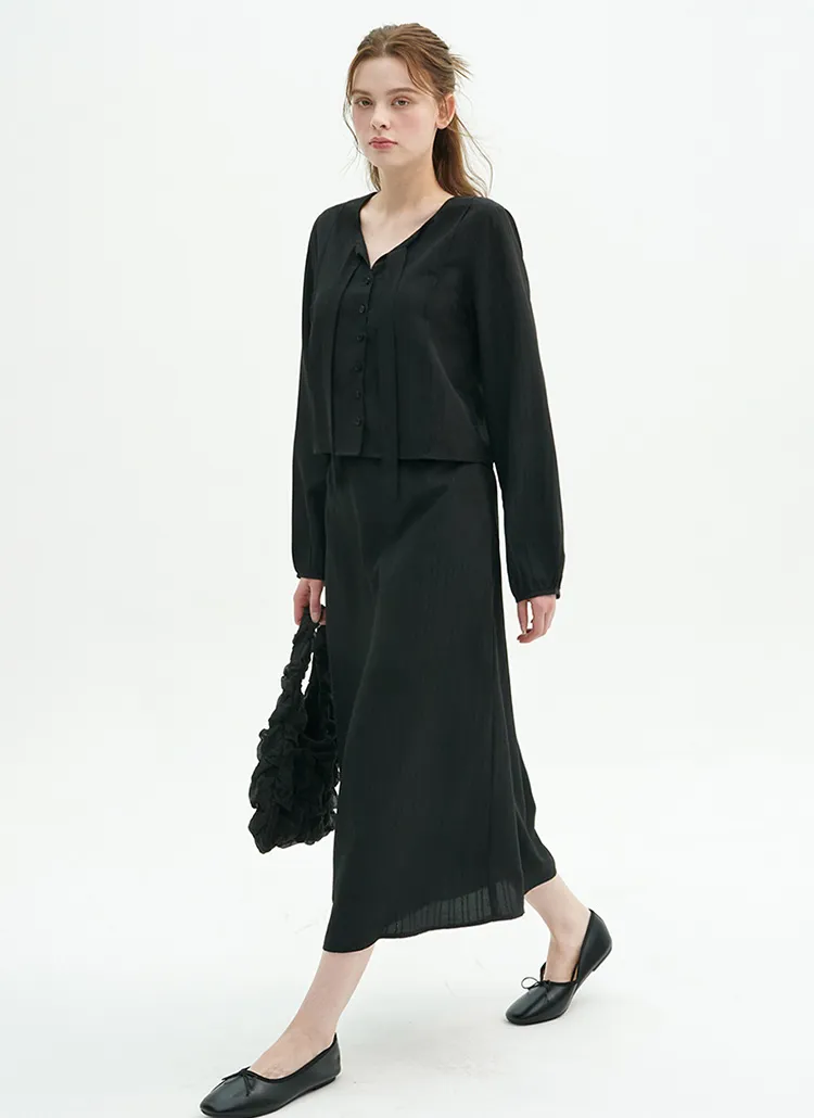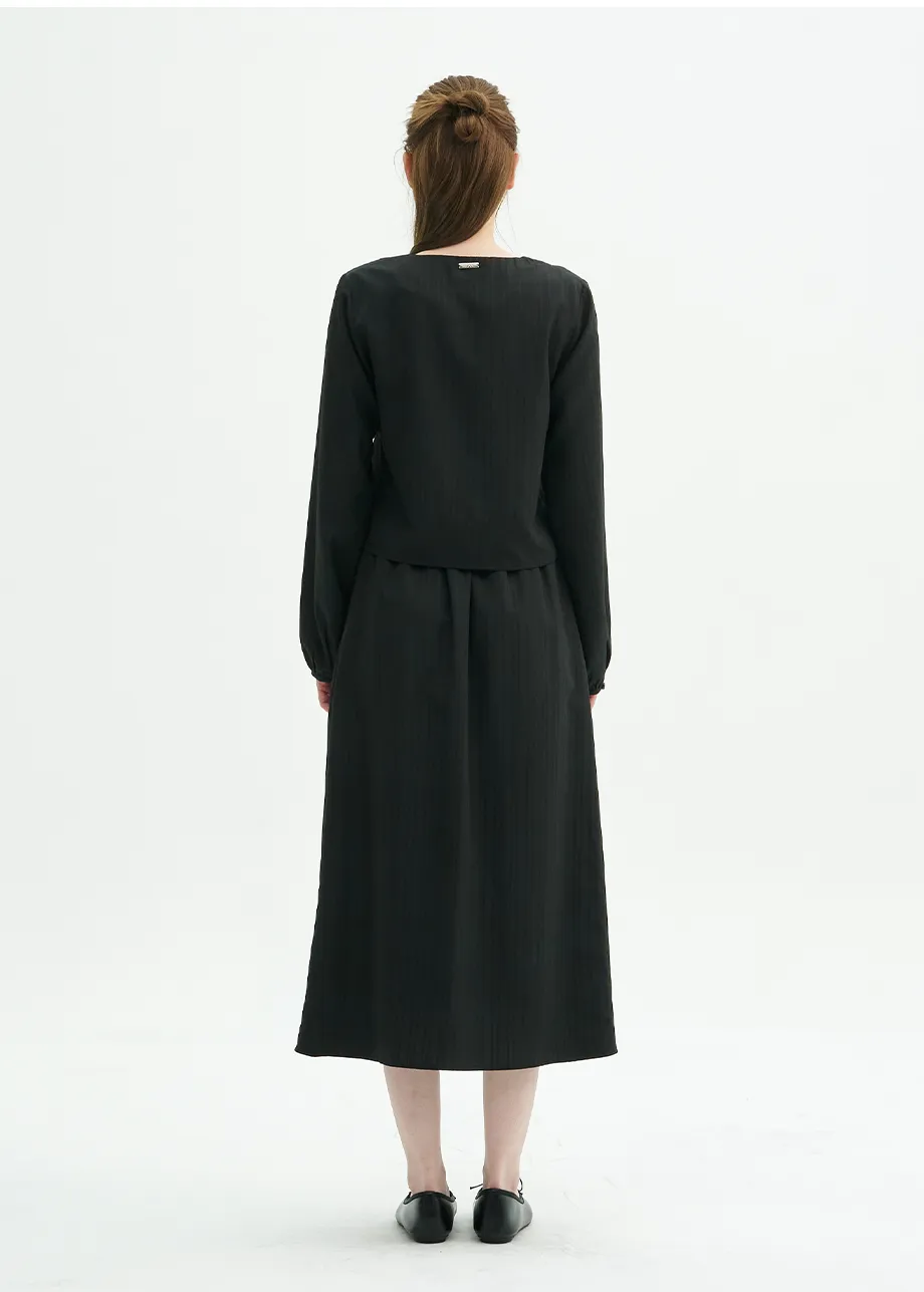 コンビシフォンショートキャップスリーブペプラムパール調ボタンラインボートネックフレアAラインロングハイウエストヒドゥンジッパージャケットスカートツーピース(トップス、ボトムス)