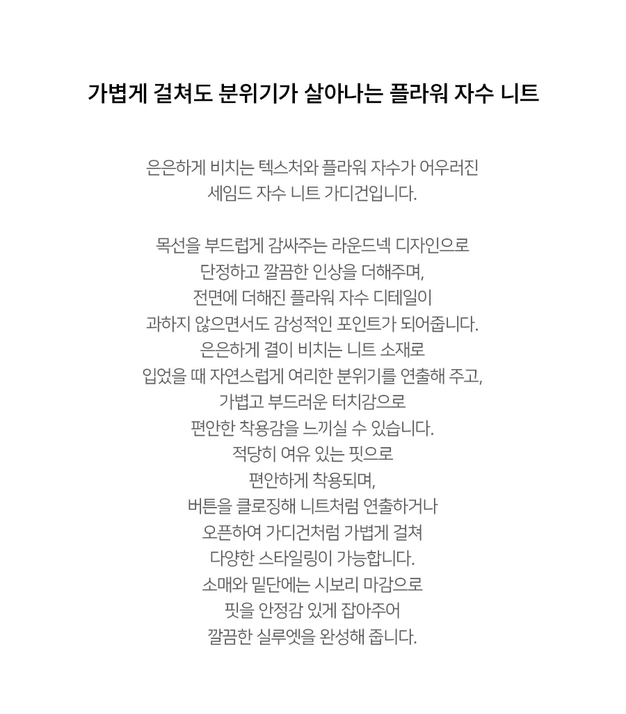 ニット カーディガン ニットラウンドネック長袖ボタンベーシック刺繍カーディガン・S1964538 ¥6,040 0%¥6,040税込 特典適用後の想定価格 特典割引 - ¥0 クーポン 4月のお買い物クーポン【35%OFF】 最低注文金額20,000円/最大8,000円割引 - ¥0 4月のお買い物クーポン【30%OFF】 最低注文金額15,000円/最大5,000円割引 - ¥0 4月のお買い物クーポン【20%OFF】 最低注文金額10,000円/最大2,500円割引 - ¥0 4月のお買い物クーポン【10%OFF】 最低注文金額8,000円 - ¥0 まとめて取得 新規特典 クーポン 【WELCOME】30%OFF COUPON 最低注文金額12,000円/最大4,000円割引 - ¥0 【WELCOME】20%OFF COUPON 最低注文金額8,000円/最大2,000円割引 - ¥0 ポイント 【WELCOME】550 Bonus Point - ¥550 WELCOME POINT 200Point - ¥200 会員登録 *クーポンは支払いの際にご利用いただけます *この画面には一部の割引特典のみが表示されます。 *特典適用後の価格はあくまでも目安となり、実際のお支払い金額とは異なる場合があります。 還元 最大60 point + 130 point POINT 購入金額の1% 最大60ポイント 商品レビュー投稿時に 100ポイント サイズ情報を入力しレビュー投稿で 30ポイント *ディホリック会員限定 送料 送料 ¥550 (8,000円以上の場合、送料無料) 最大割引クーポンでお得にショッピングを! 4月のお買い物クーポン【35%OFF】 最低注文金額20,000円 最大割引額8,000円 35 ~ 2026-04-30 4月のお買い物クーポン【30%OFF】 最低注文金額15,000円 最大割引額5,000円 30 ~ 2026-04-30 4月のお買い物クーポン【20%OFF】 最低注文金額10,000円 最大割引額2,500円 20 ~ 2026-04-30 4月のお買い物クーポン【10%OFF】 最低注文金額8,000円 10 ~ 2026-04-30 まとめてダウンロード