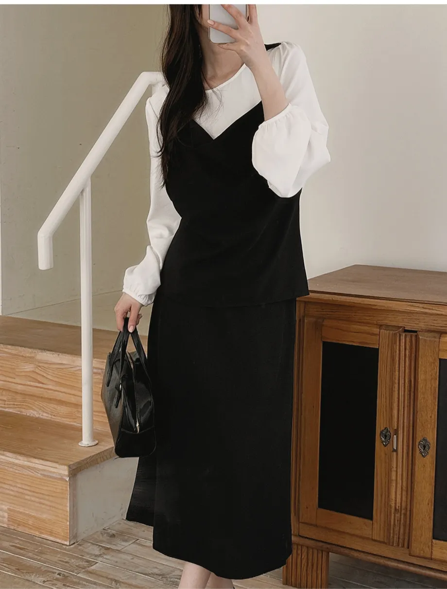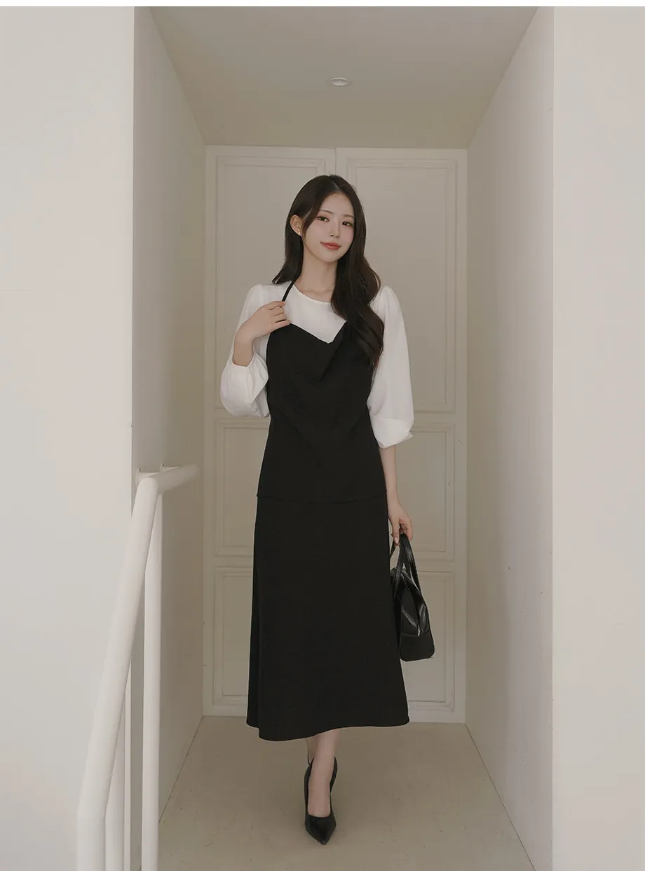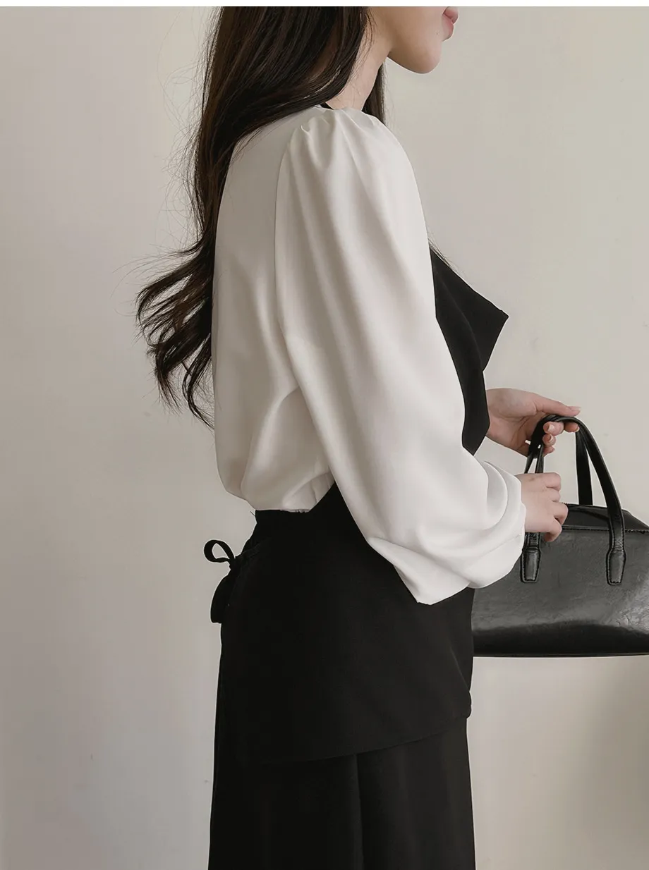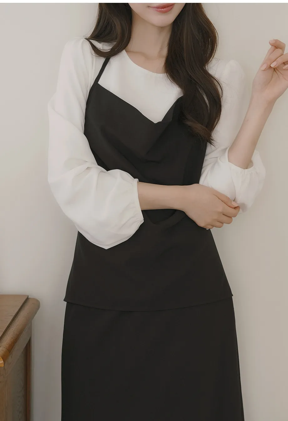 ボタンスクエアネックシャーリングパフスリーブラグランクロップドスリム長袖フレアAラインワイドネックミニヒドゥンジッパーチェックツーピース(トップス、ボトムス)スカートブラウス