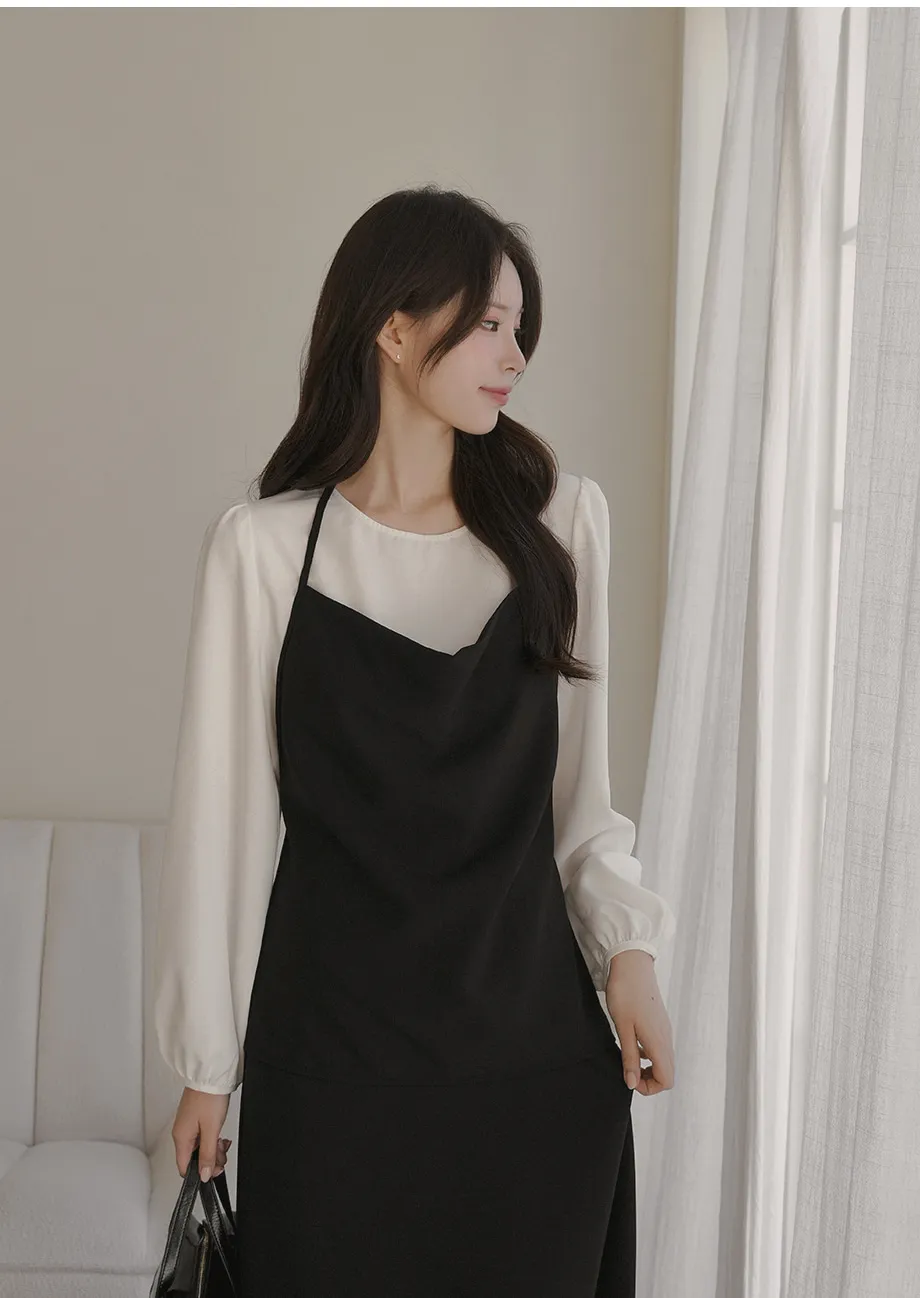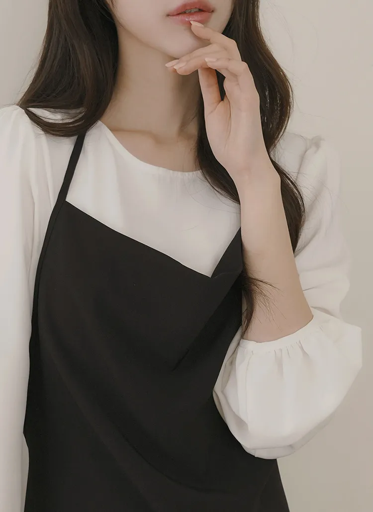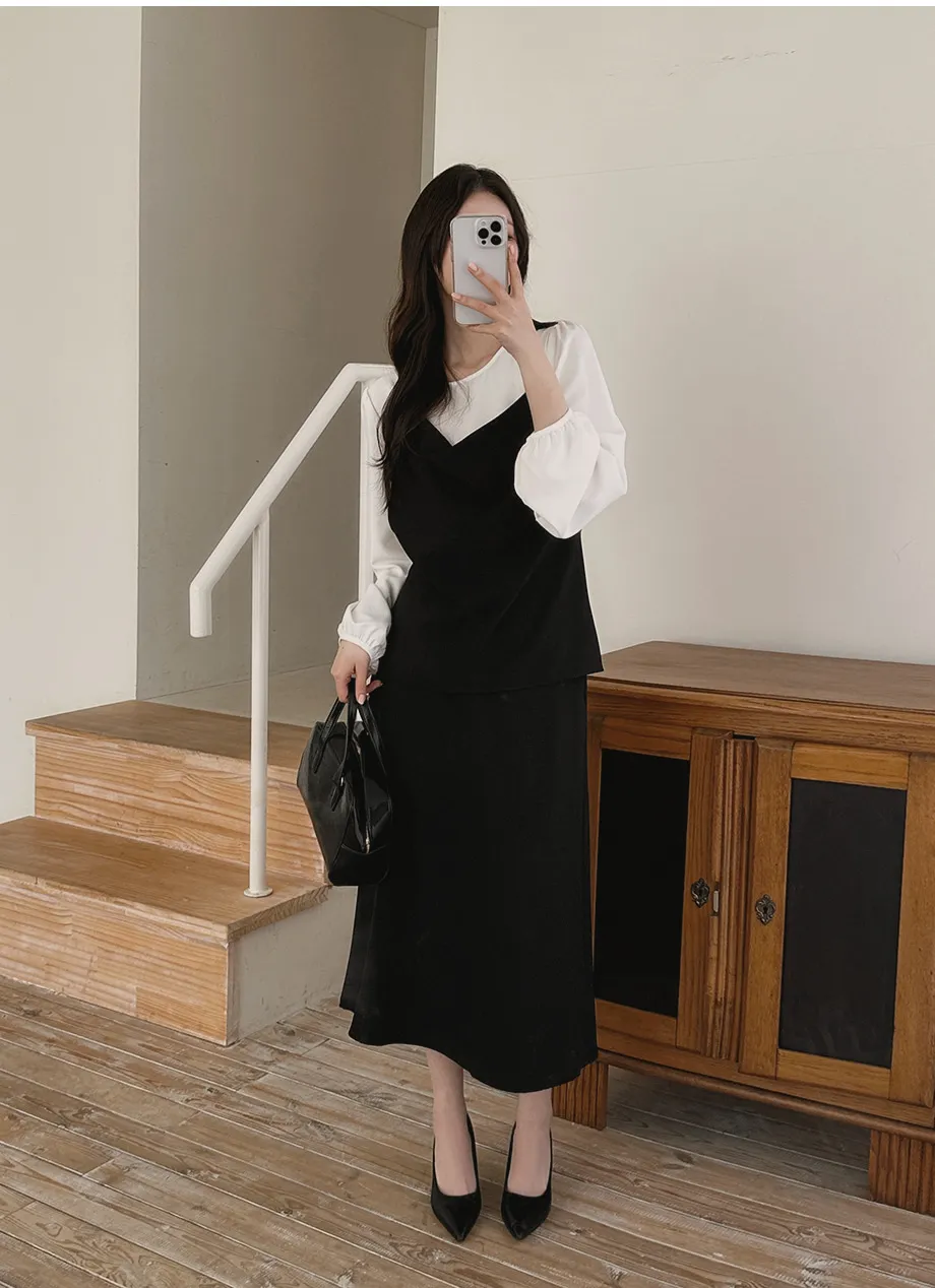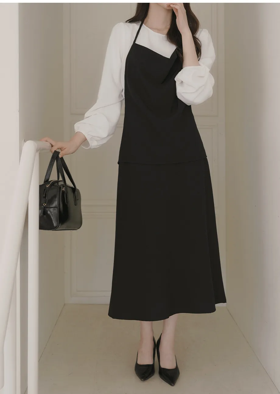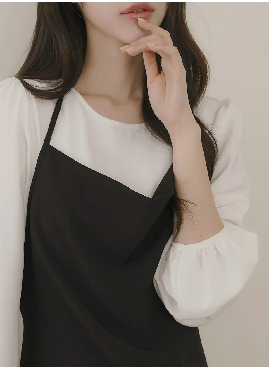 ボタンスクエアネックシャーリングパフスリーブラグランクロップドスリム長袖フレアAラインワイドネックミニヒドゥンジッパーチェックツーピース(トップス、ボトムス)スカートブラウス