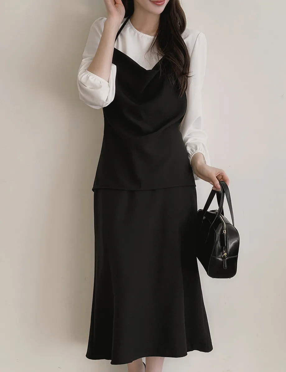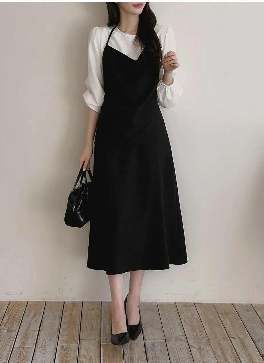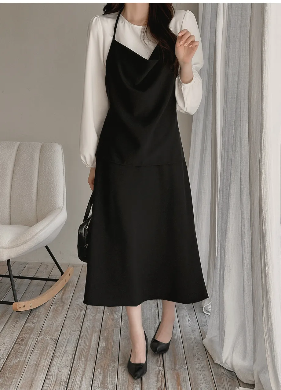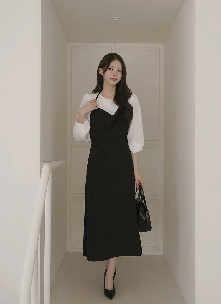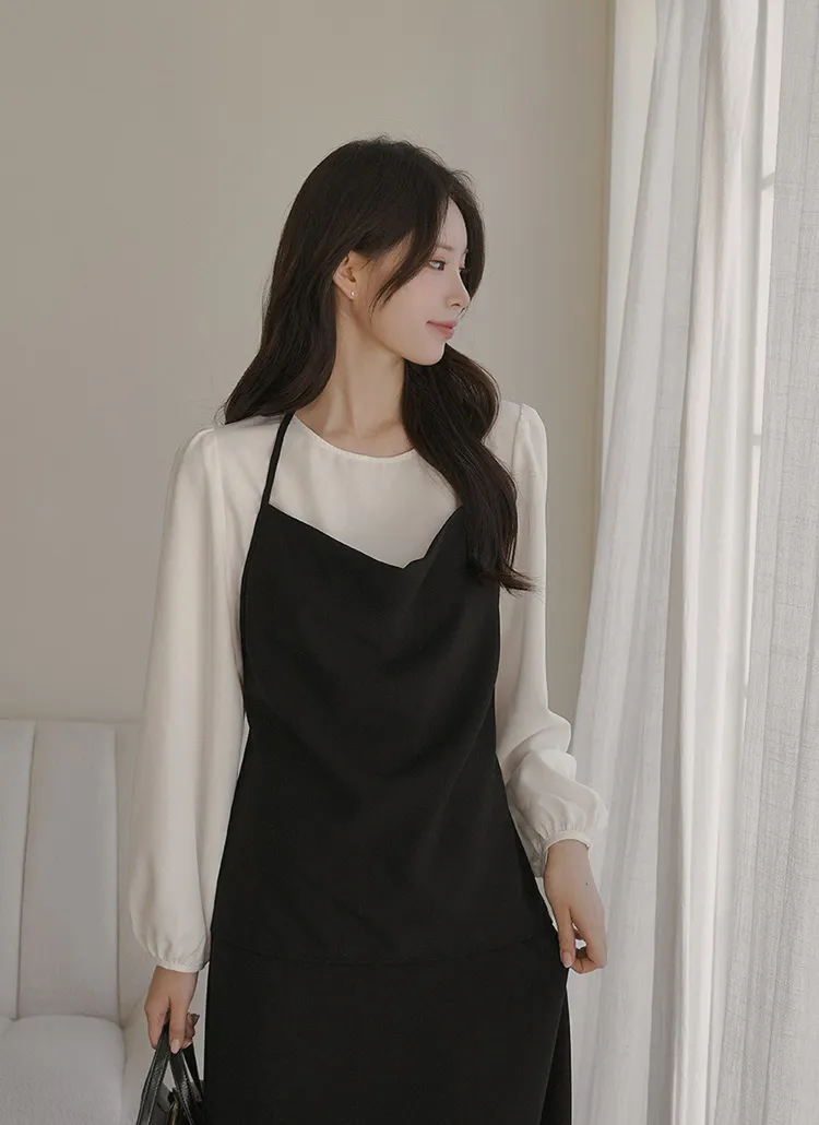 ボタンスクエアネックシャーリングパフスリーブラグランクロップドスリム長袖フレアAラインワイドネックミニヒドゥンジッパーチェックツーピース(トップス、ボトムス)スカートブラウス