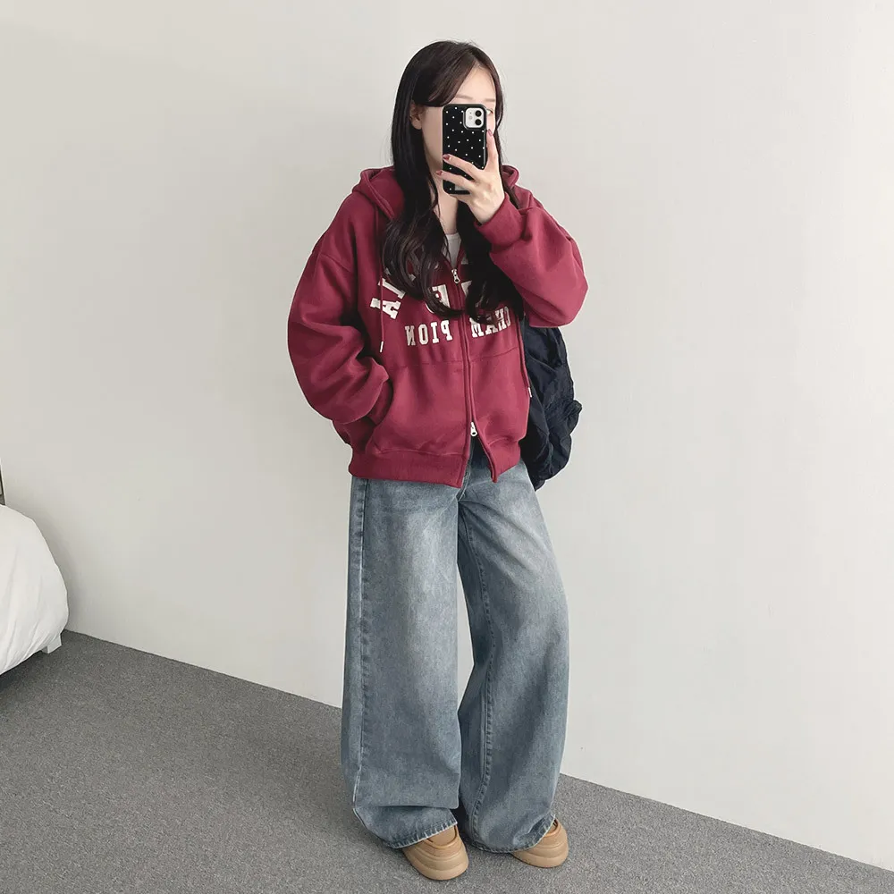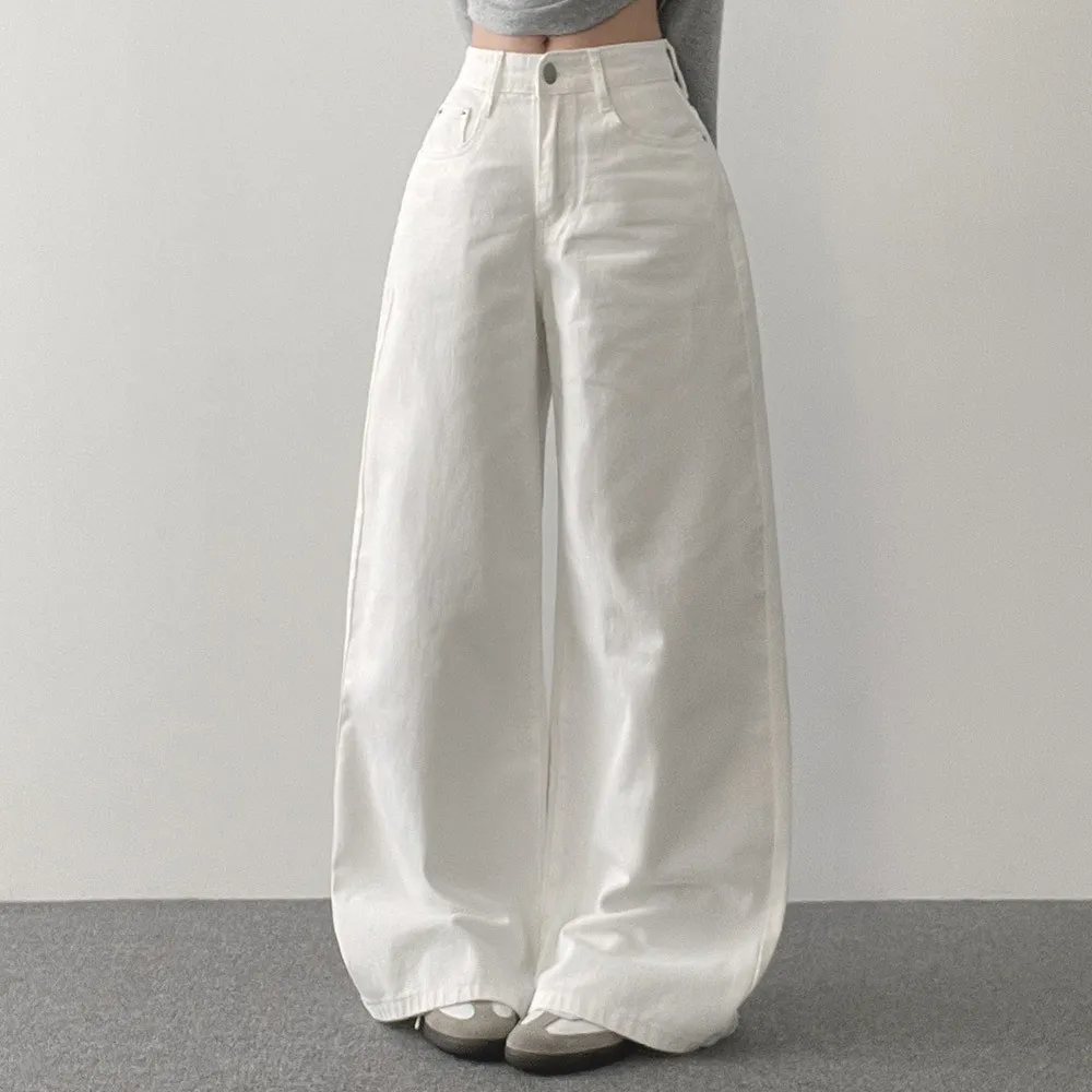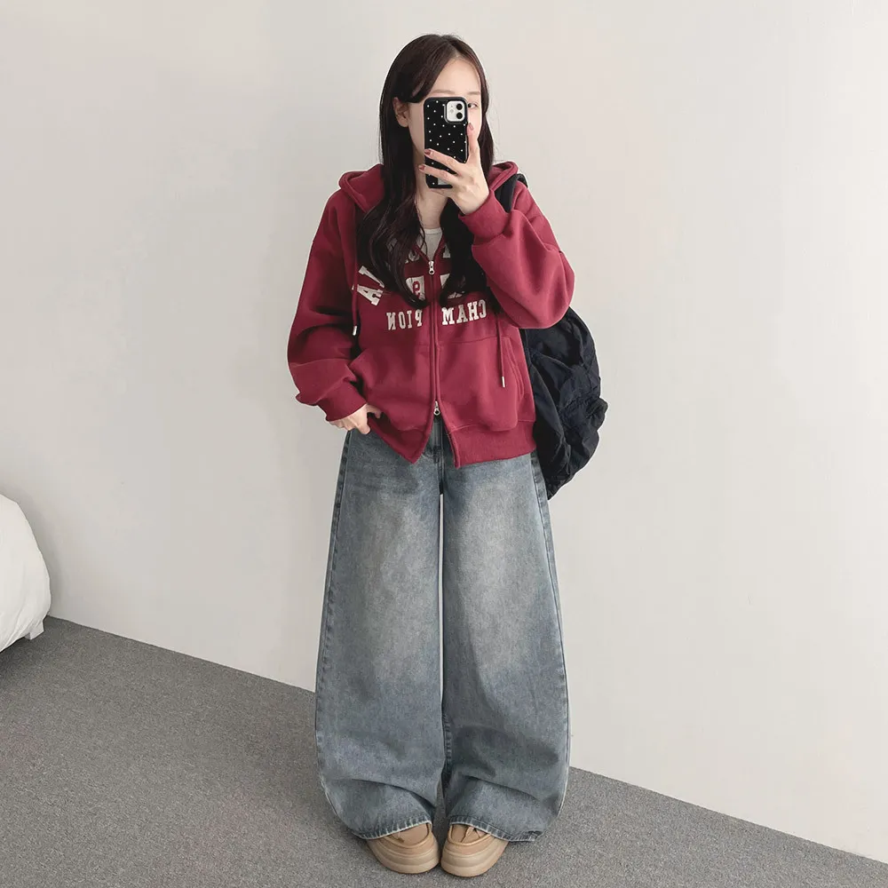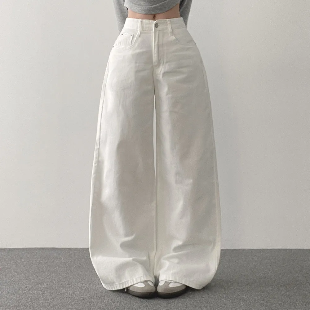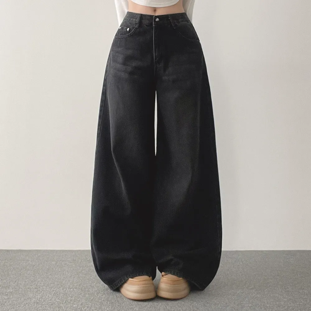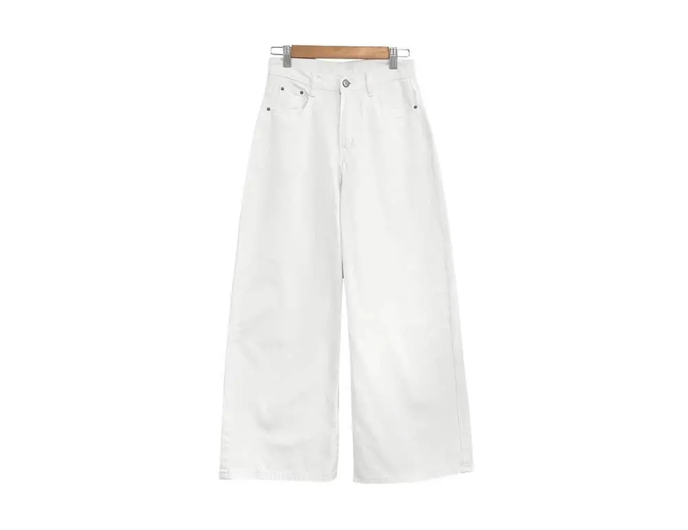 デニムコットンウォッシングポケットリベットバックポケットストレートワイドジップアップバックルループヒドゥンバンディングライトブルーディープブルーデニムパンツ[選べる丈]