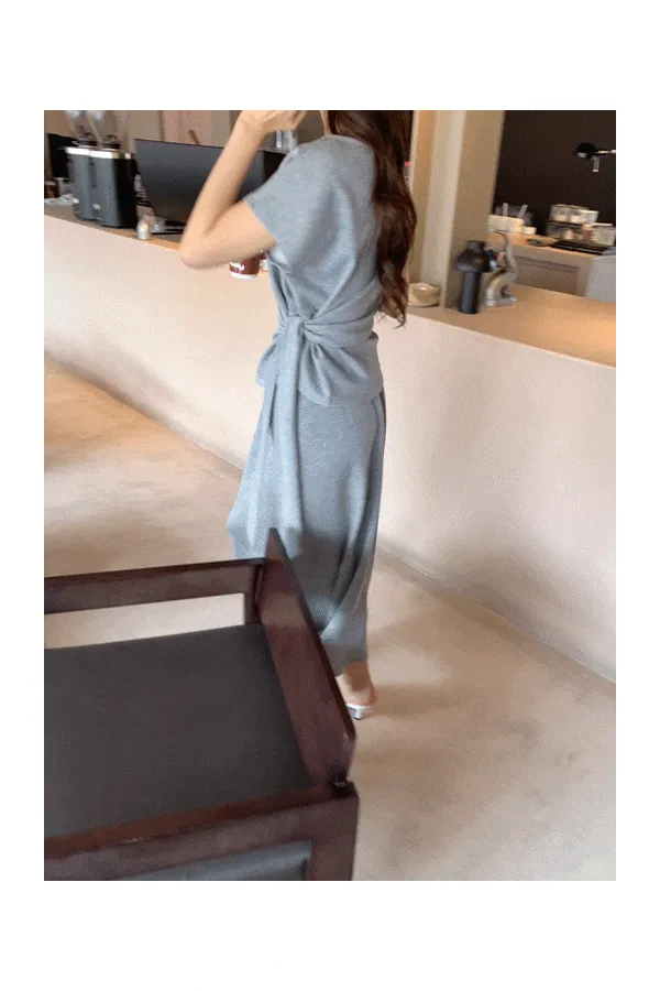 パフスリーブカラーラウンドネック長袖スリムペプラムビジューボタンラインボウタイバックゴムHライン(ロング丈)スリットラッフル無地ジャケットスカートツーピース(トップス、ボトムス)