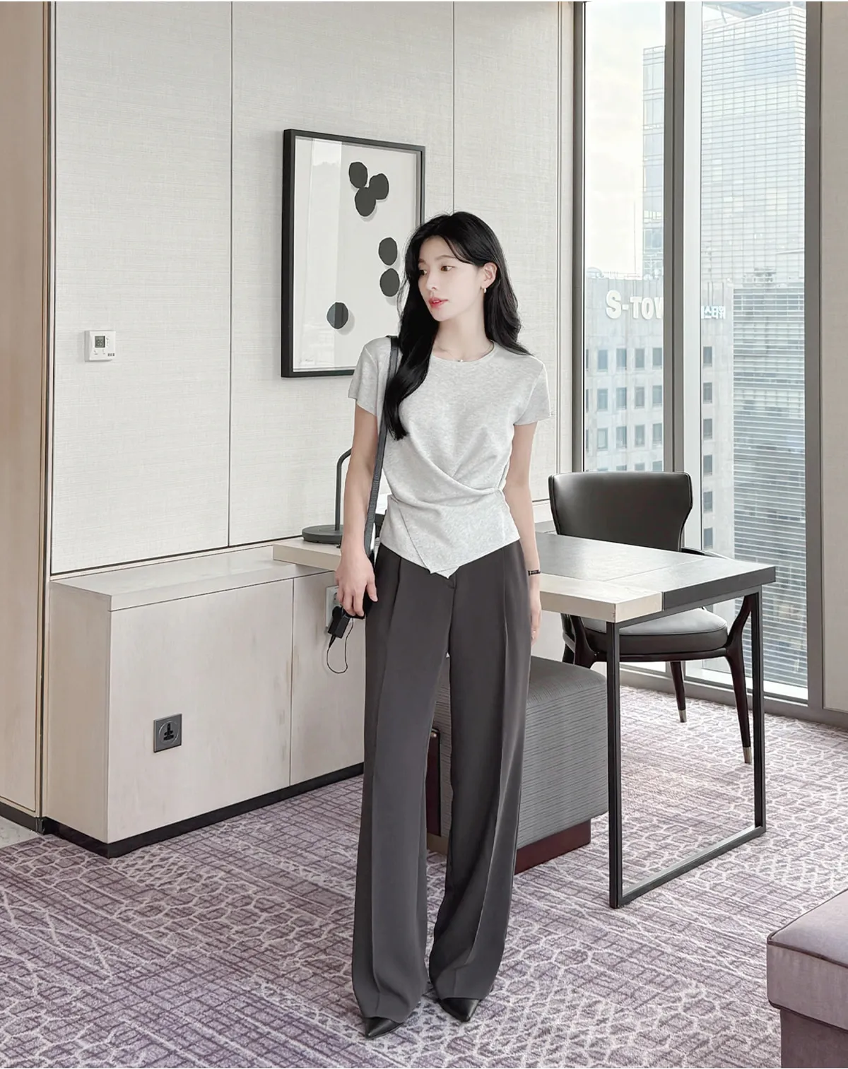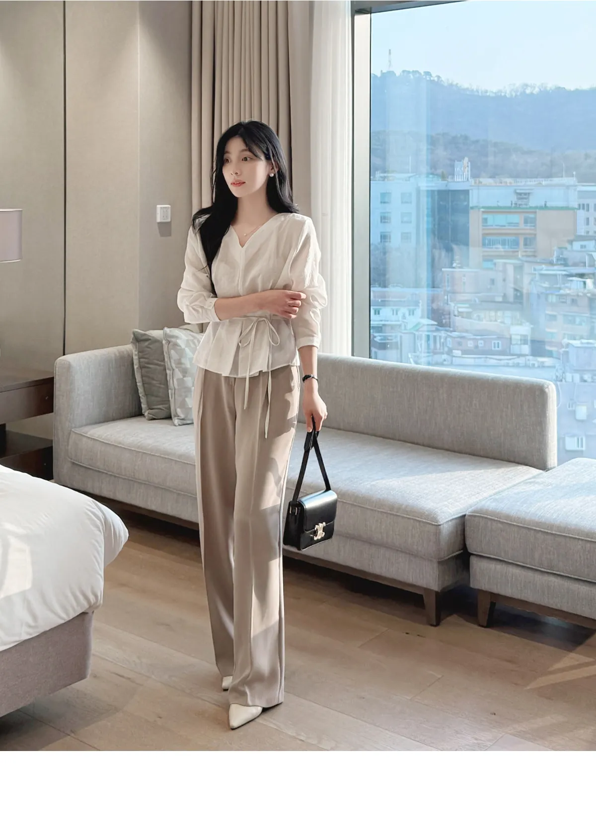着用 : ベージュ / S,ブルー / S,チャコールブラウン / S,ブラック / S