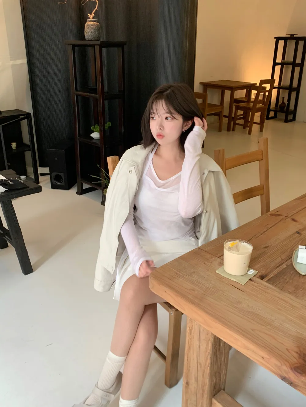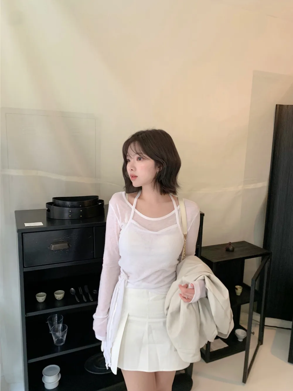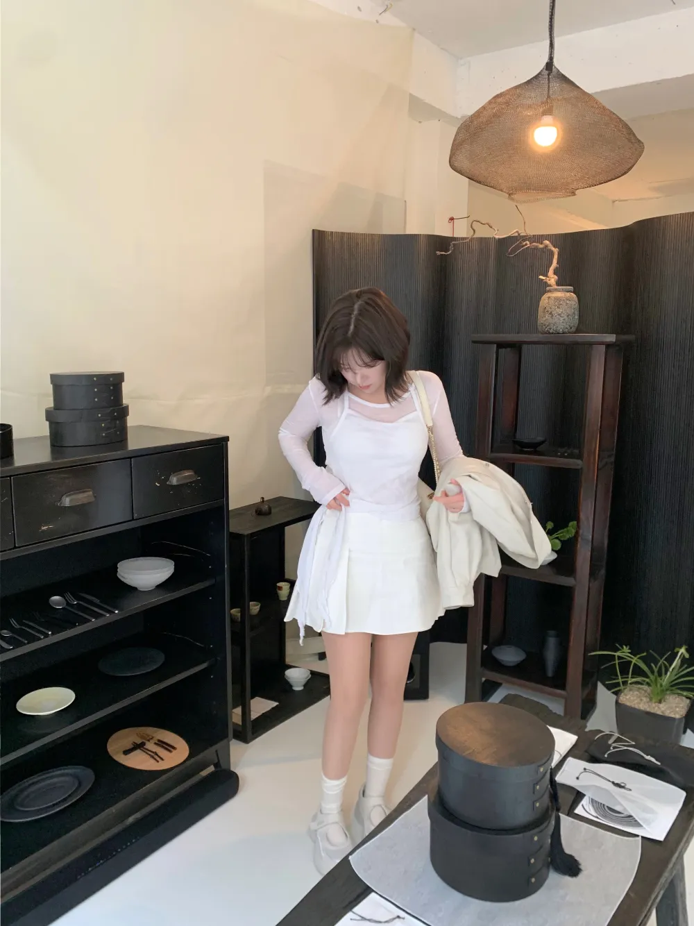 着用 : ホワイト / FREE,チャコール / FREE