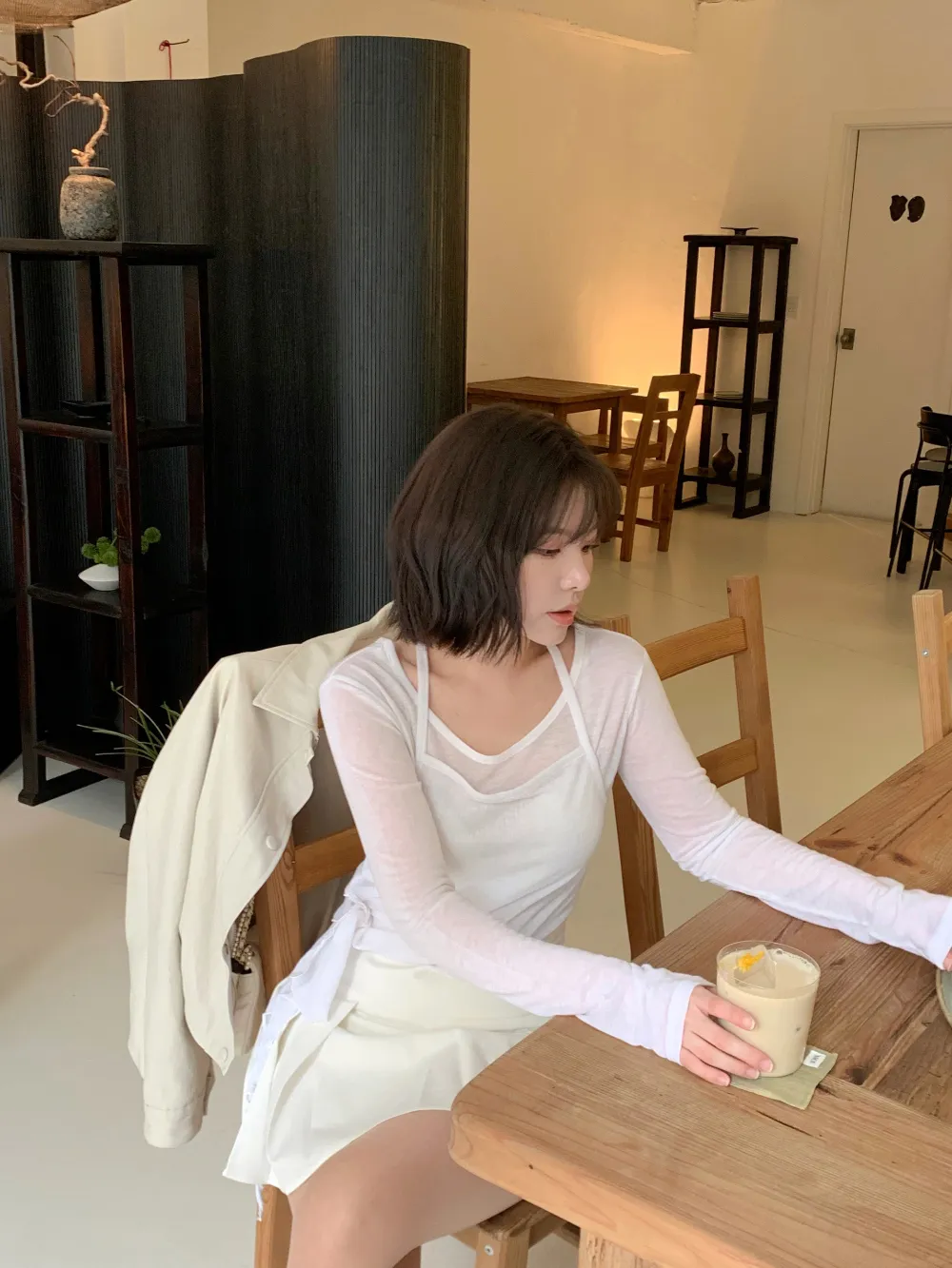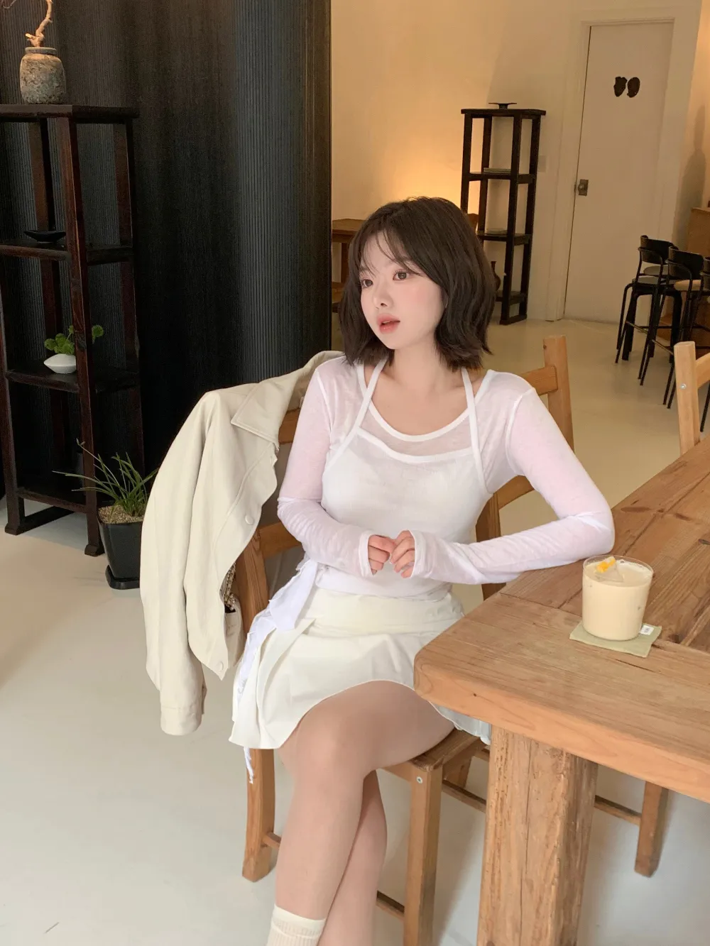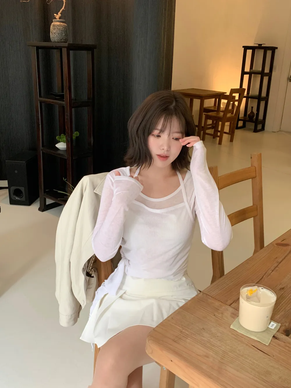 着用 : ホワイト / FREE,チャコール / FREE