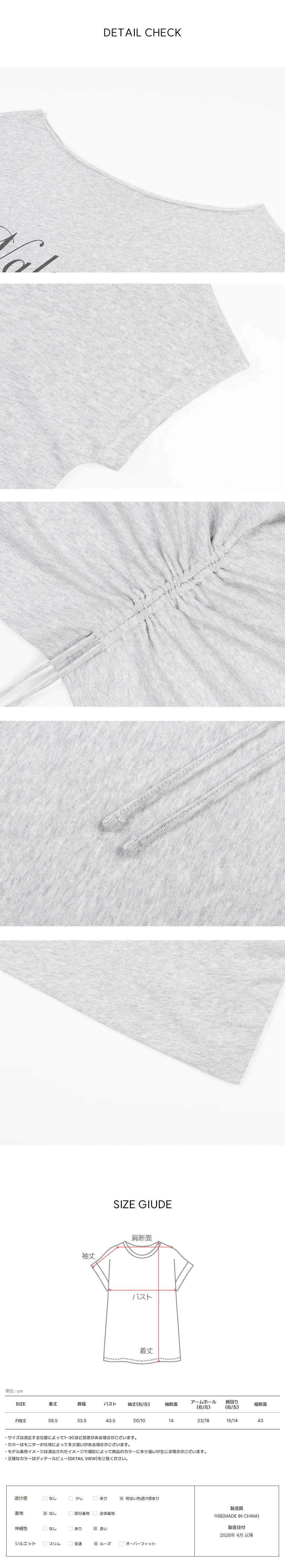 着用 : ホワイト / FREE