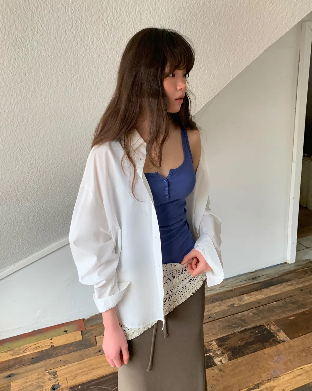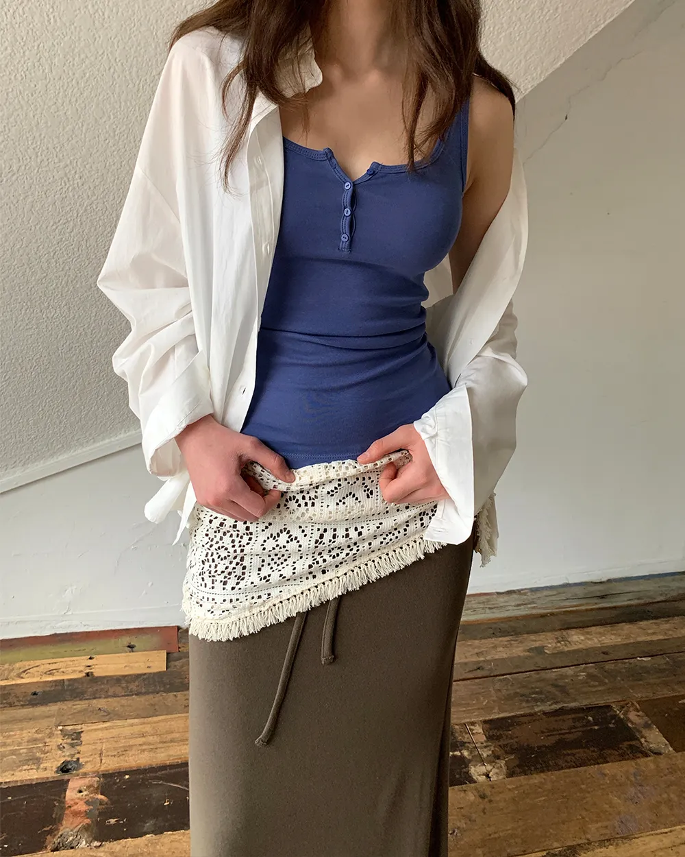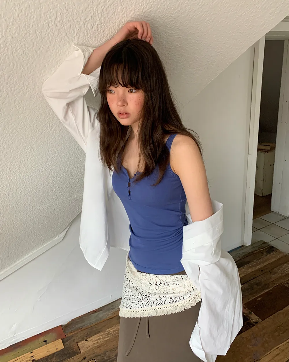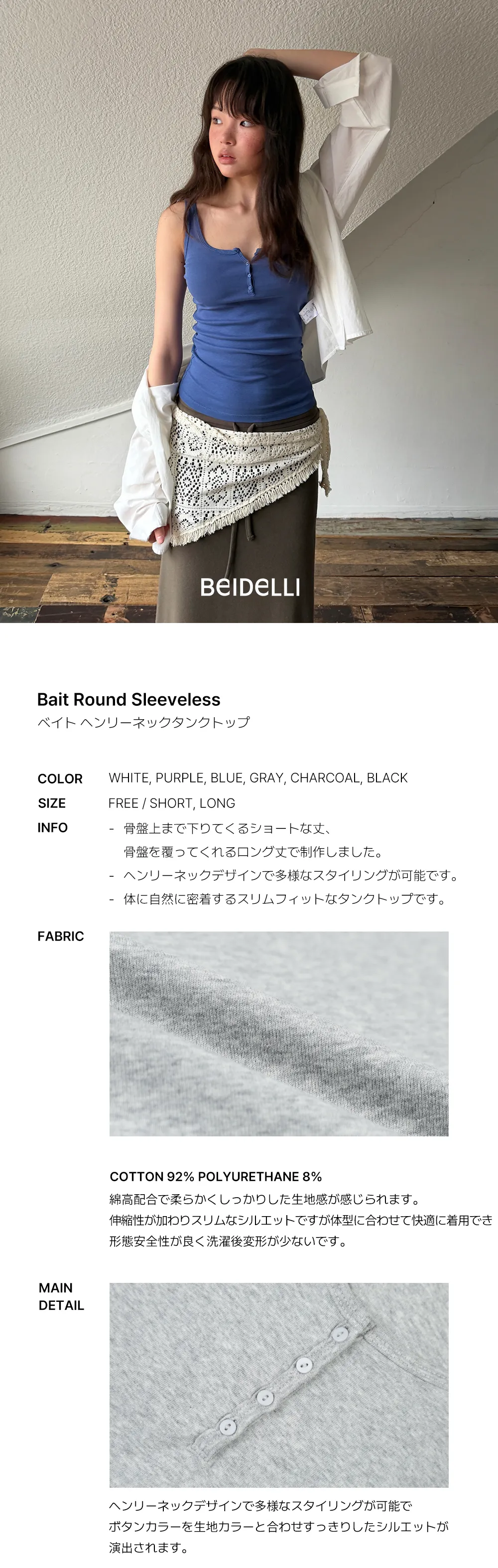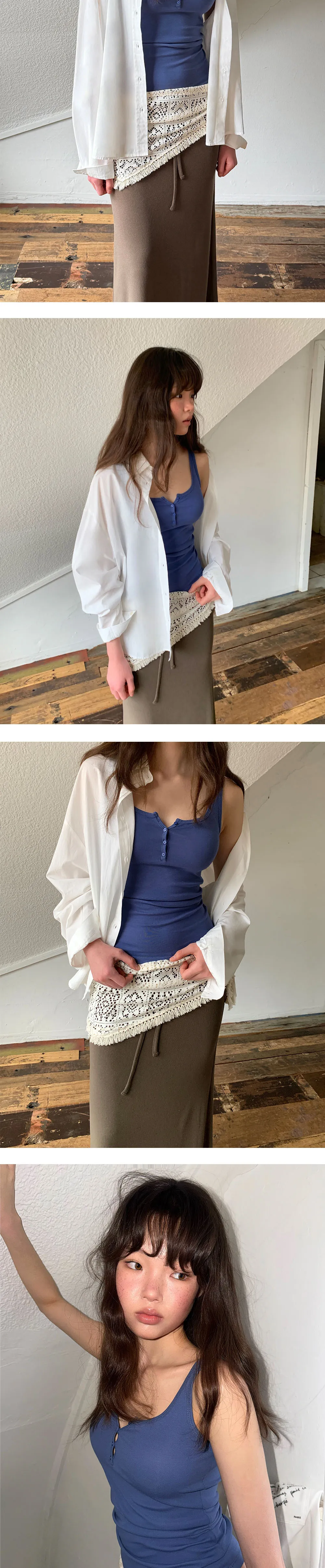 着用 : ホワイト / FREE_롱,ブルー / FREE_롱,グレー / FREE_롱