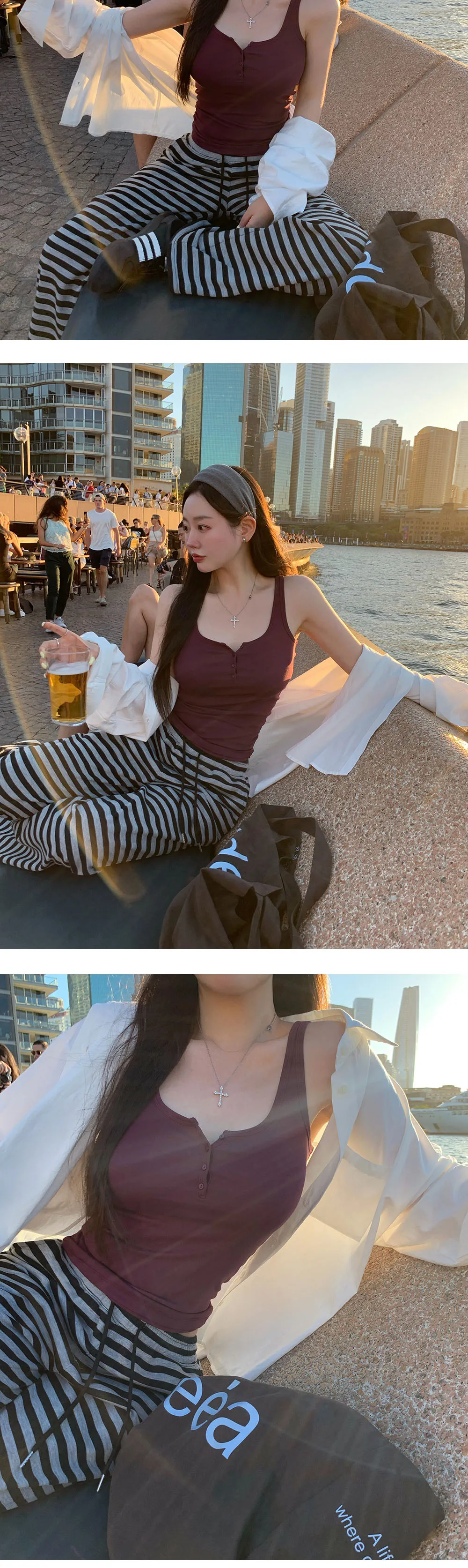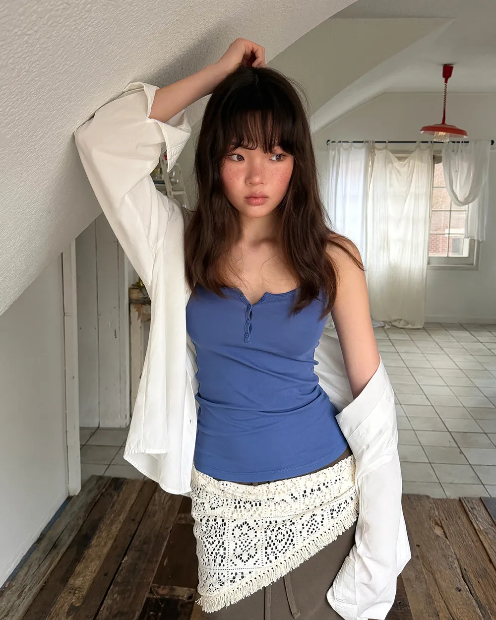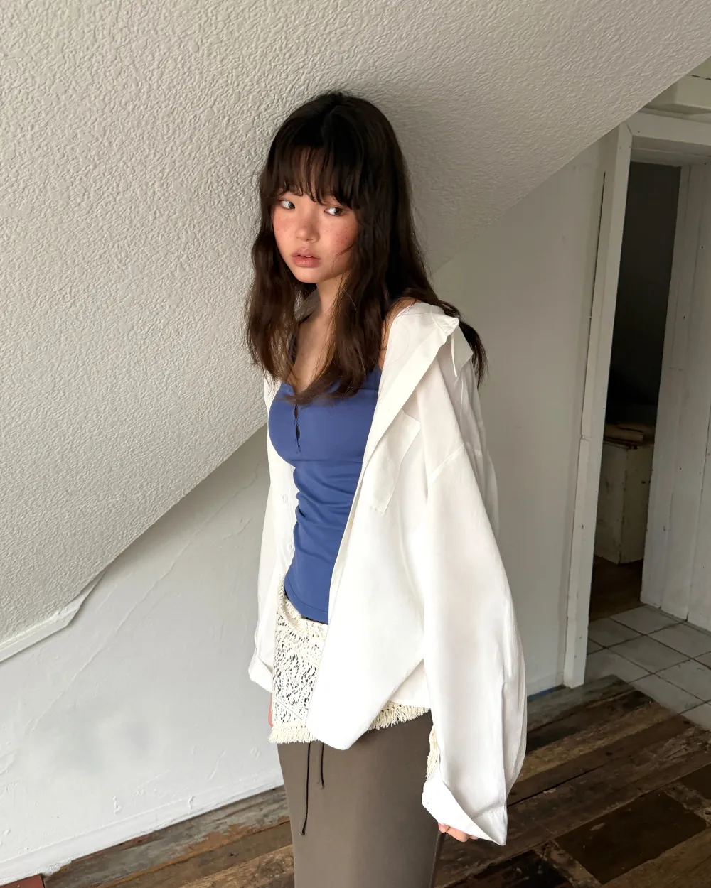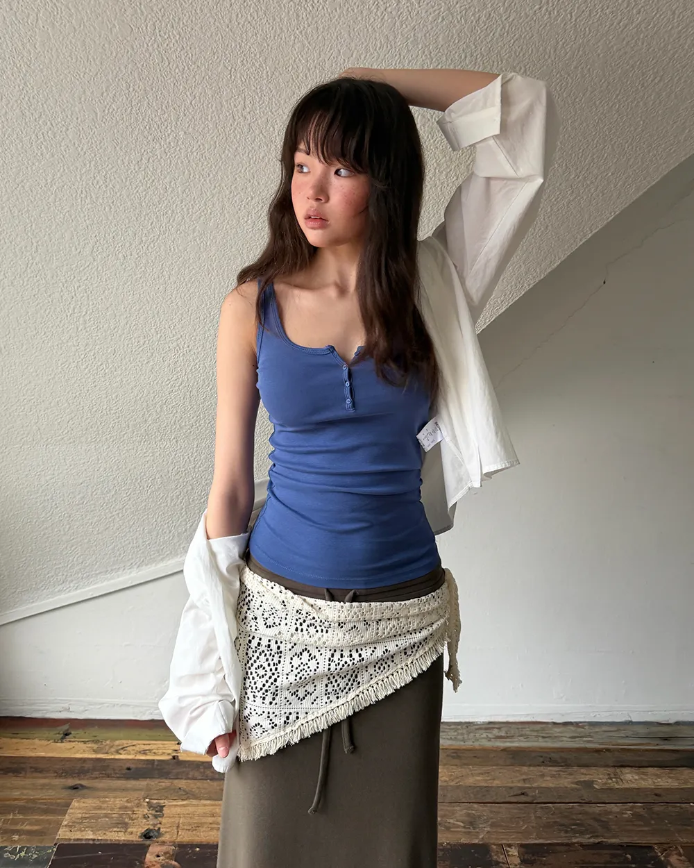 着用 : ホワイト / FREE_롱,ブルー / FREE_롱,グレー / FREE_롱