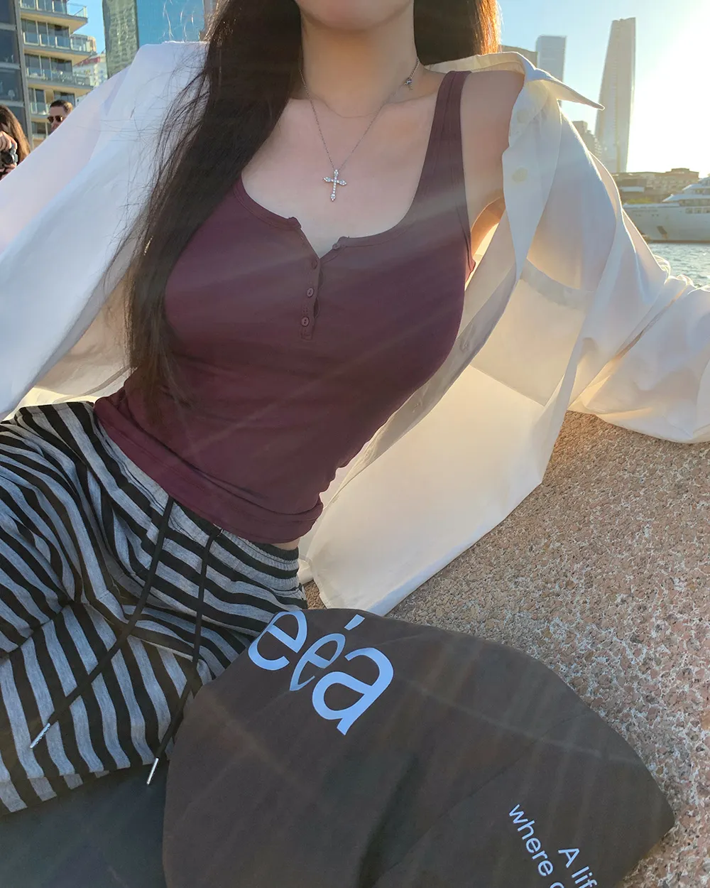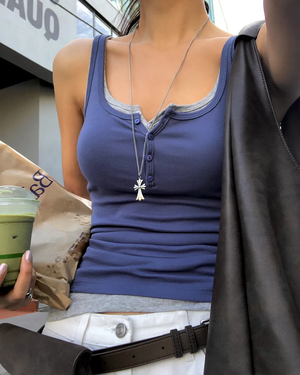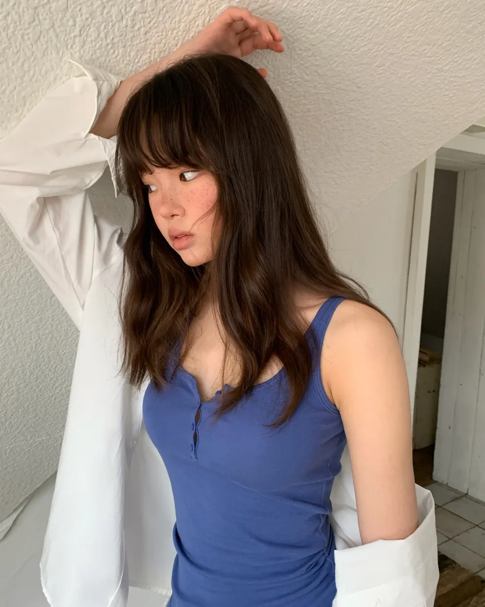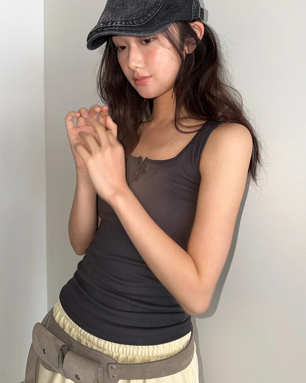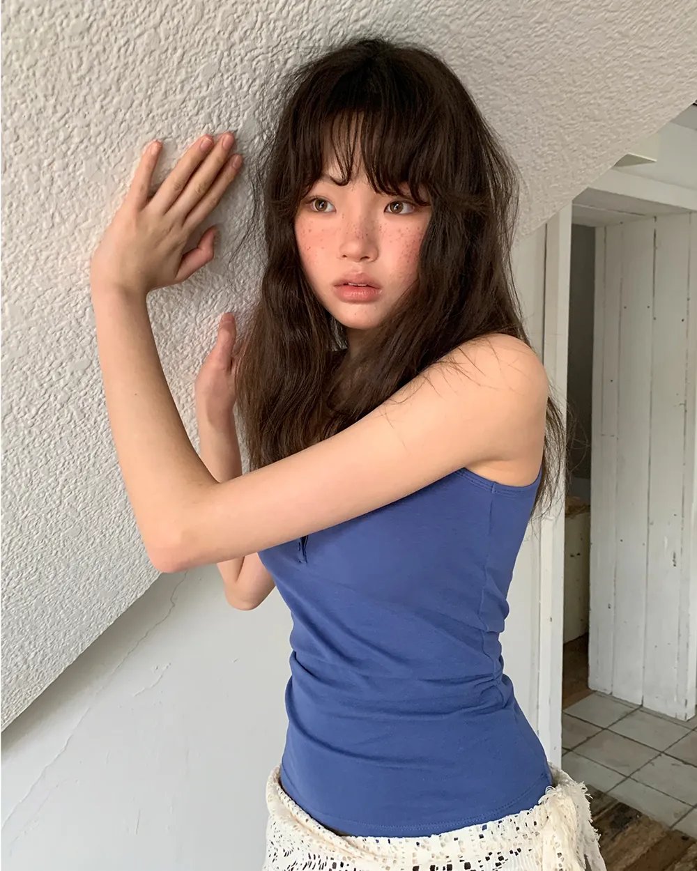 着用 : ホワイト / FREE_롱,ブルー / FREE_롱,グレー / FREE_롱